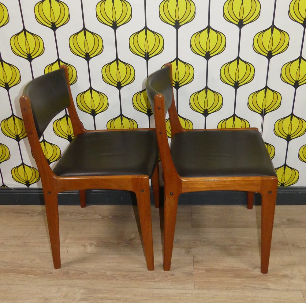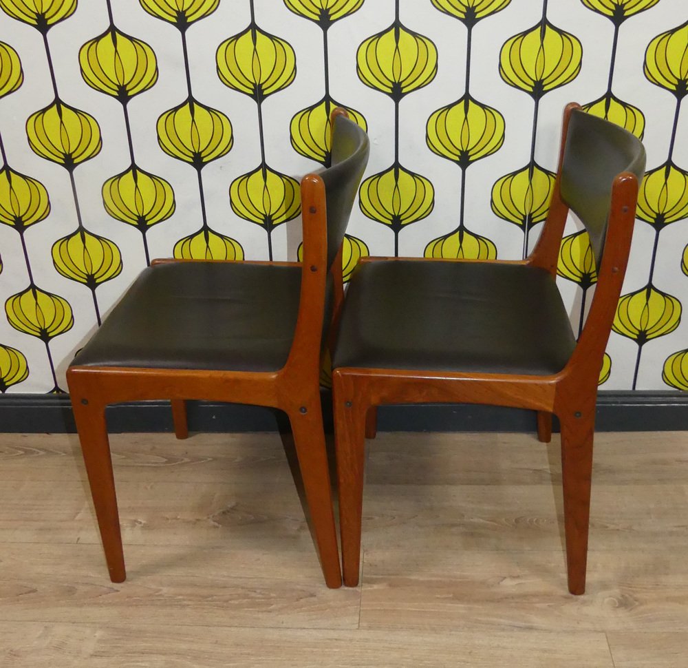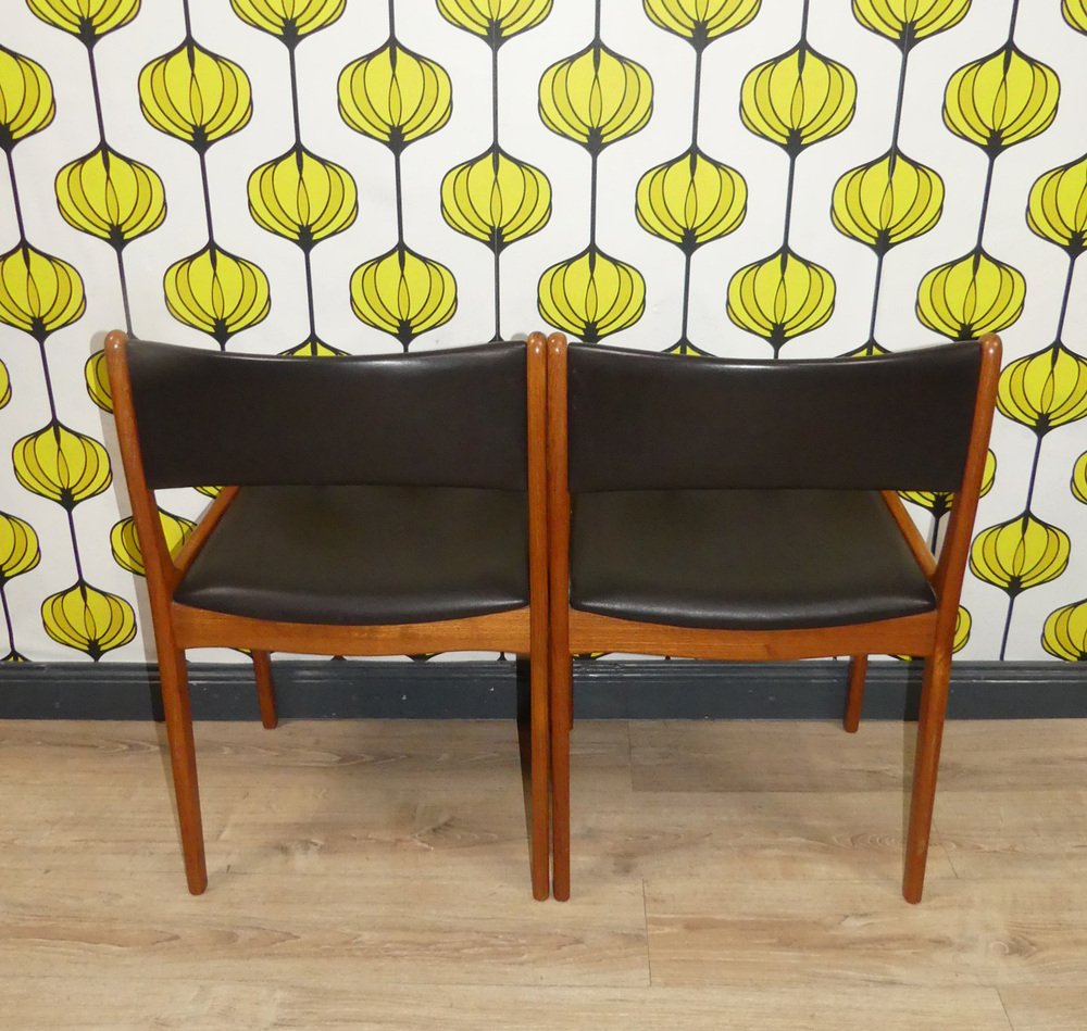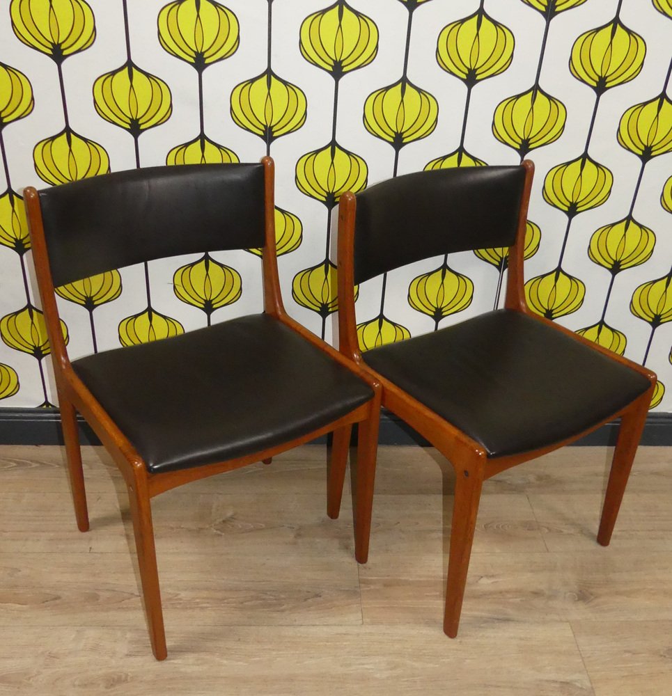 Sillas vintage de teca de cuero negro. Juego de 4