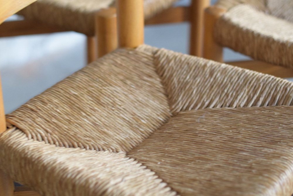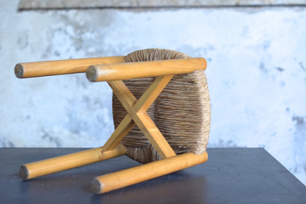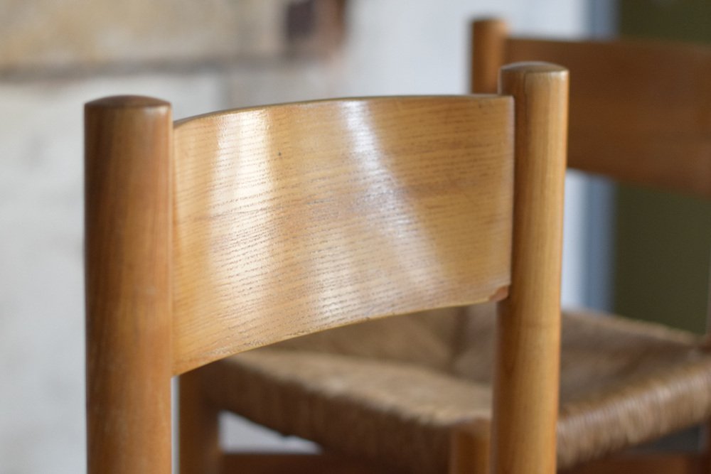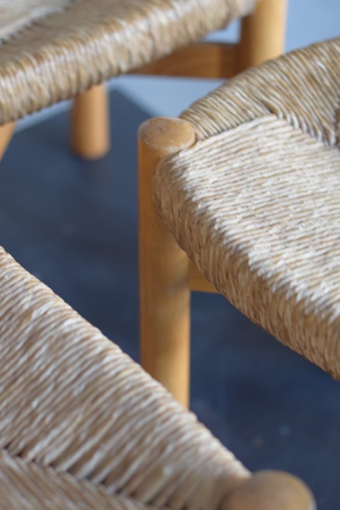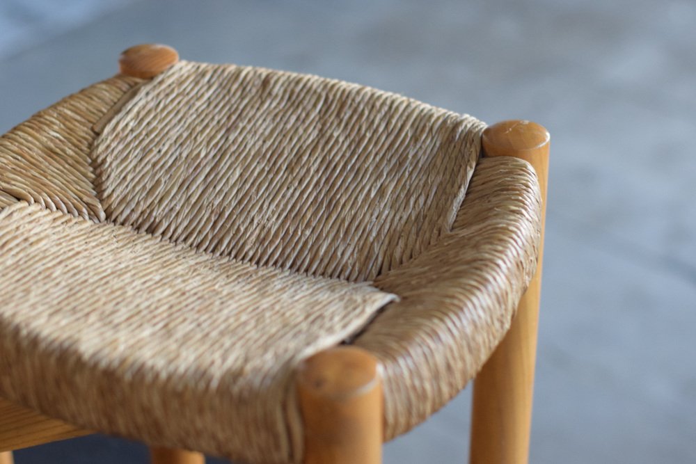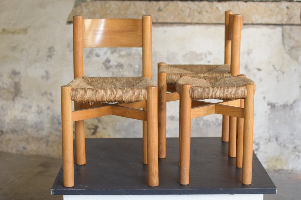 Sillas y taburete Meribel de Charlotte Perriand, años 60. Juego de 3