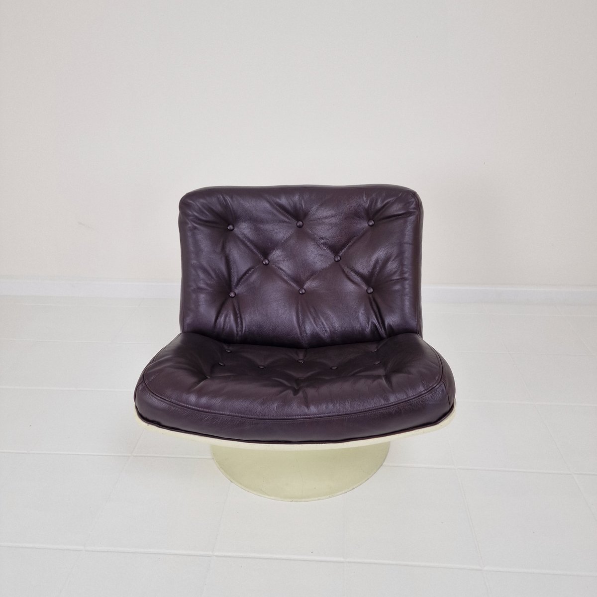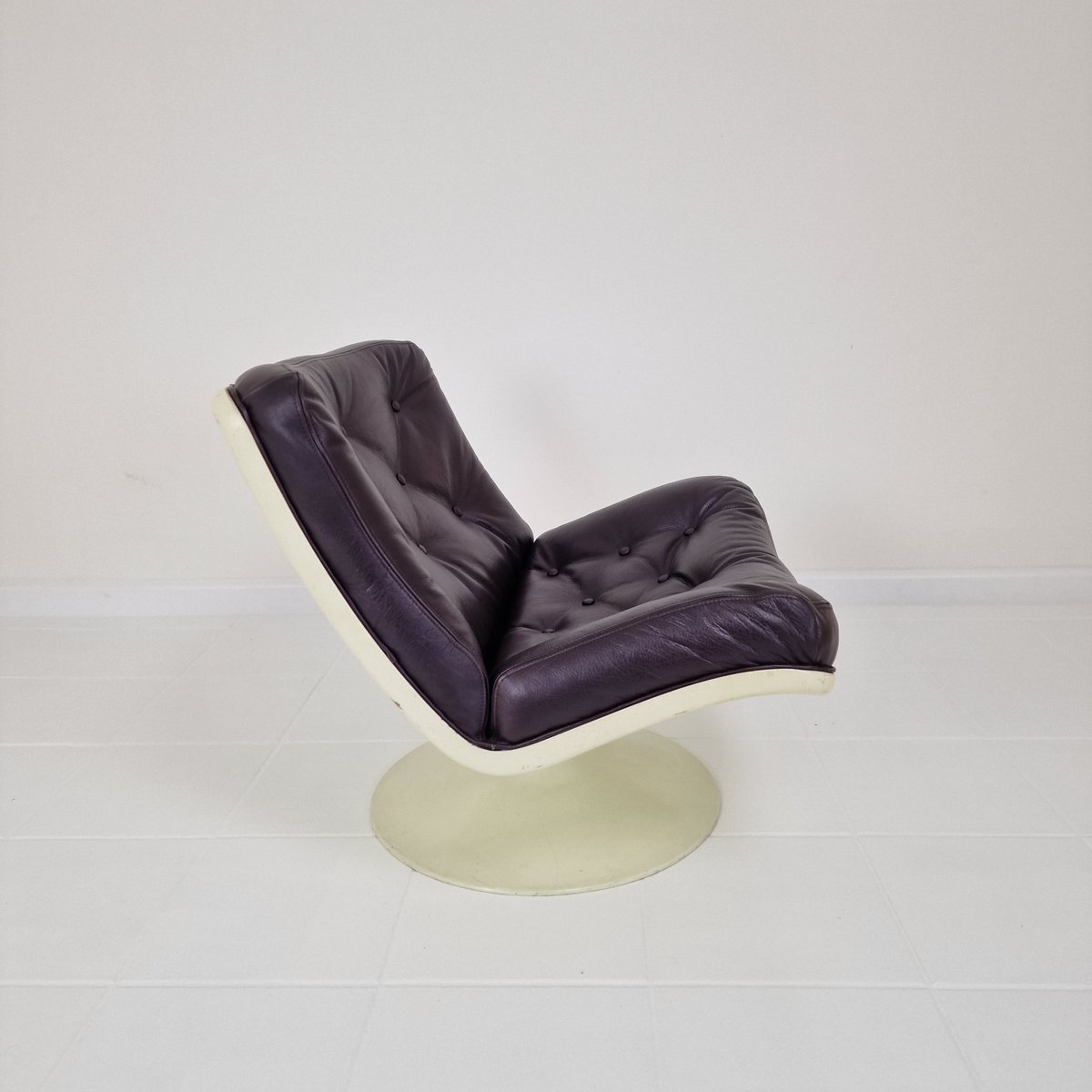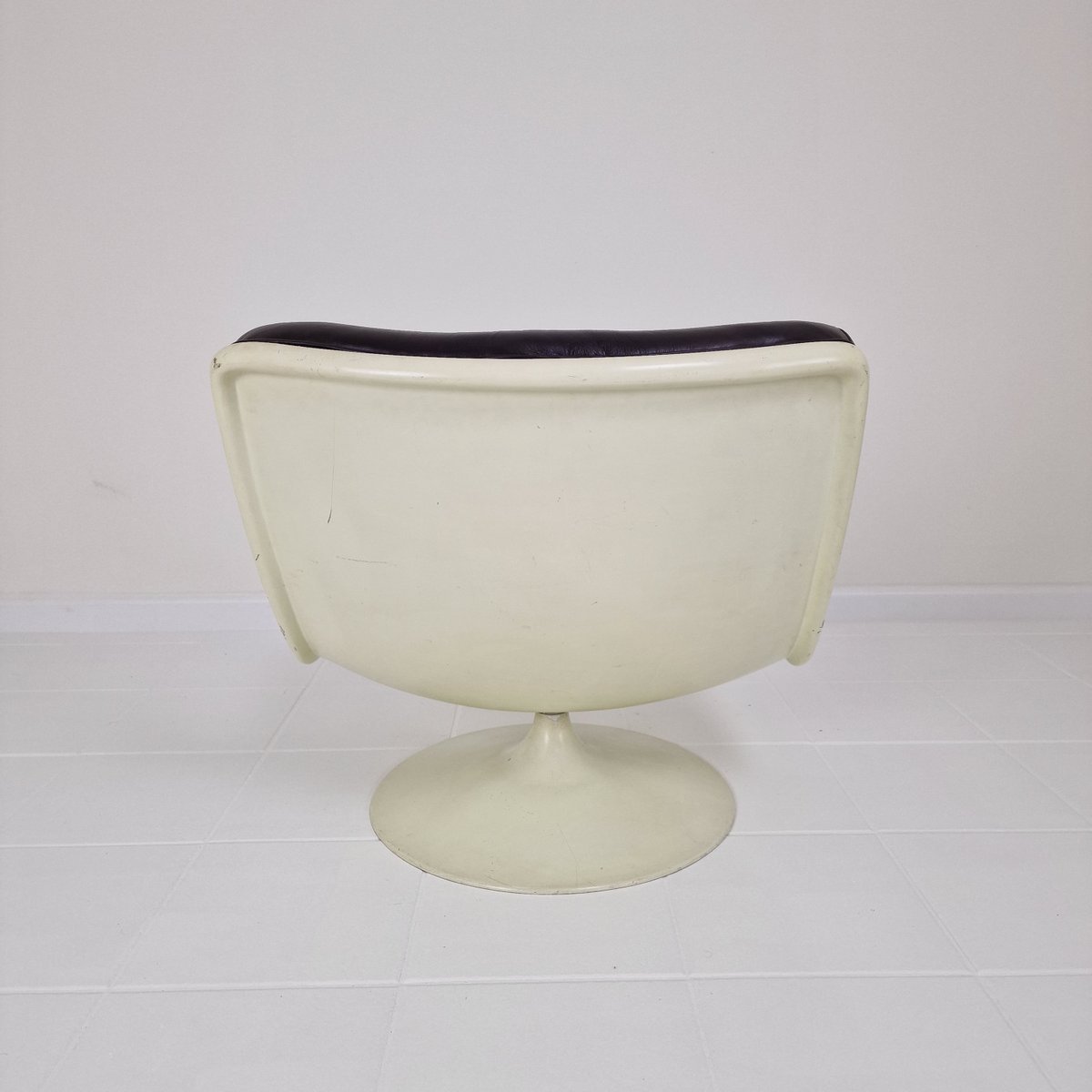 In 1962 he moved back to England and established his own practice based in Oxfordshire. There, he began designing various seating programs for the Dutch manufacturing brand Artifort. Harcourt played a significant role in Artifort’s successful transition into the contract furniture market. Their collaboration set a precedent for alliances between British designers and foreign companies. The futuristic, boldly-colored seating created from this fruitful partnership became Harcourt’s most well-known work. High demand for Space Age design in the 1960s and 1970s meant Harcourt’s designs for Artifort were met with international success, with many models still in production today. Important designs for Artifort include, 042 Series (1963)—which became Harcourt’s first big success; 500 Series (1967)—including the F 510, F 511, F 584, F 585, and F 587 chairs; F 141 Chair (1967); F 978 Chair (1968); 975 IntermediateChair (1968); Cleopatra Chaise Lounge (1970); and the Chicago Chair and Michigan Chair (both 1971), among many others.