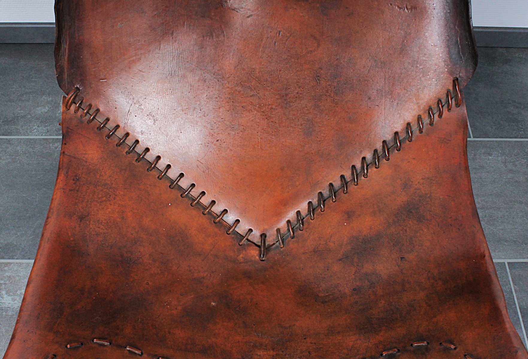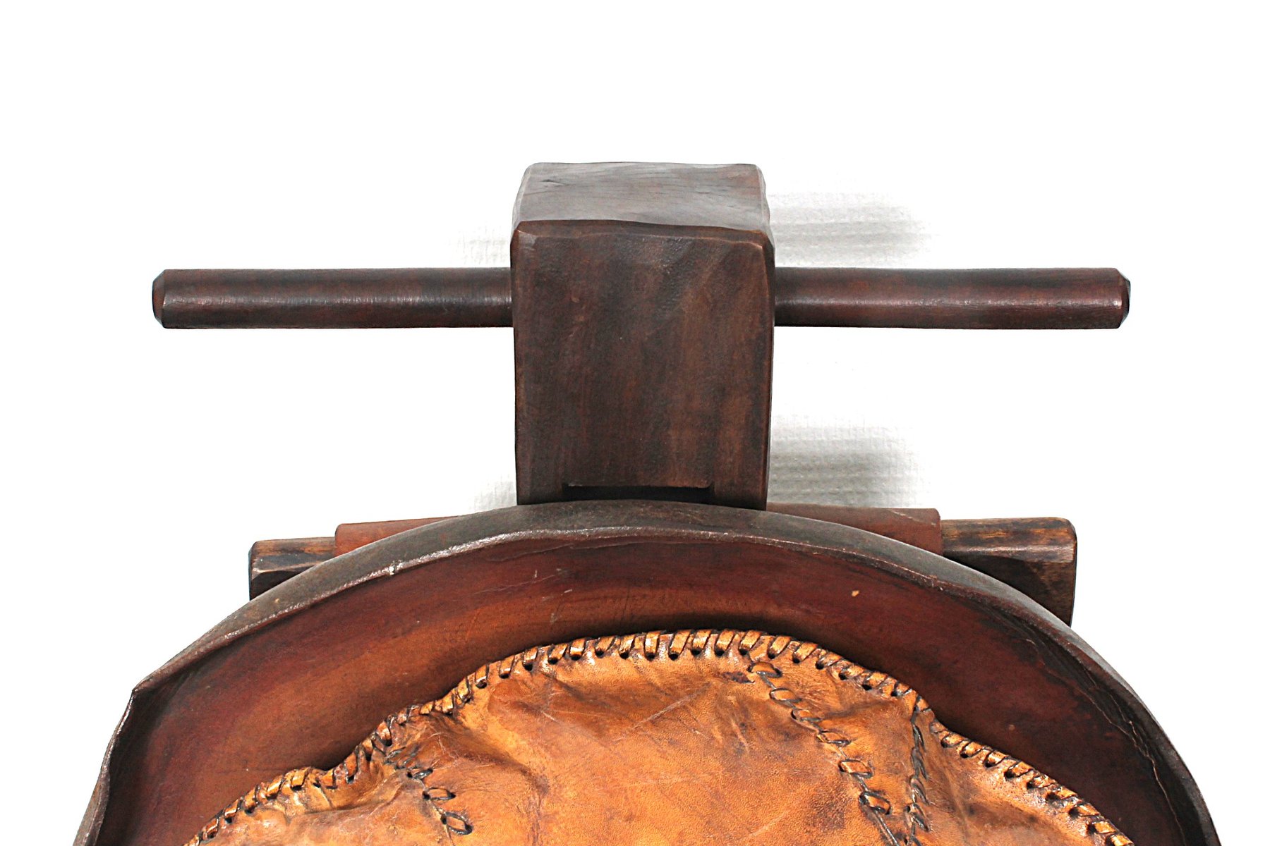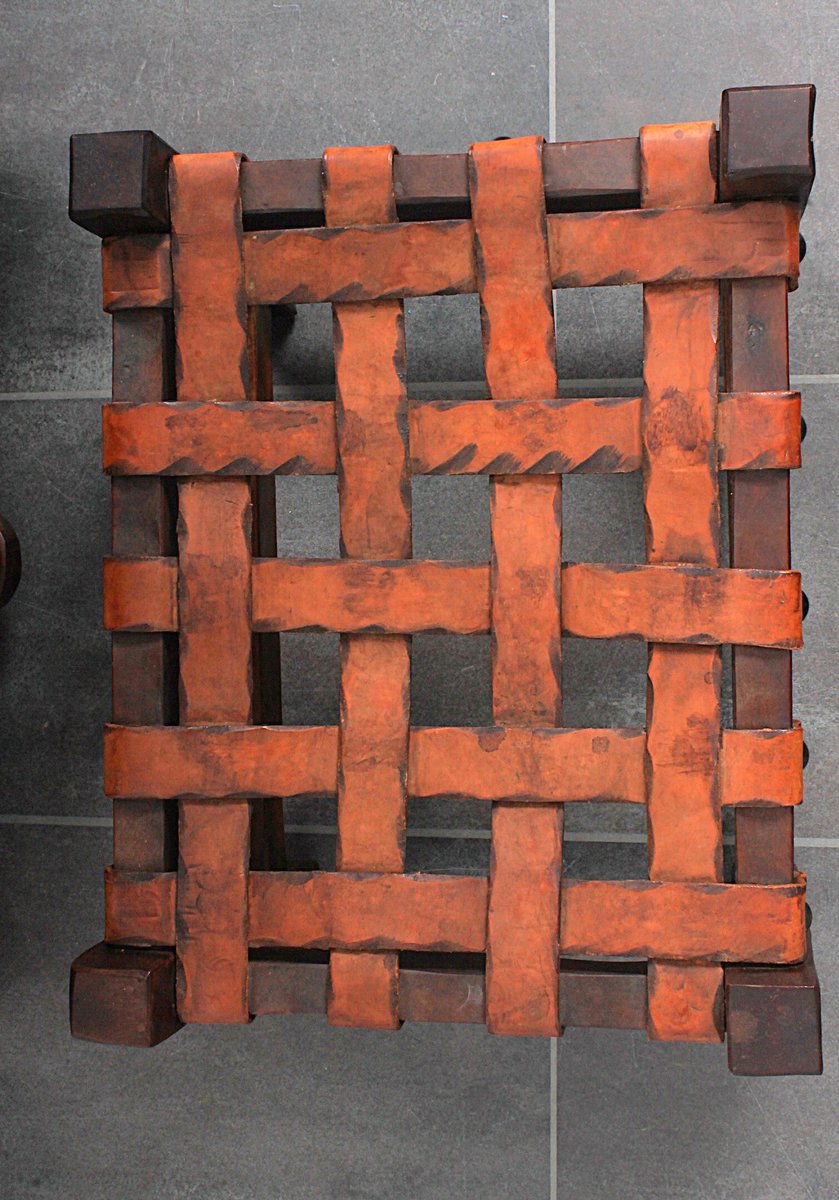 Sillón brutalista de roble y otomana, años 70. Juego de 2