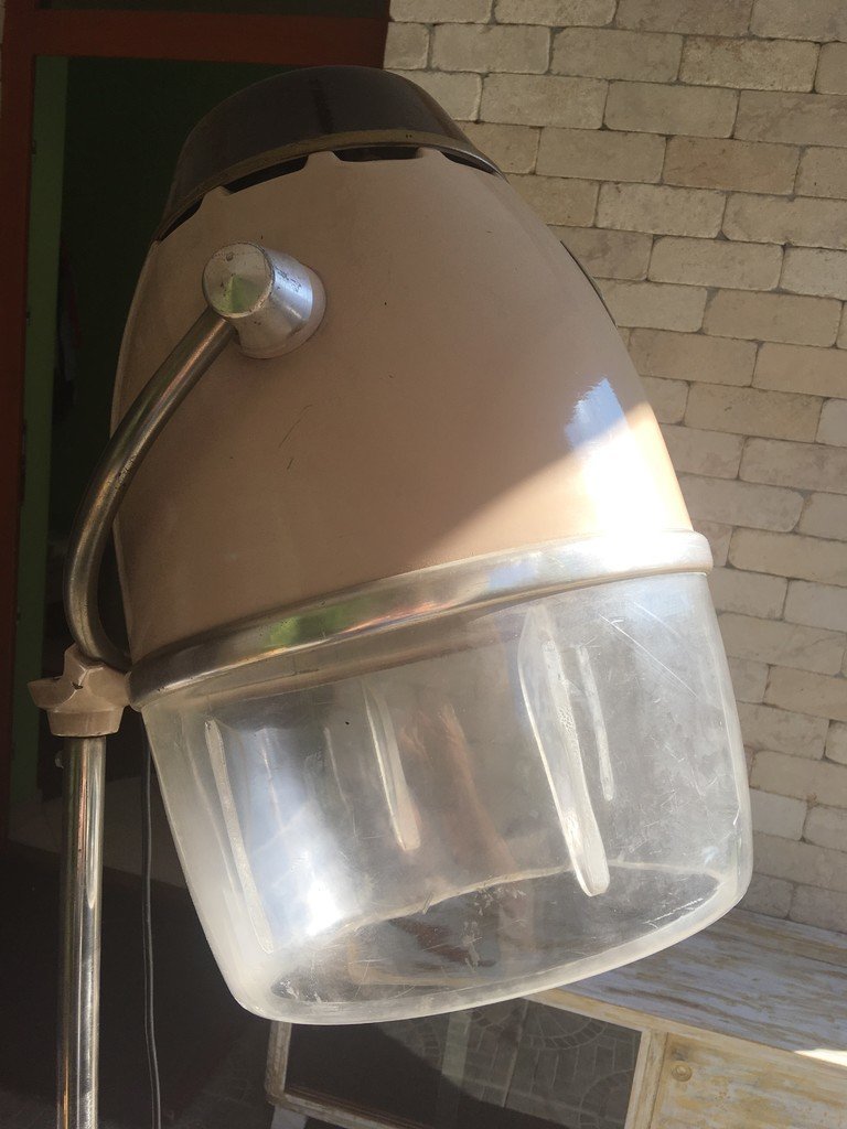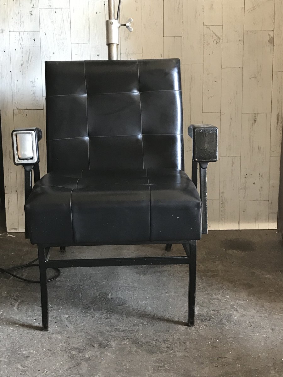 Sillón giratorio Mid-Century de cuero y metal, años 60