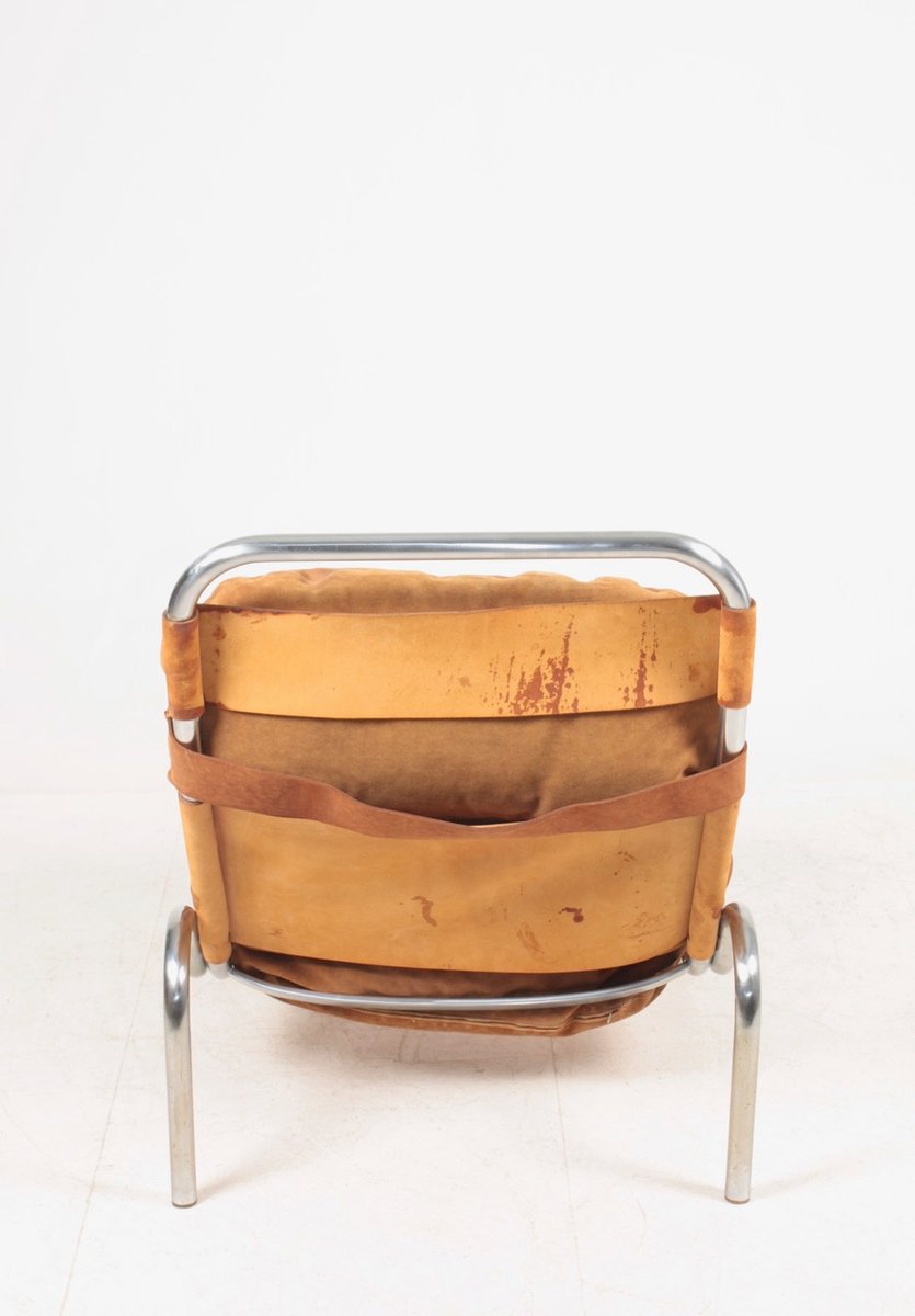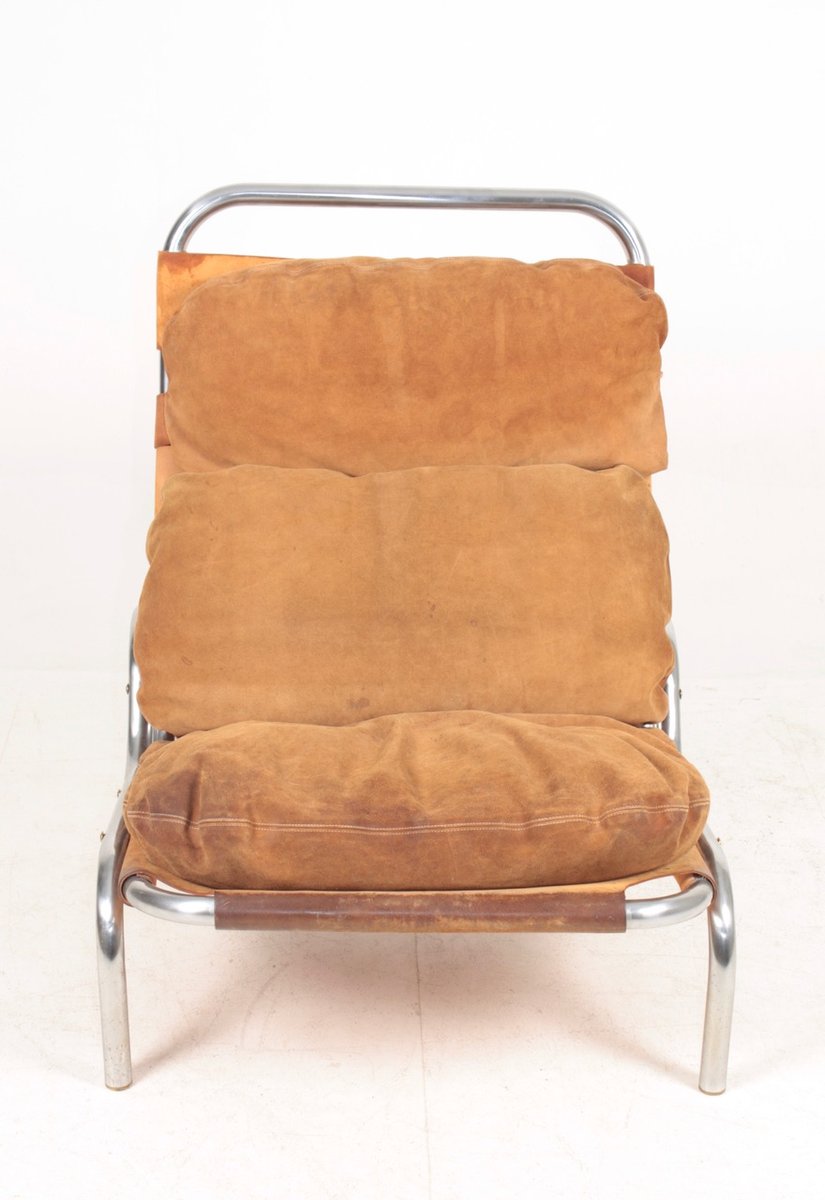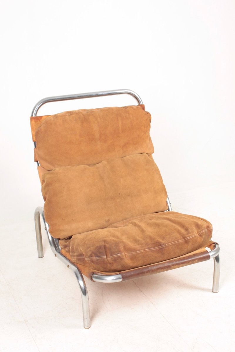 Sillón Mid-Century de gamuza patinada y acero de Erik Jørgensen, años 60