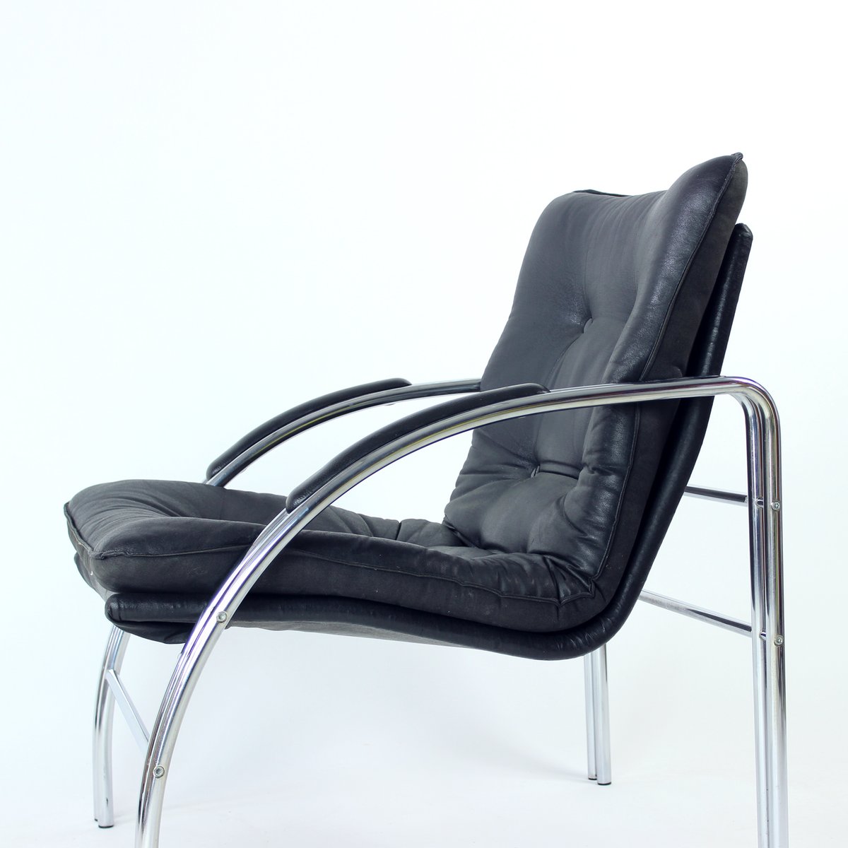 Sillón Mid-Century moderno de cromo de Viliam Chlebo para Kodreta, años 80
