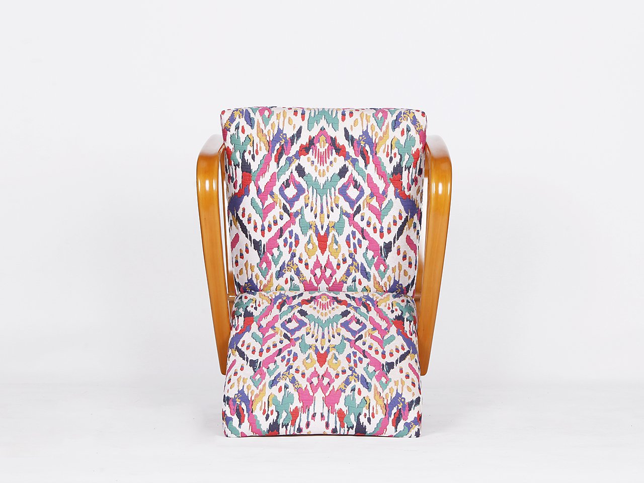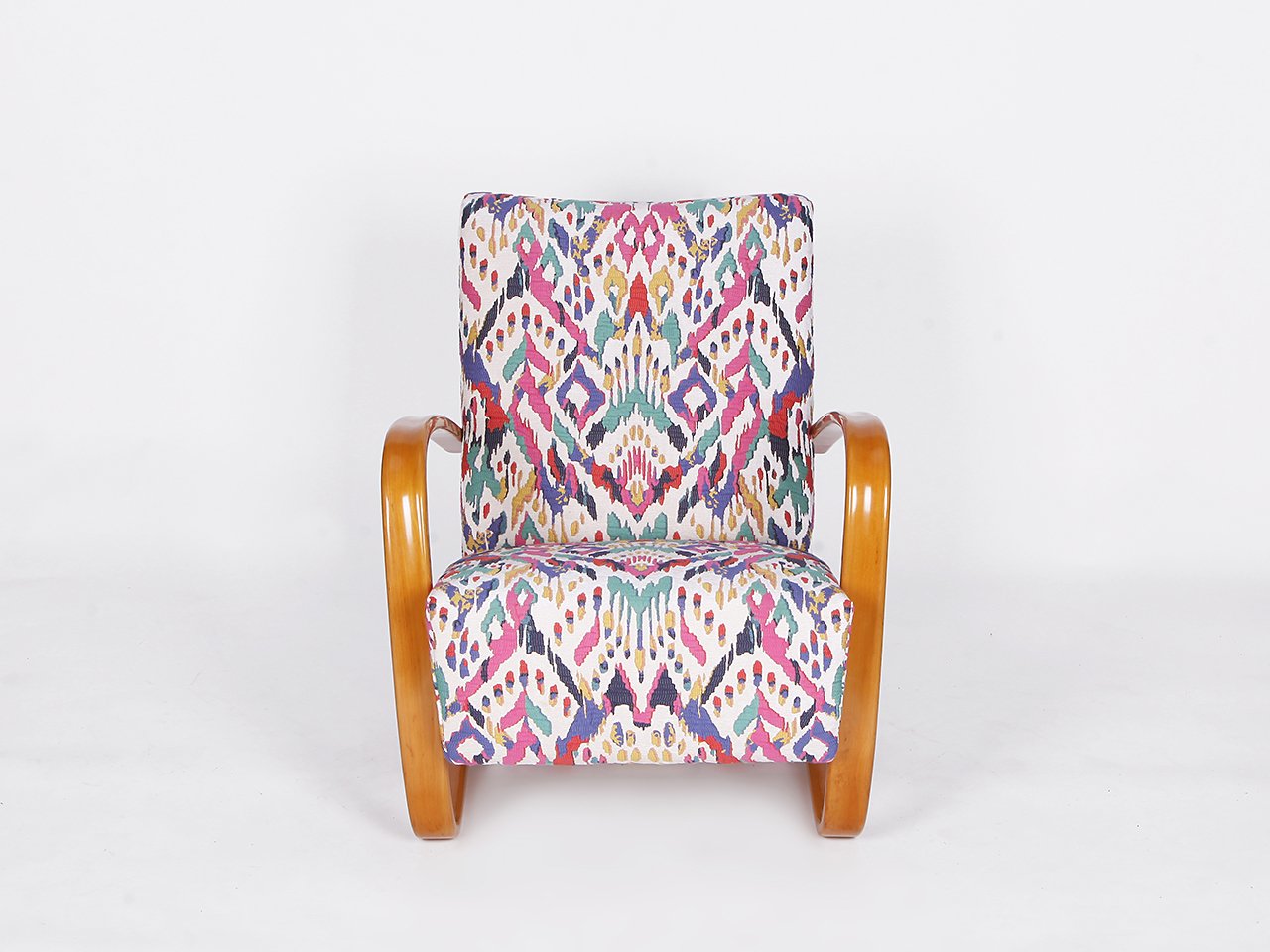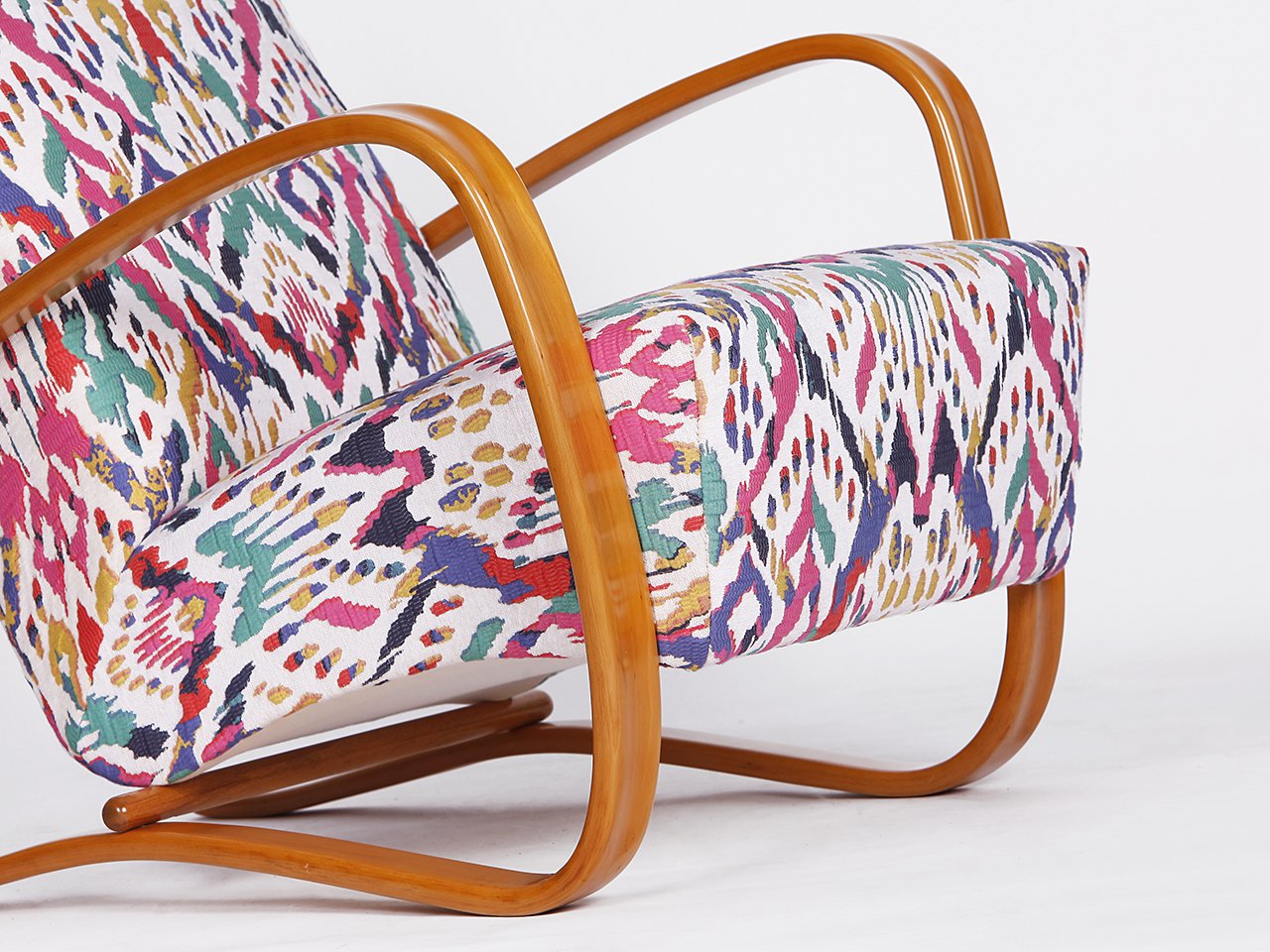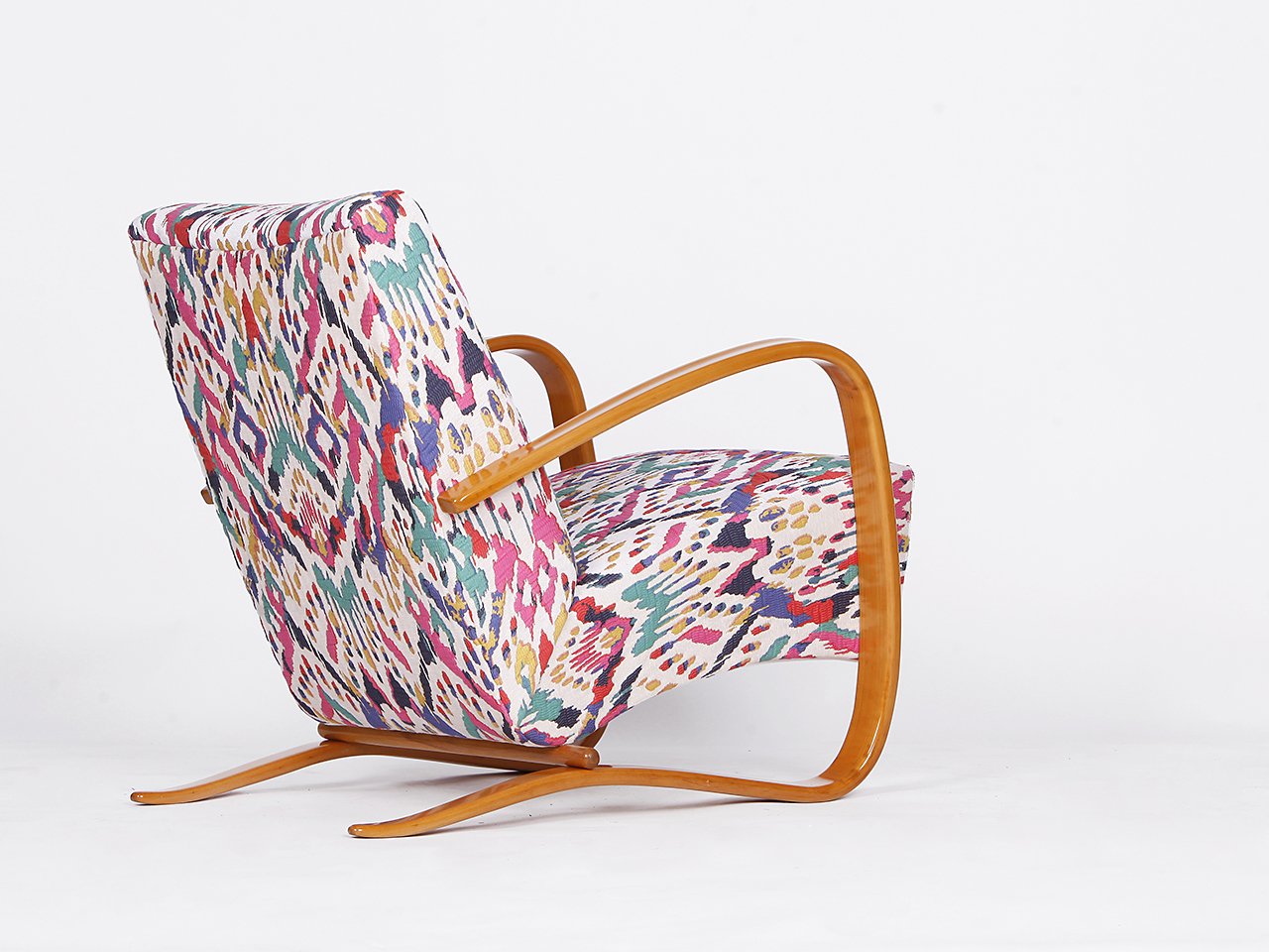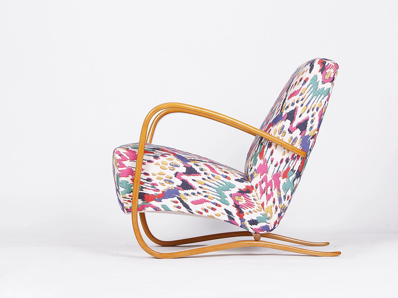 Other Halabala designs include the H-269 Lounge Chair (early 1930s)—arguably the most well-known Czech design, instantly recognizable for its exaggerated, curved armrests; the spider-like H-370 Coffee Table (1930s); and the adjustable H-70 Lounge Chair (1930s), to name a few. Like his Scandinavian contemporaries Alvar Aalto (1898-1976) and Bruno Mathsson (1907-1988), Halabala utilized bentwood in most of his chair designs.