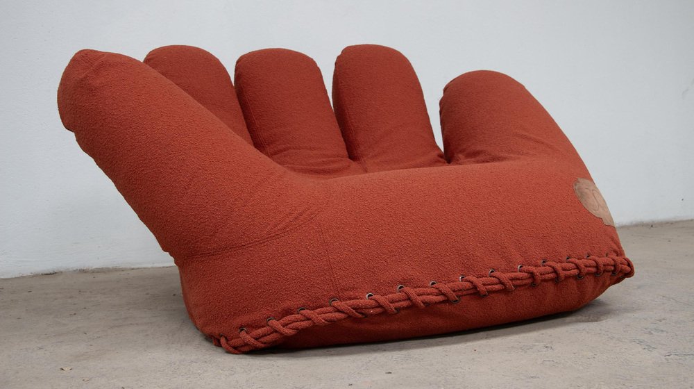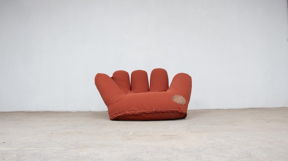 Taking inspiration from pop culture and leisure-time activities the group focused on radical seating objects. They took the views of a changing society in which furniture was no longer desired or required to last a lifetime and introduced a collection of furniture that represented precisely the opposite. The transparent armchair Blow (1967) was constructed from PVC film, and was the first piece of inflatable living room furniture to be mass-produced, as well commercially successful. Blow was manufactured by Zanotta, bringing the Italian manufacturer international recognition. The Joe Sofa (1968-70) was the second to become a design classic from De Pas, D’Urbino & Lomazzi, this time manufactured by Poltronova. It was a tribute to the American baseball player Joe DiMaggio, forming a sofa in the shape of an oversized baseball glove.