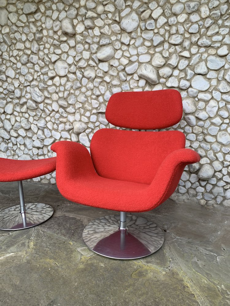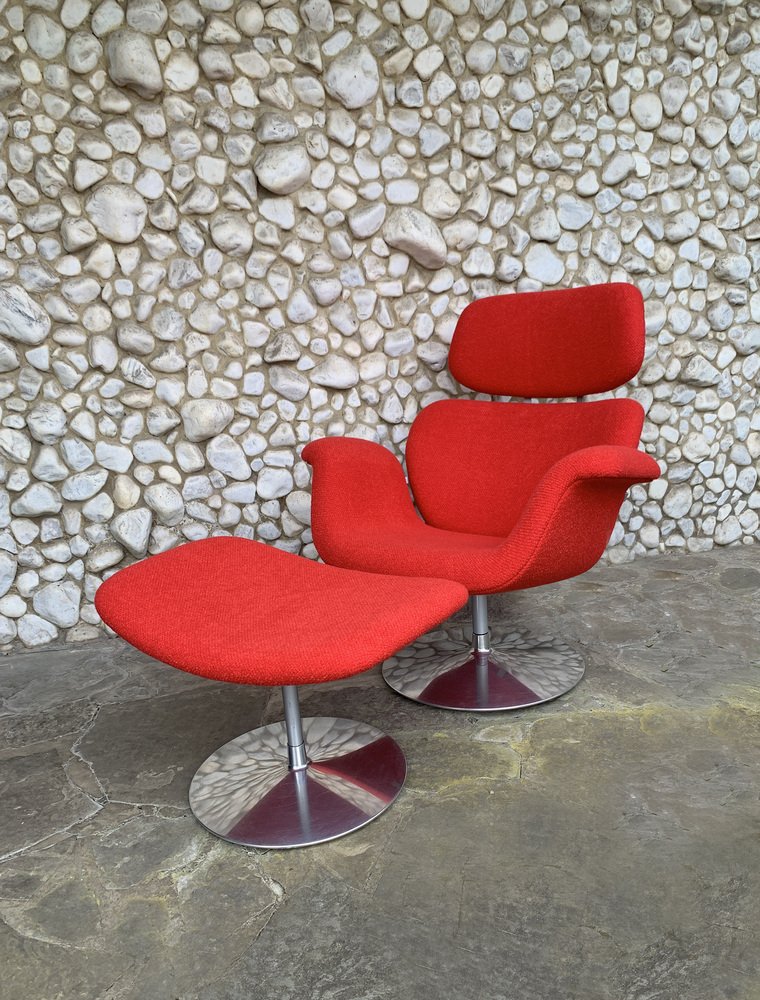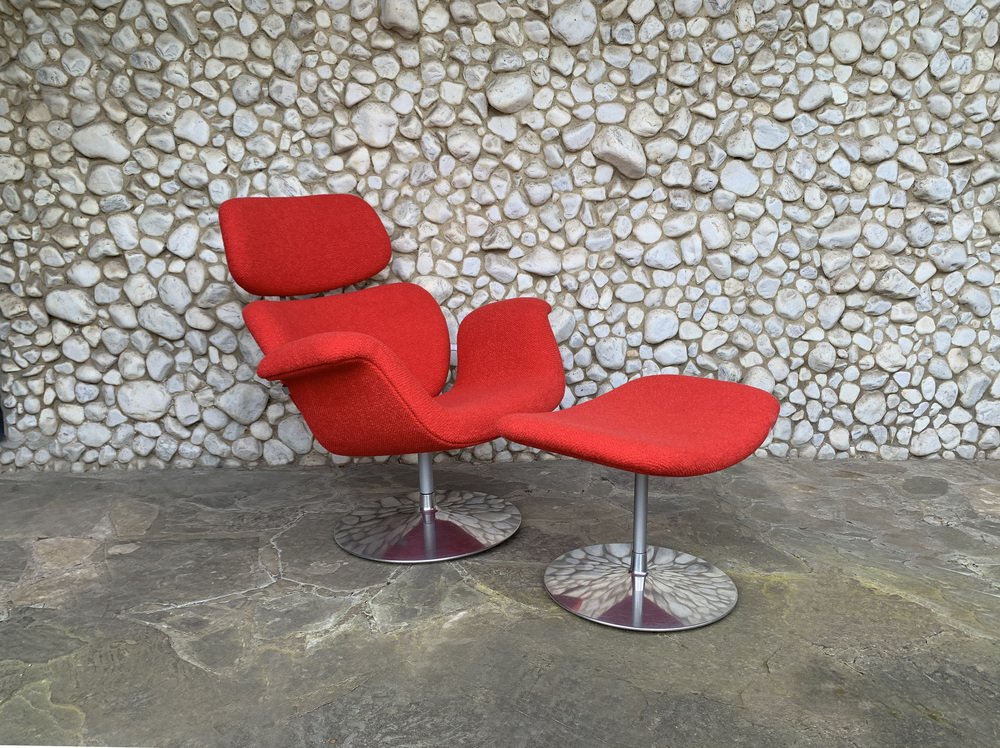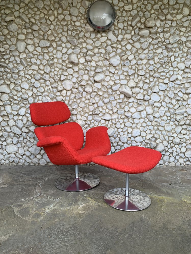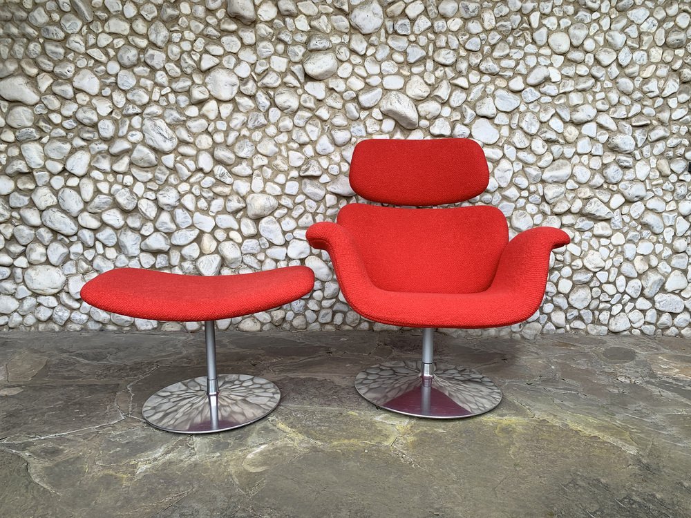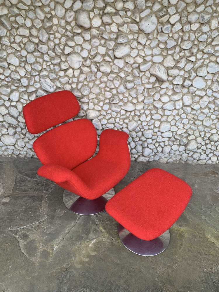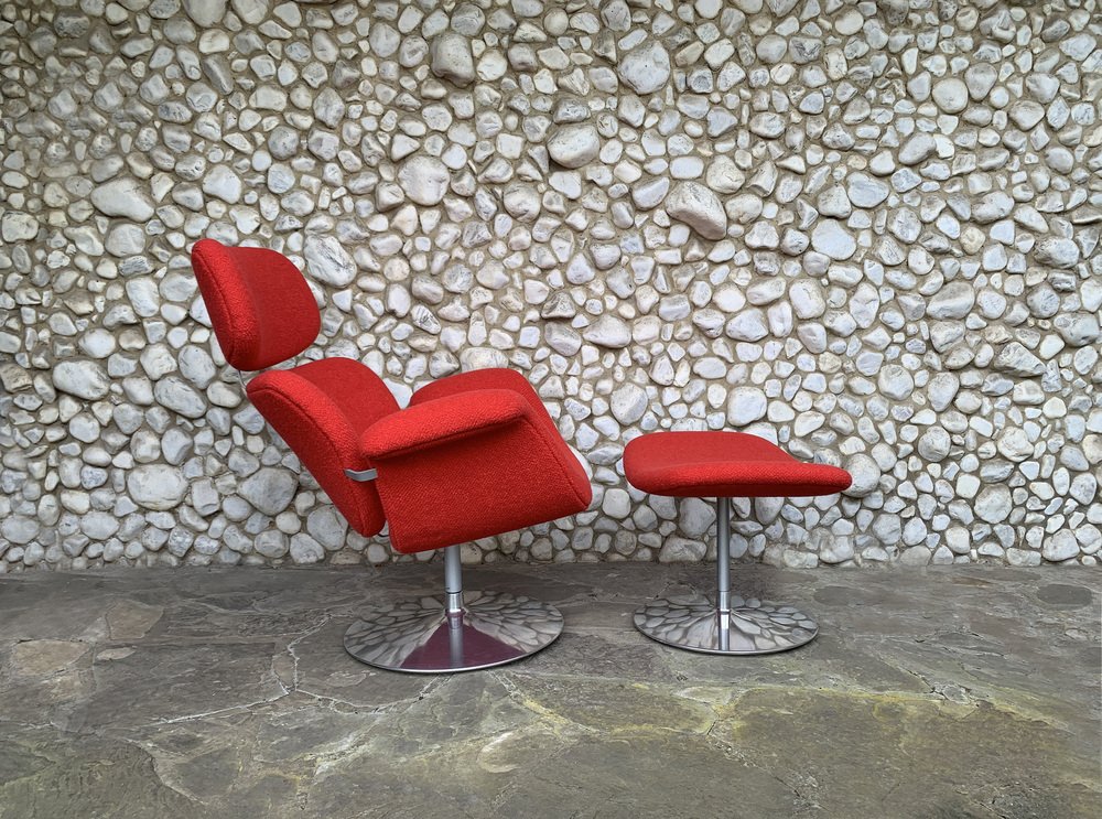 Sillón Tulip grande y otomana de Pierre Paulin para Artifort, años 80. Juego de 2