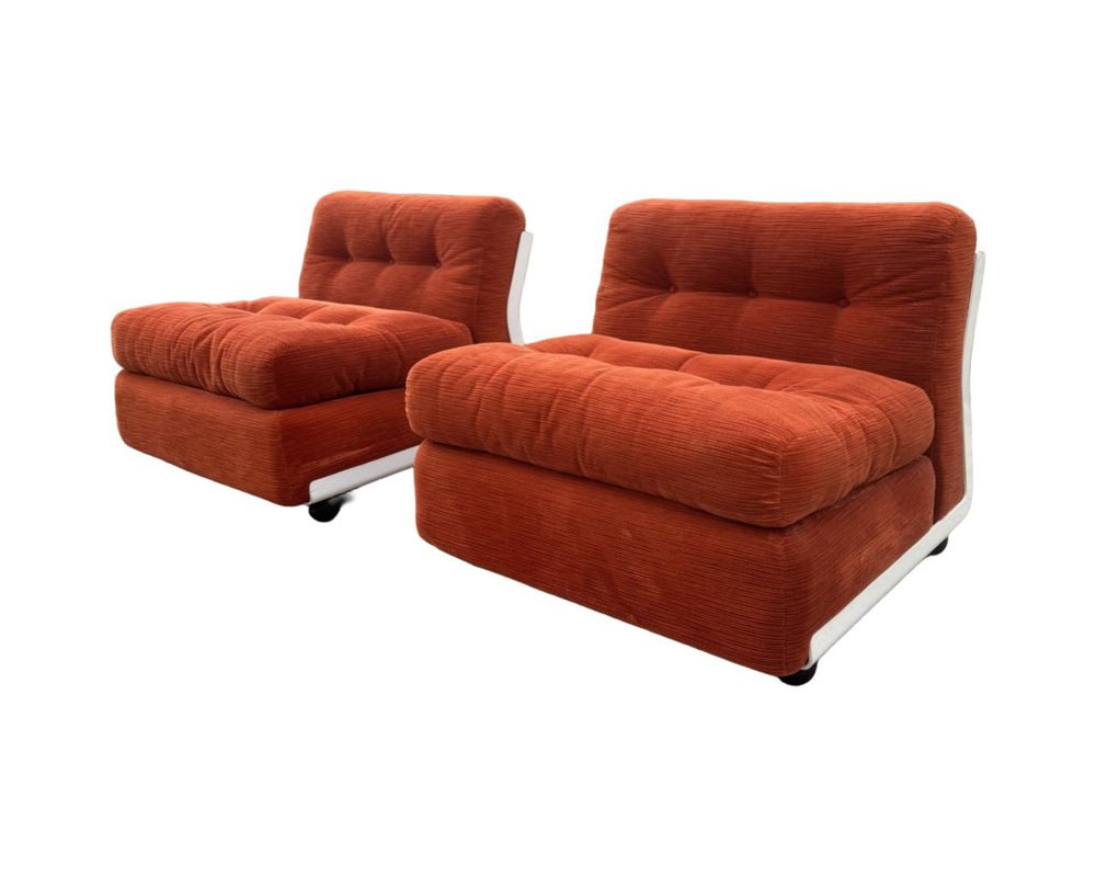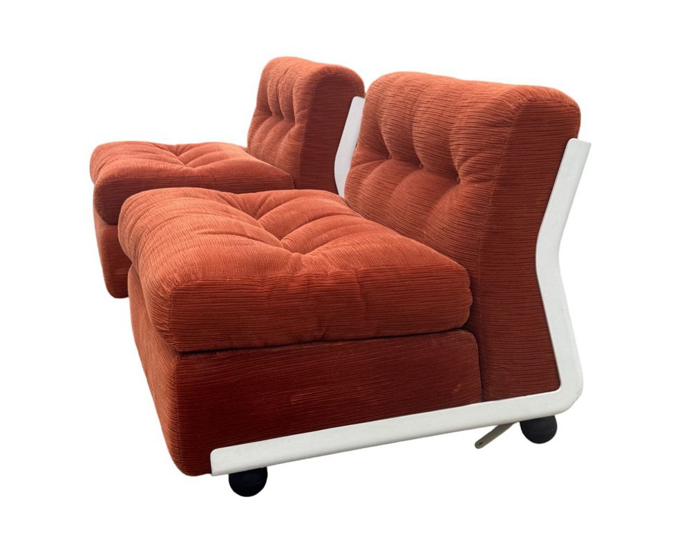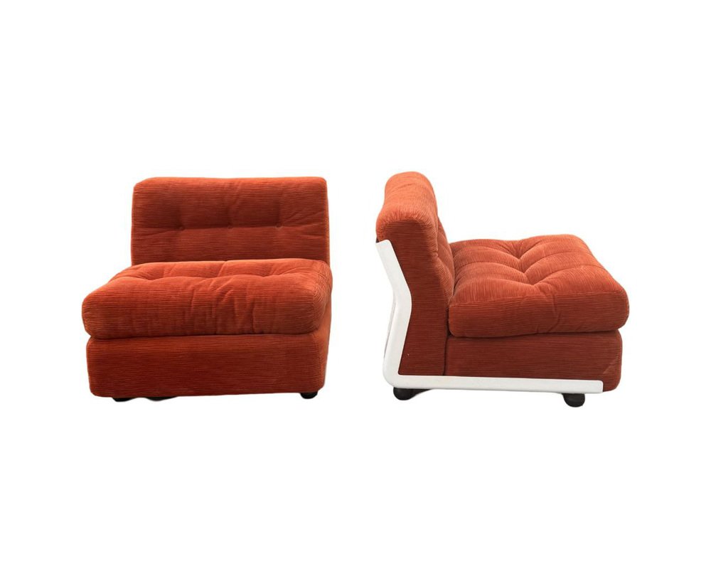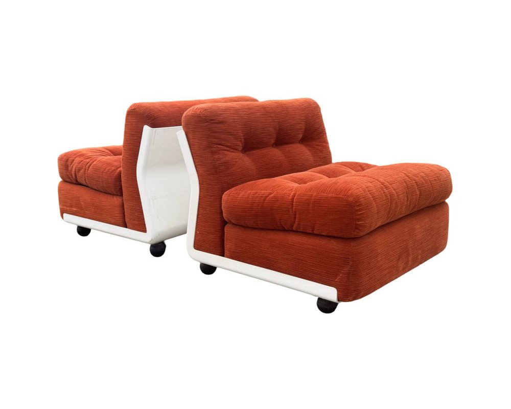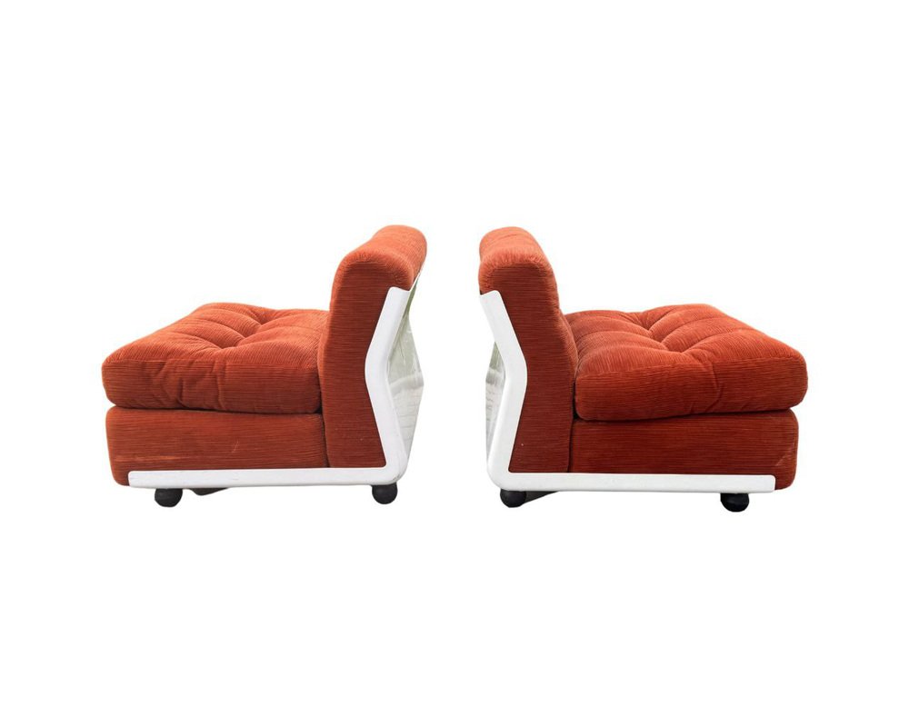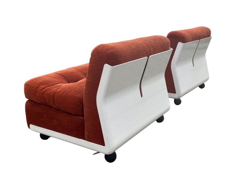 Sillones Amanta de pana oxidada y fibra de vidrio blanca de Mario Bellini para C&B Italia, años 70. Juego de 2
