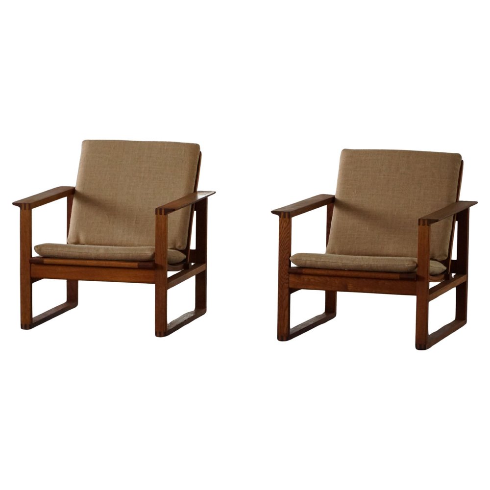 Butacas Mid-Century modernas de haya y tela, Dinamarca, años 60. Juego de 2