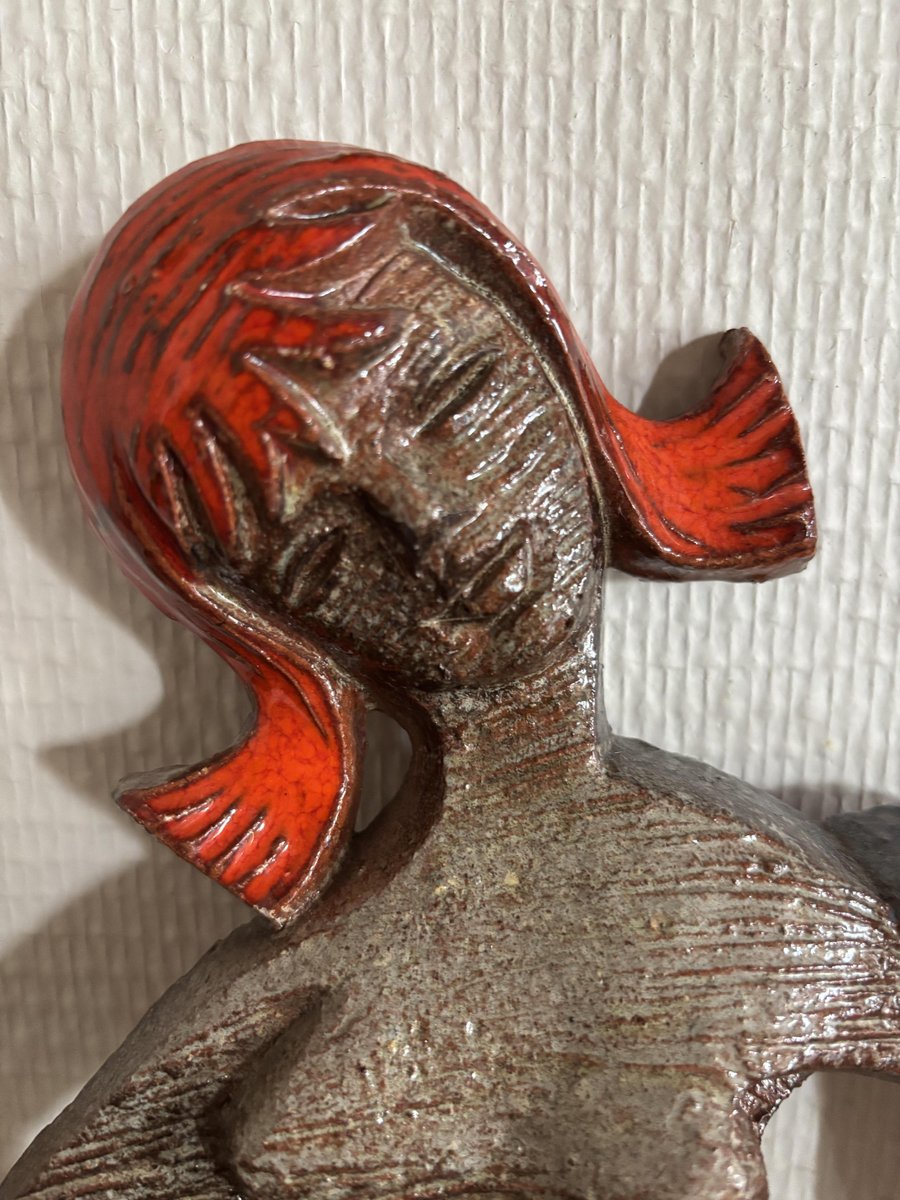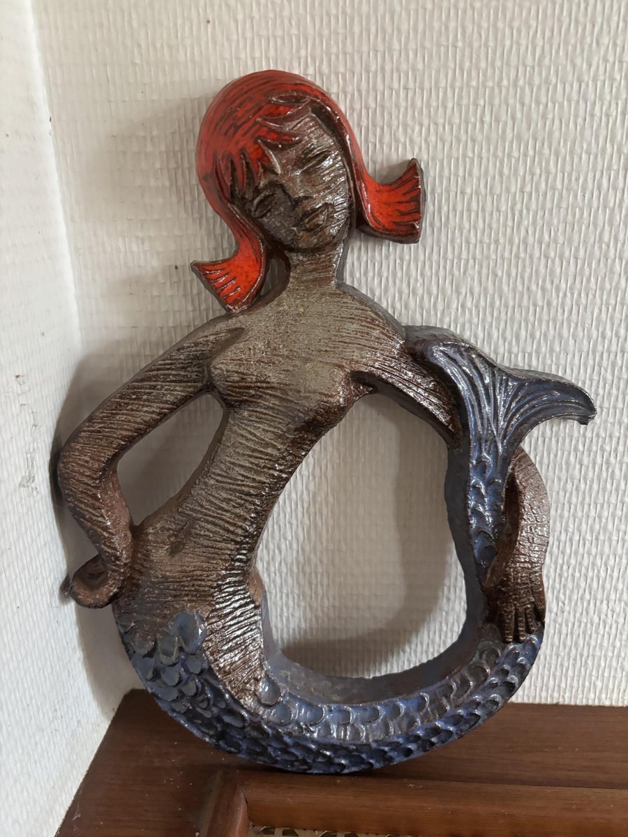 Belgian studio pottery, wall ceramic mermaid, modernist sculpture 1970s, Belgian brutalist ceramics, vintage wall decoration, Belgian studio 1970s, art pottery Belgium, mid-century wall sculpture