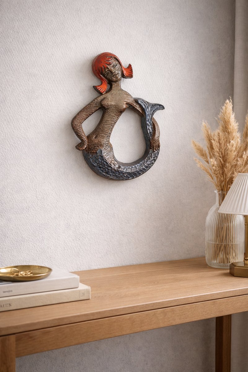 This ceramic wall sculpture of a stylized mermaid is a Belgian workshop piece from the 1960s–1970s. It fully embodies the modernist and expressive aesthetic of post-war Belgian design, a blend of decorative art and brutalist influence.