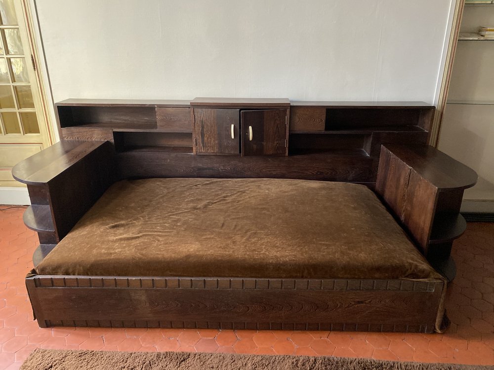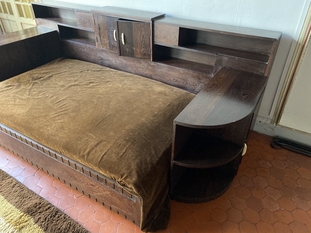 Sofá cama Art Déco de madera de palma, años 30