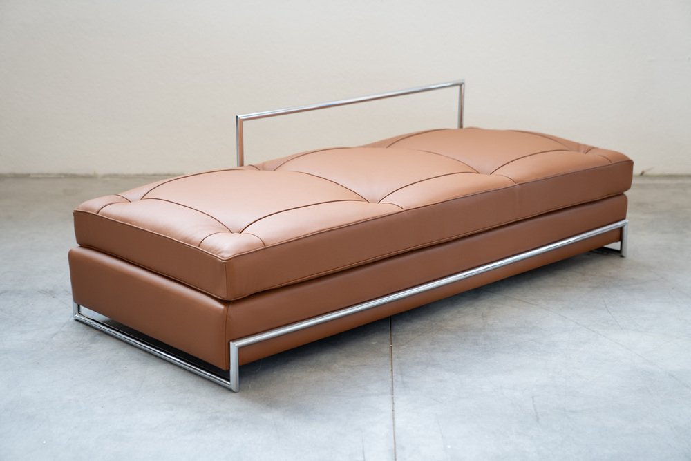 Sofá cama de cuero coñac de Eileen Gra para Vereinigte Werkstätten Collection, años 80