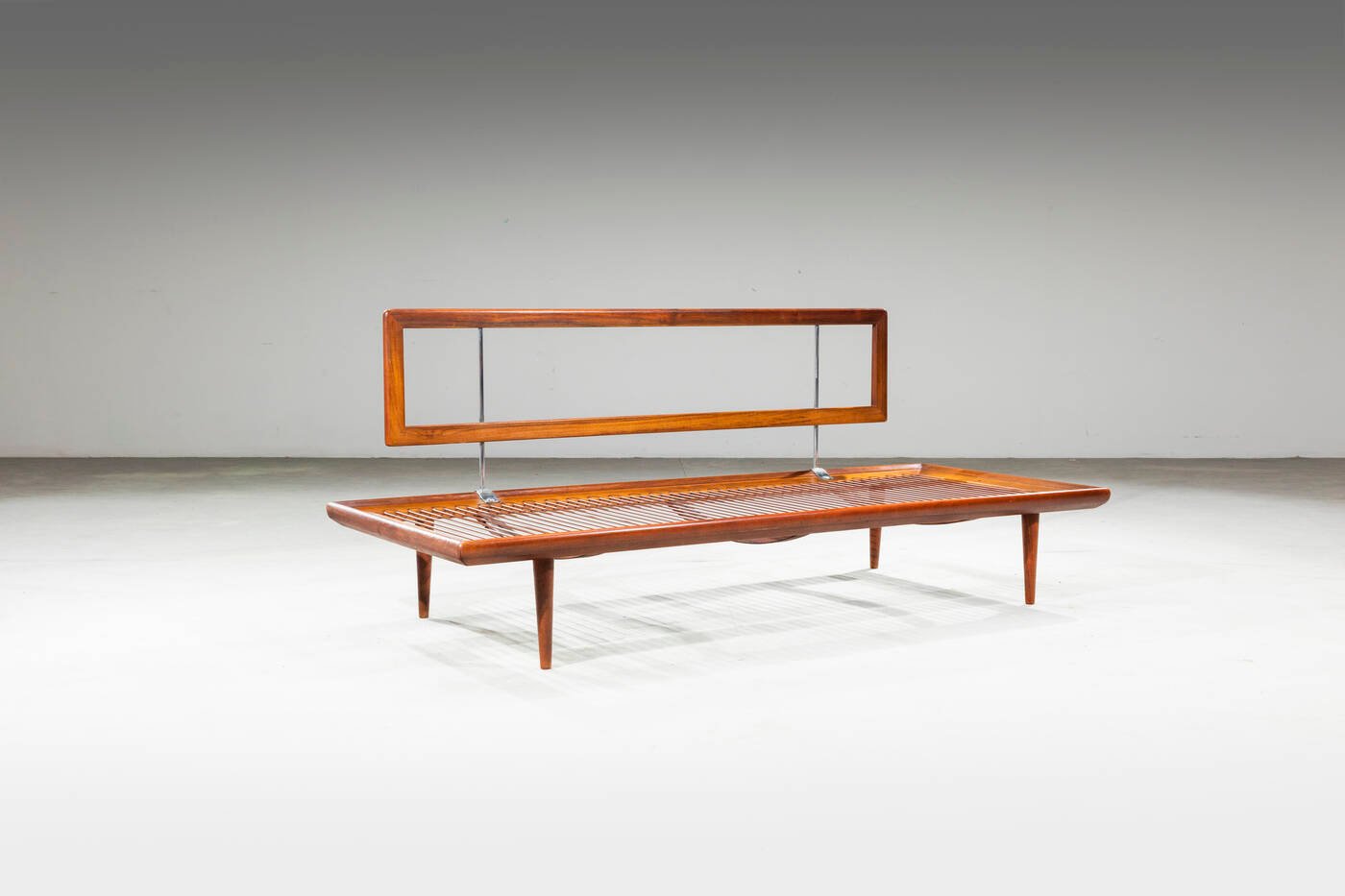 Mattresses may have been the company's first focus, but by 1952 France & Daverkosen had built a large furniture factory in Hillerød, just outside of Copenhagen, and was fast becoming one of most successful Danish furniture companies dedicated to mass production rather than traditional artisanal methods. Seating that features loose cushions and light, teak frames became France & Daverkosen's signature.