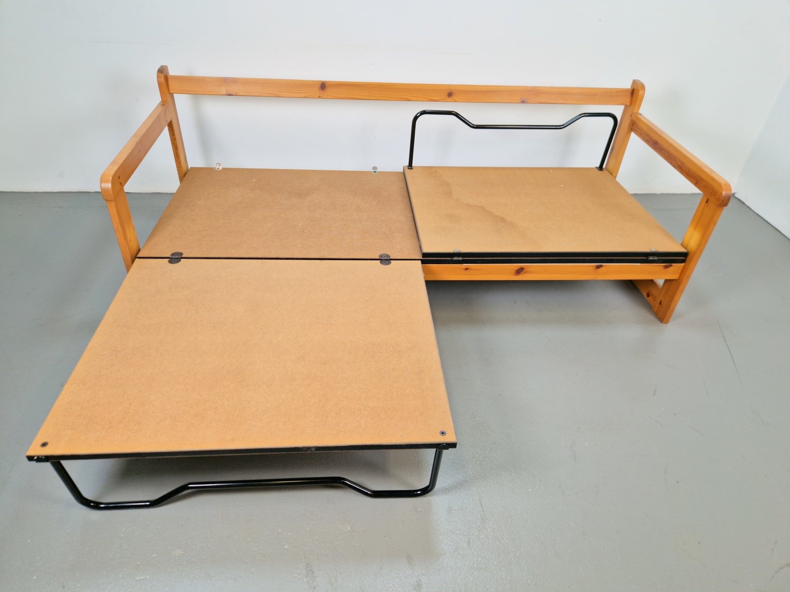 Sofá cama escandinavo moderno de pino, años 70