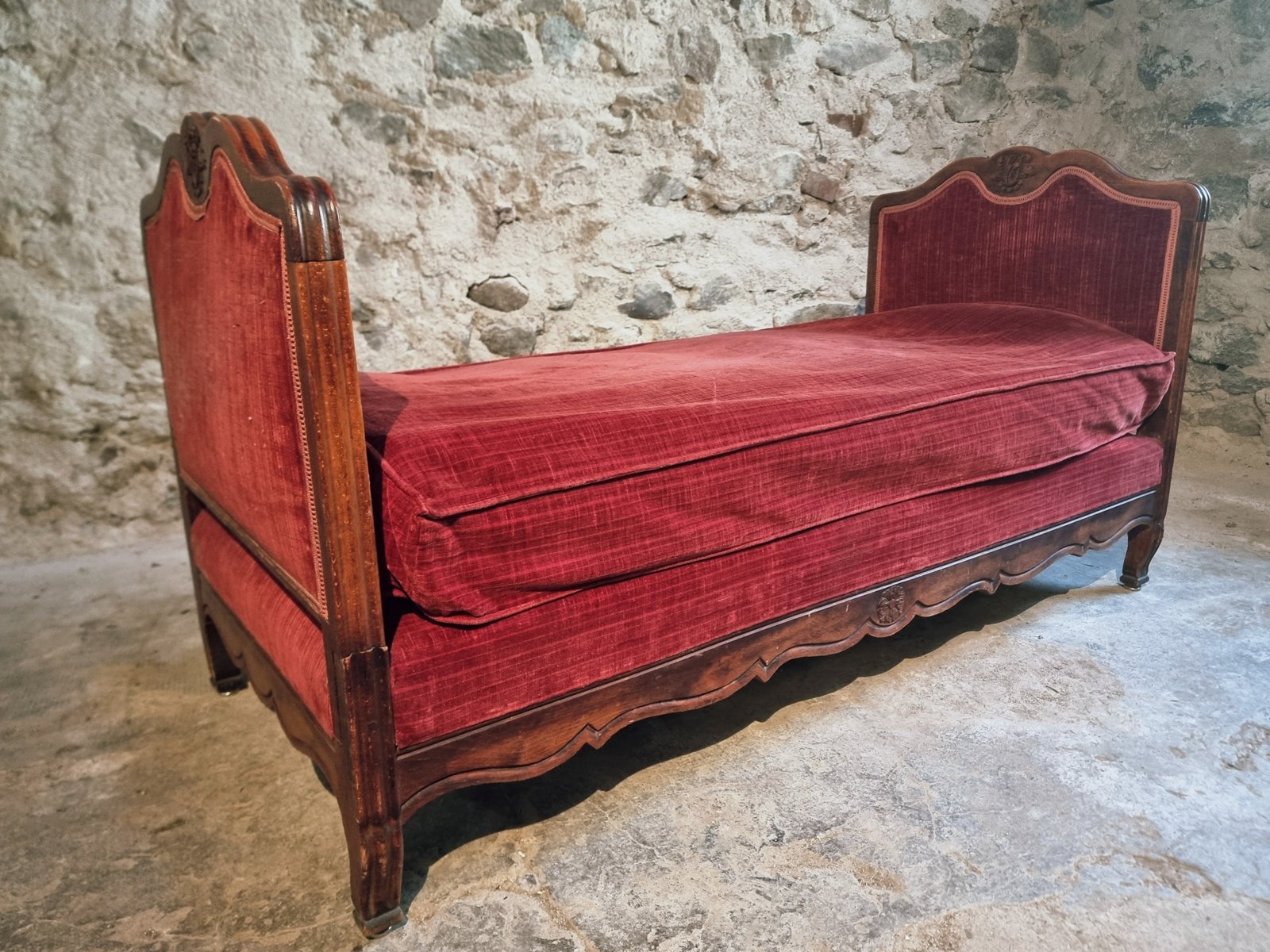 Sofá cama francés ajustable Luis XV antiguo con estructura de madera de haya, años 20