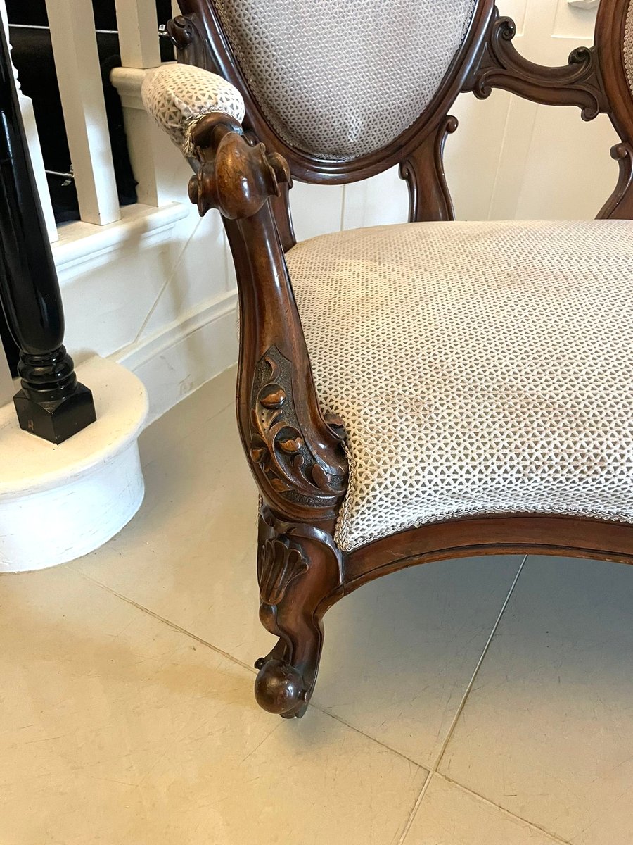 Sofá camafeo victoriano de nogal tallado, década de 1860