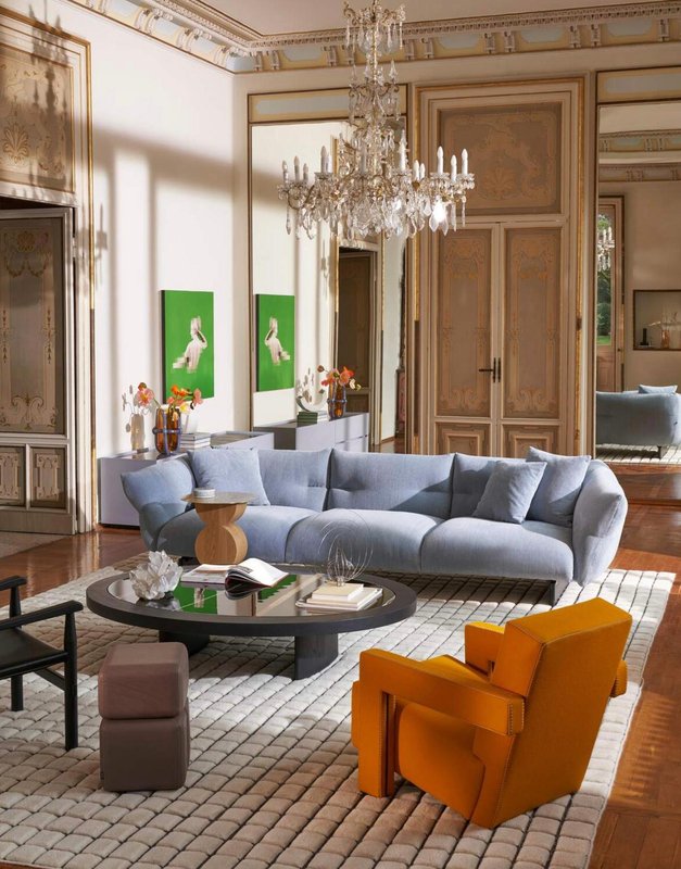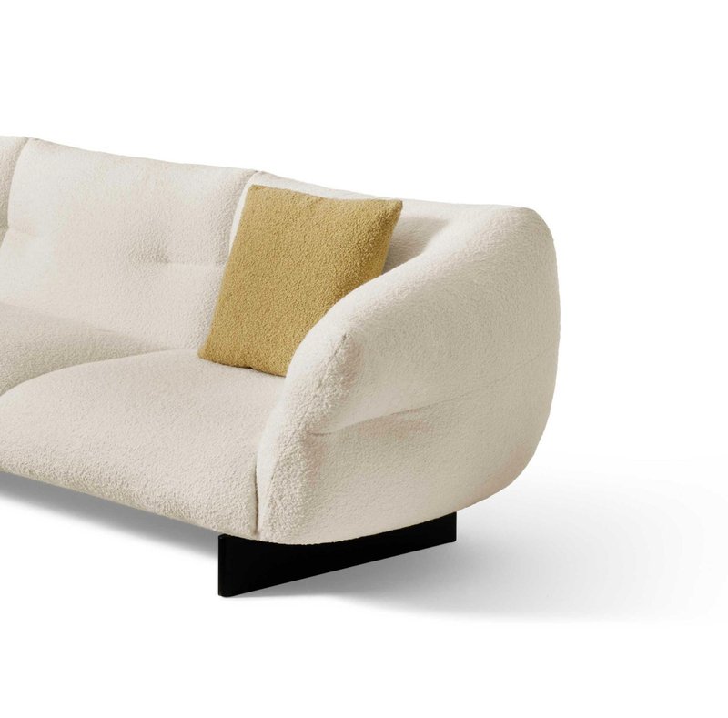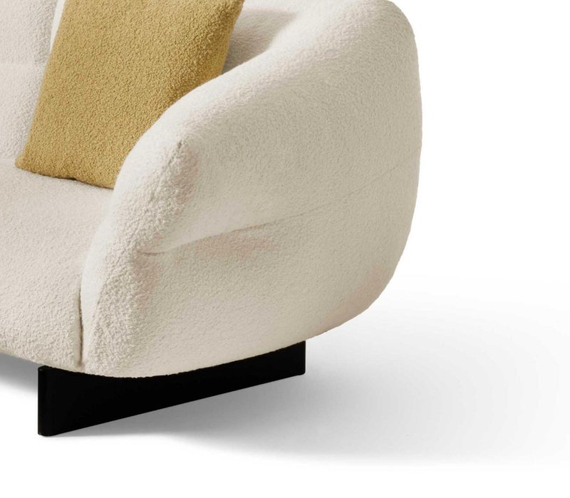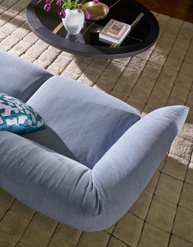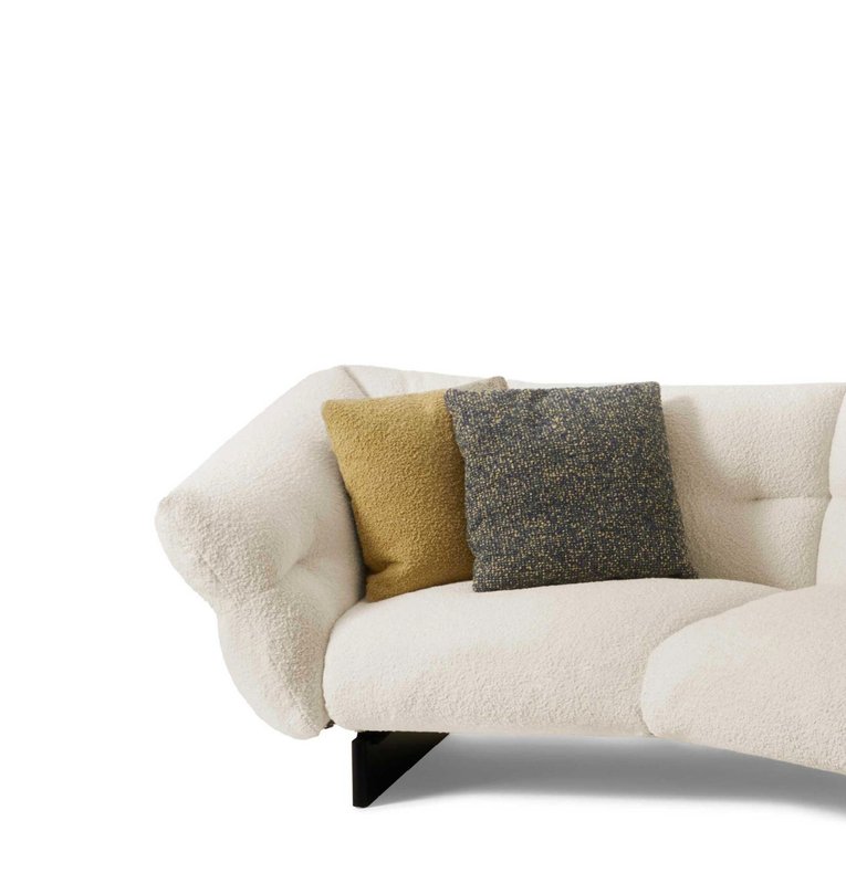 Patricia Urquiola Mon - Cloud Sofa For Cassina A generous, welcoming refuge that celebrates comfort and hospitality. Designed by Patricia Urquiola, Mon-Cloud is an extremely elegant, versatile sofa, studied to rethink upholstered furniture design with an eye to circularity. The wooden structure lifts the upholstered parts off the floor, lending the entire sofa the lightness of a cloud. The eco-minded core of the sofa is composed of circular materials, like recycled PET fibre in the padding that covers the metal skeleton and embraces the backrest and armrest structures like an enveloping comforter. The sofa can be disassembled to facilitate recovery at the end of its life-cycle. A generous, welcoming refuge that celebrates comfort and hospitality. Designed by Patricia Urquiola, Mon-Cloud is an extremely elegant, versatile sofa, studied to rethink upholstered furniture design with an eye to circularity. The wooden structure lifts the upholstered parts off the floor, lending the entire sofa the lightness of a cloud. The fabric upholstery envelops the contours of the sofa, creating a distinctive fold that enhances the beauty of its silhouette. The eco-minded core of the sofa is composed of a metal skeleton wrapped in quilted recycled PET fibre padding that embraces the backrest and armrest structures like an enveloping comforter. Even the soft seat cushions are made of recycled PET. Mon-Cloud contains an extremely low percentage of foamed elements made of CIRCULARREFOAM®, a polyurethane made with a percentage of recycled polyols. These inserts were developed so they could be separated from the other materials to facilitate their recovery and recycling. Since there are no glued parts, the sofa can be completely disassembled at the end of its life cycle. Mon-Cloud expands the collection with a new, more ample, corner seating module with open end pieces, an ottoman, a bench and an armchair, creating a fresh new living system suited to any contemporary lifestyle.