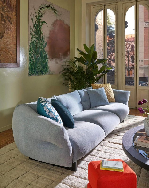 Patricia Urquiola Sofá Mon - Cloud Para Cassina Un refugio generoso y acogedor que celebra el confort y la hospitalidad. Diseñado por Patricia Urquiola, Mon-Cloud es un sofá extremadamente elegante y versátil, estudiado para replantear el diseño de muebles tapizados con un ojo puesto en la circularidad. La estructura de madera levanta del suelo las partes tapizadas, lo que confiere a todo el sofá la ligereza de una nube. El núcleo ecológico del sofá se compone de materiales circulares, como la fibra PET reciclada del relleno que cubre el esqueleto metálico y abraza las estructuras del respaldo y los reposabrazos como un edredón envolvente. El sofá puede desmontarse para facilitar su recuperación al final de su ciclo de vida. Un refugio generoso y acogedor que celebra la comodidad y la hospitalidad. Diseñado por Patricia Urquiola, Mon-Cloud es un sofá extremadamente elegante y versátil, estudiado para replantear el diseño de muebles tapizados con un ojo puesto en la circularidad. La estructura de madera levanta del suelo las partes tapizadas, confiriendo a todo el sofá la ligereza de una nube. La tapicería de tela envuelve los contornos del sofá, creando un pliegue distintivo que realza la belleza de su silueta. El núcleo ecológico del sofá está compuesto por un esqueleto metálico envuelto en un acolchado de fibra PET reciclada que abraza las estructuras del respaldo y los reposabrazos como un edredón envolvente. Incluso los mullidos cojines del asiento están hechos de PET reciclado. Mon-Cloud contiene un porcentaje extremadamente bajo de elementos espumados hechos de CIRCULARREFOAM®, un poliuretano fabricado con un porcentaje de polioles reciclados. Estos insertos se desarrollaron para poder separarlos del resto de materiales y facilitar su recuperación y reciclaje. Al no tener piezas encoladas, el sofá puede desmontarse completamente al final de su ciclo de vida. Mon-Cloud amplía la colección con un nuevo módulo de asiento esquinero más amplio, con piezas terminales abiertas, una otomana, un banco y un sillón, creando un nuevo y fresco sistema de vida adaptado a cualquier estilo de vida contemporáneo.