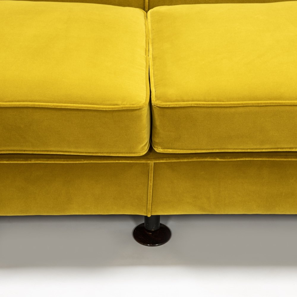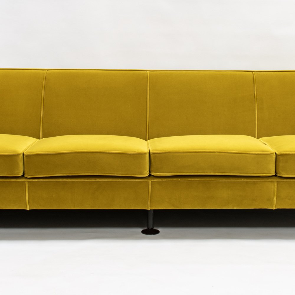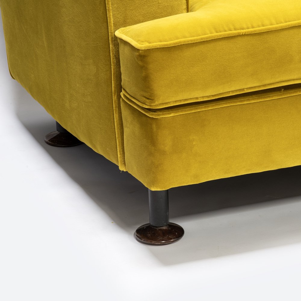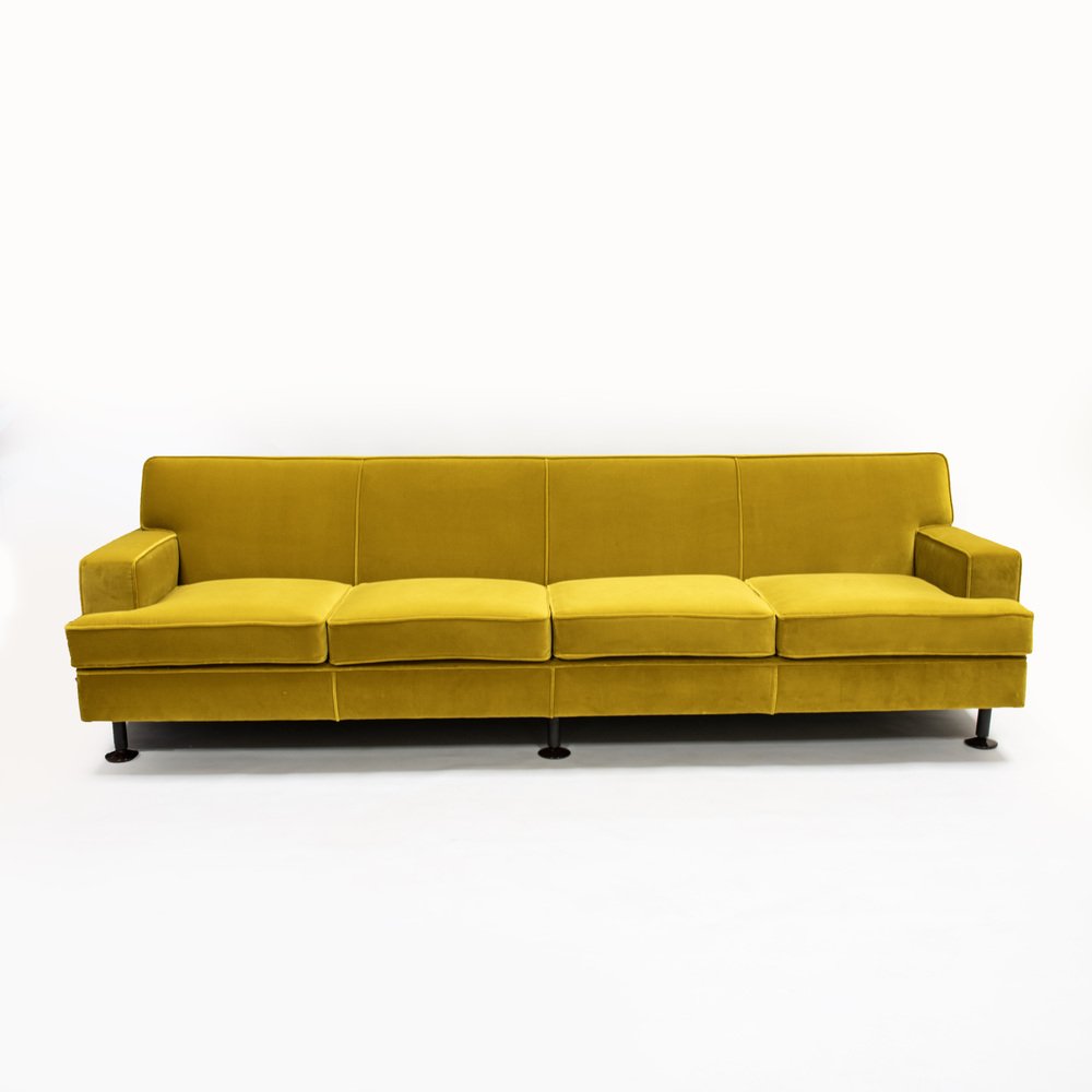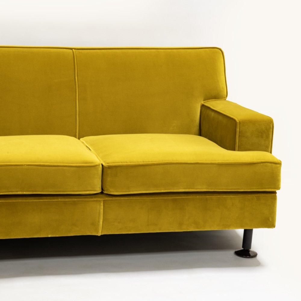 Italian furniture manufacturing company Arflex was originally founded in Milan 1947 by a team of engineers—Carlo Barassi, Renato Teani, Pio Reggiani, and Aldo Bai—from Italian tire company Pirelli. While exploring new technologies in rubber production, they developed a new polyurethane foam and elastic tape that held great potential for modernist furniture design. Italian architect-designer Marco Zanuso (1916-2001) was brought in to create the first collections, guided by the principle that the new materials would inform the aesthetic result.