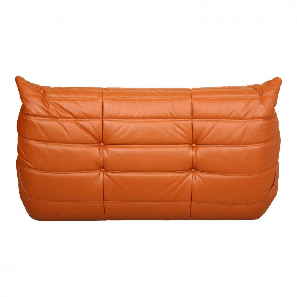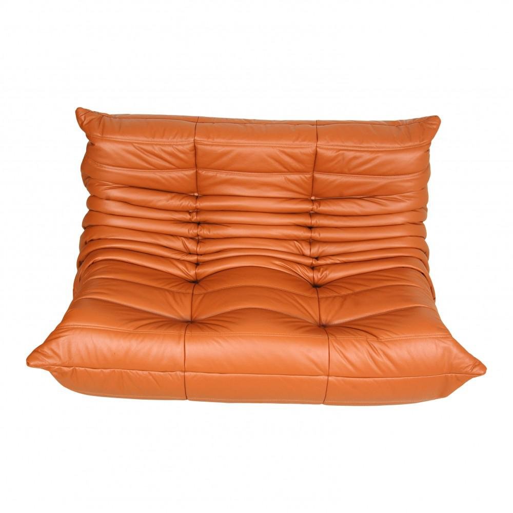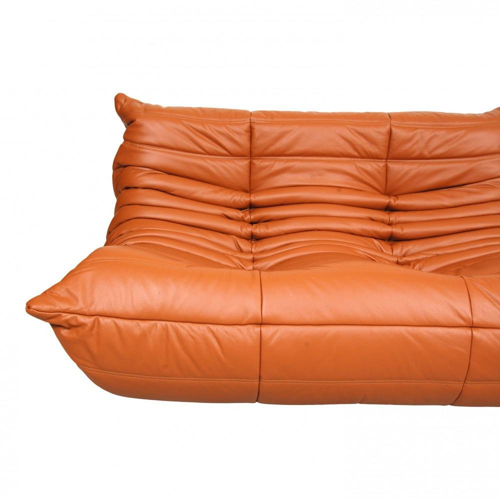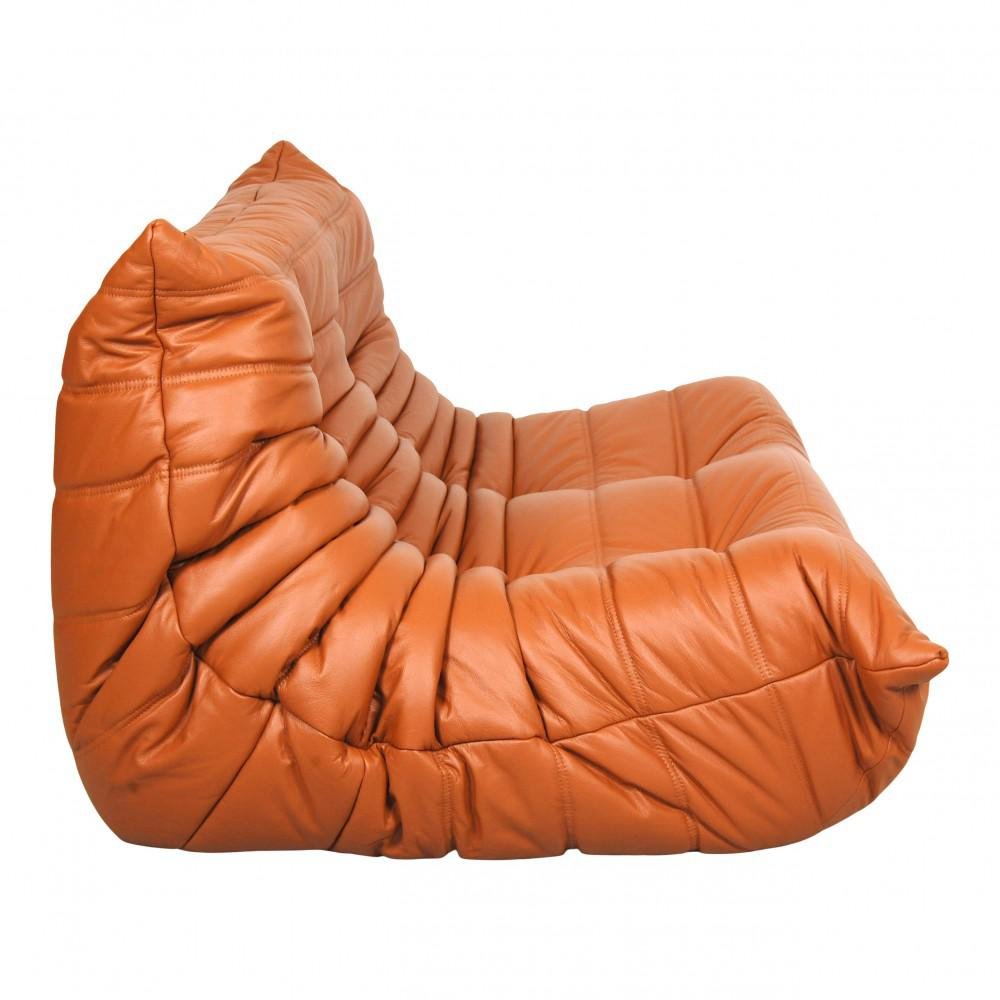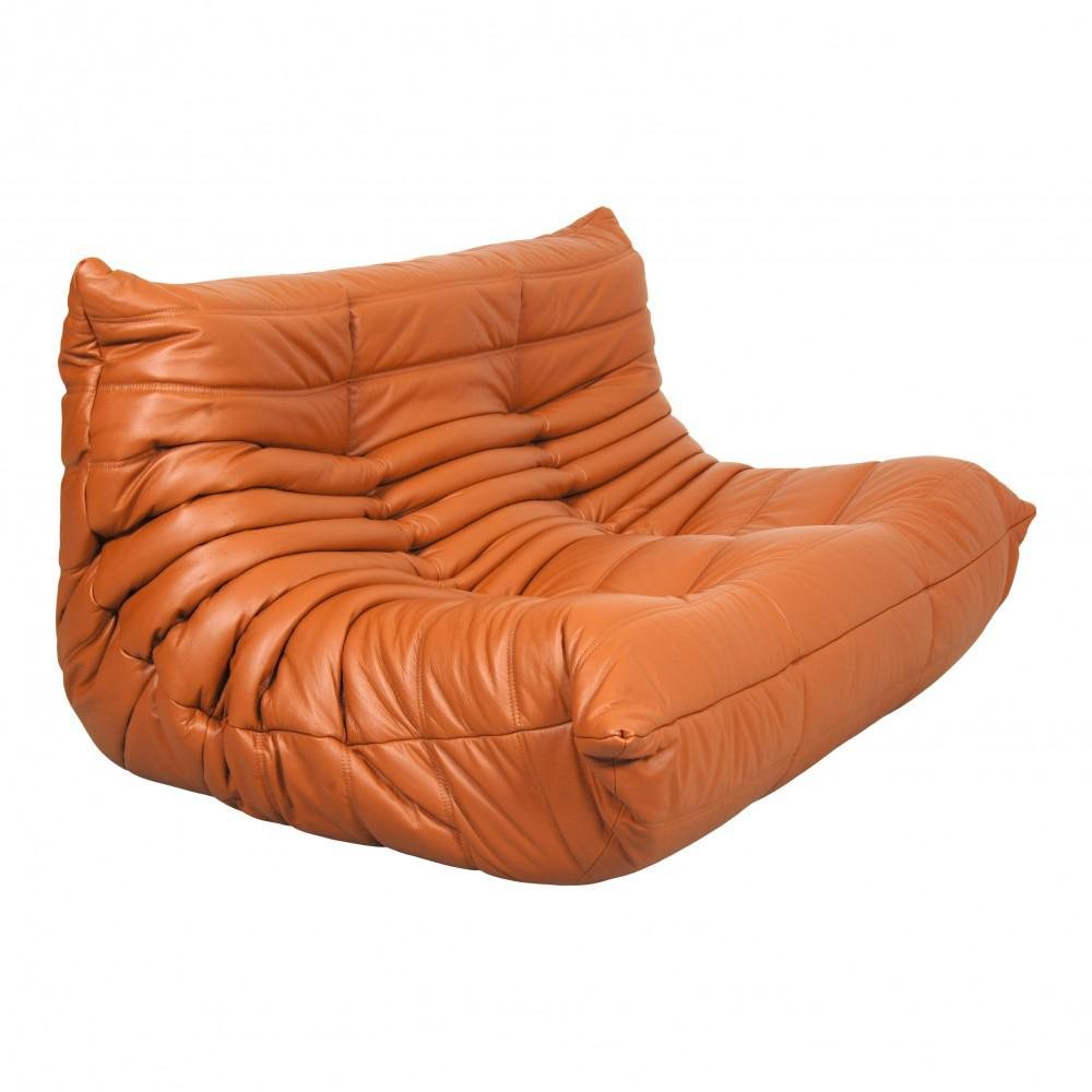 Sofá de dos plazas Togo de cuero coñac clásico de Michel Ducaroy para Ligne Roset, años 70