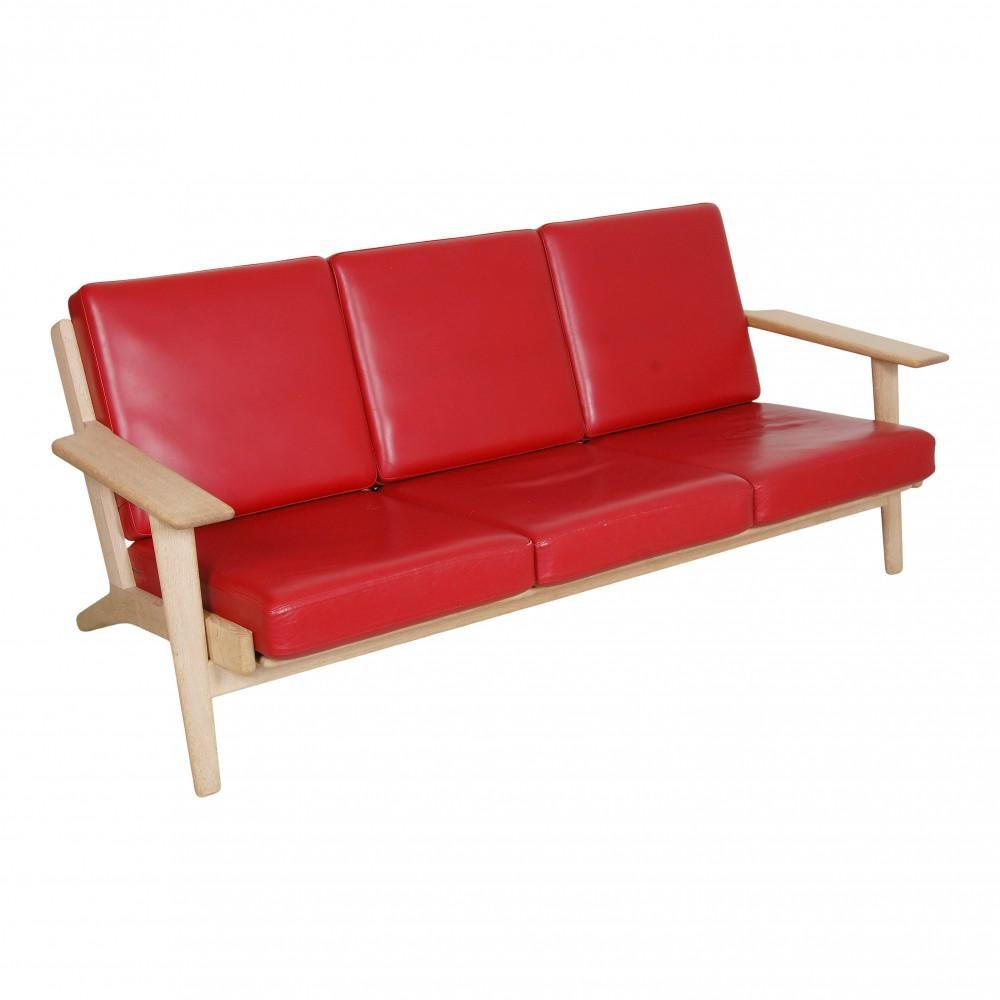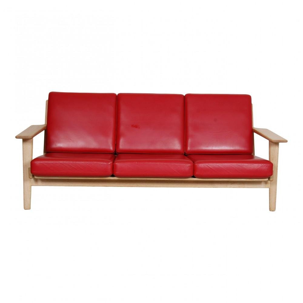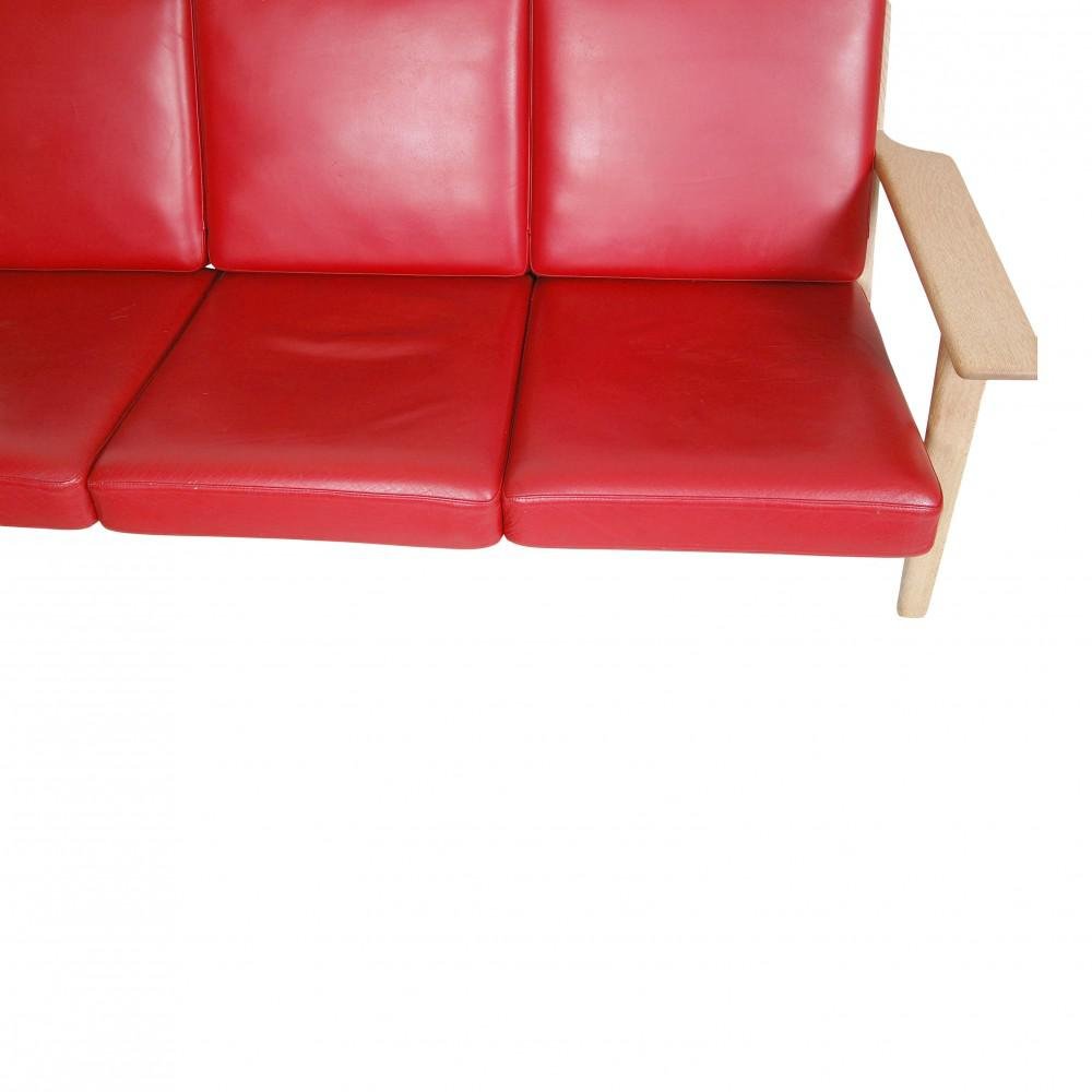 Sofá de tres personas de cuero rojo y estructura de roble de Hans J. Wegner para Getama