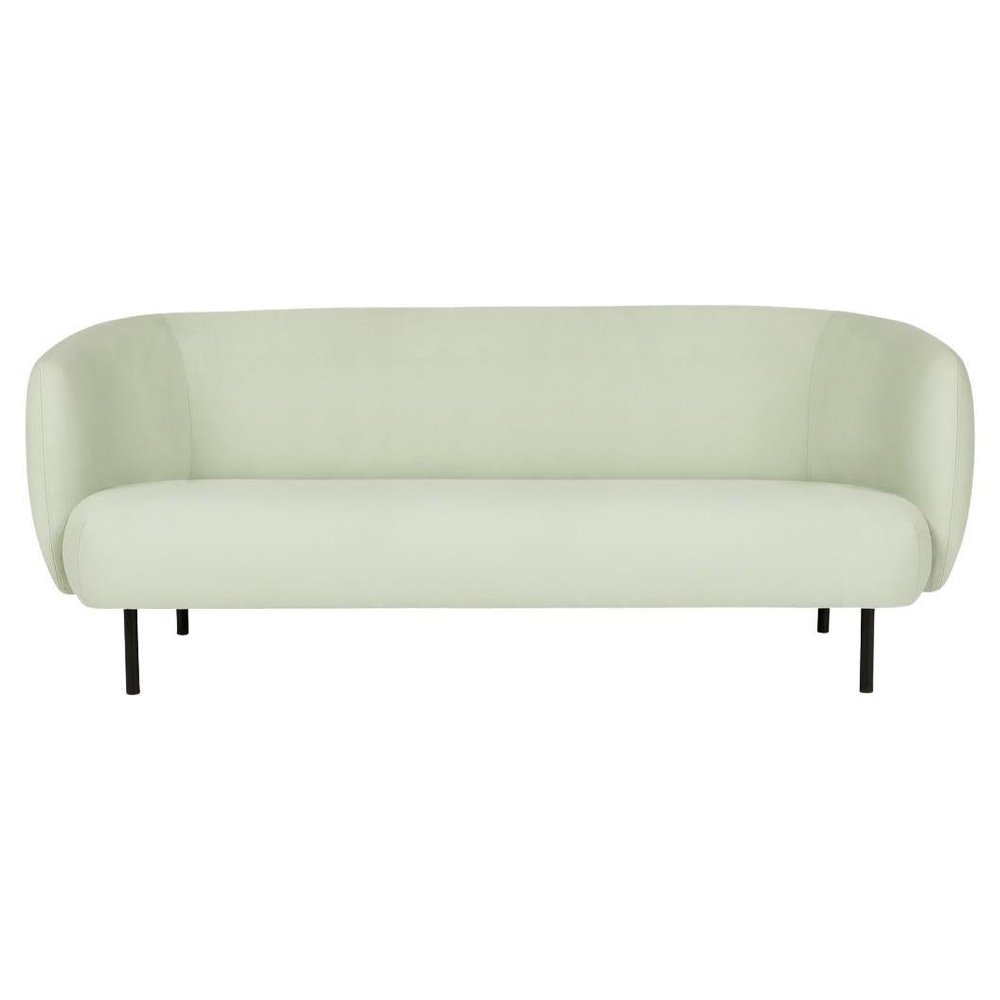 Caper 3 seater mint by Warm Nordic Dimensions: D 206 x W 84 x H 63 cm Material: Textile upholstery, wooden frame, powder coated black steel legs. Weight: 55.5 kg May be available separately in different colours and finishes. An elegant sofa with an organic design inspired by the puffed sleeves and layered designs of haute couture. Its soft lines and chic details make the Cape sofa a natural focal point, preferably in the company of the armchair in the same range. Both items of furniture are available with or without visible stitching. The sofa looks just as elegant in a modern building as in an old-fashioned luxury flat and has a light look by virtue of its slender metal legs. To achieve aesthetic perfection the Cape range is covered with exclusive furnishing fabrics, including 'Hero', whose soft, almost felt-like surface complements the sofas organic shape, and which is designed by Patricia Urquiola. Warm Nordic is an ambitious design brand anchored in Nordic design history and with a timeless, aesthetic style that inspires you to appreciate the little things in life. The company is the result of several years’ intense work on developing a new design brand with design history, quality and personality at its core. Warm Nordic boasts a colourful and charming universe of furniture, lamps and accessories full of personality. Our designs encapsulate the Nordic spirit, which in its essence is timeless, inclusive and warm.