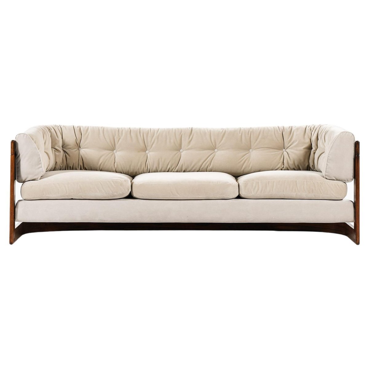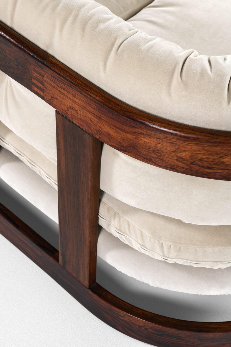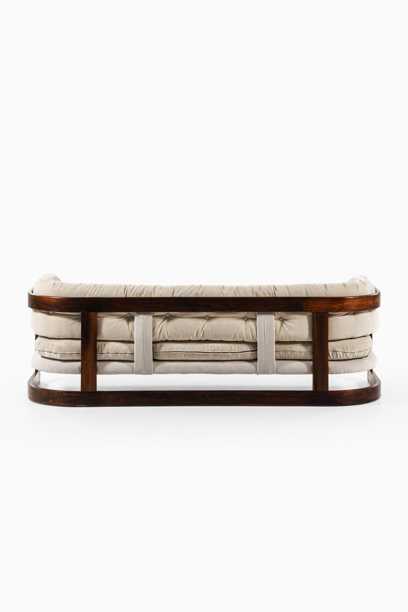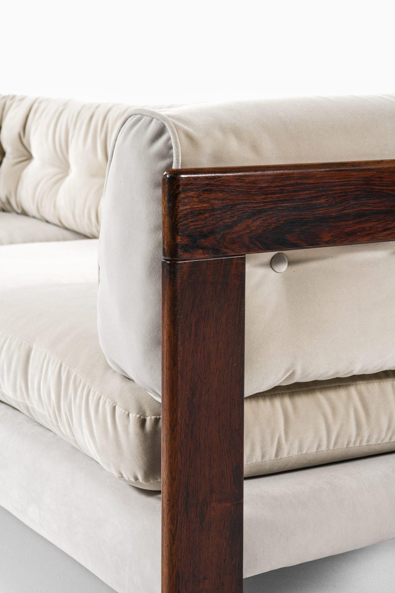 Sofá de tres plazas de terciopelo con palisandro de Lennart Bender, años 70