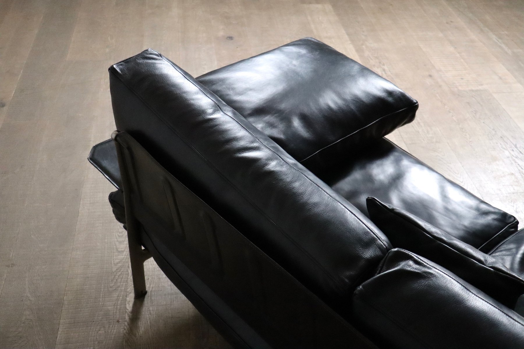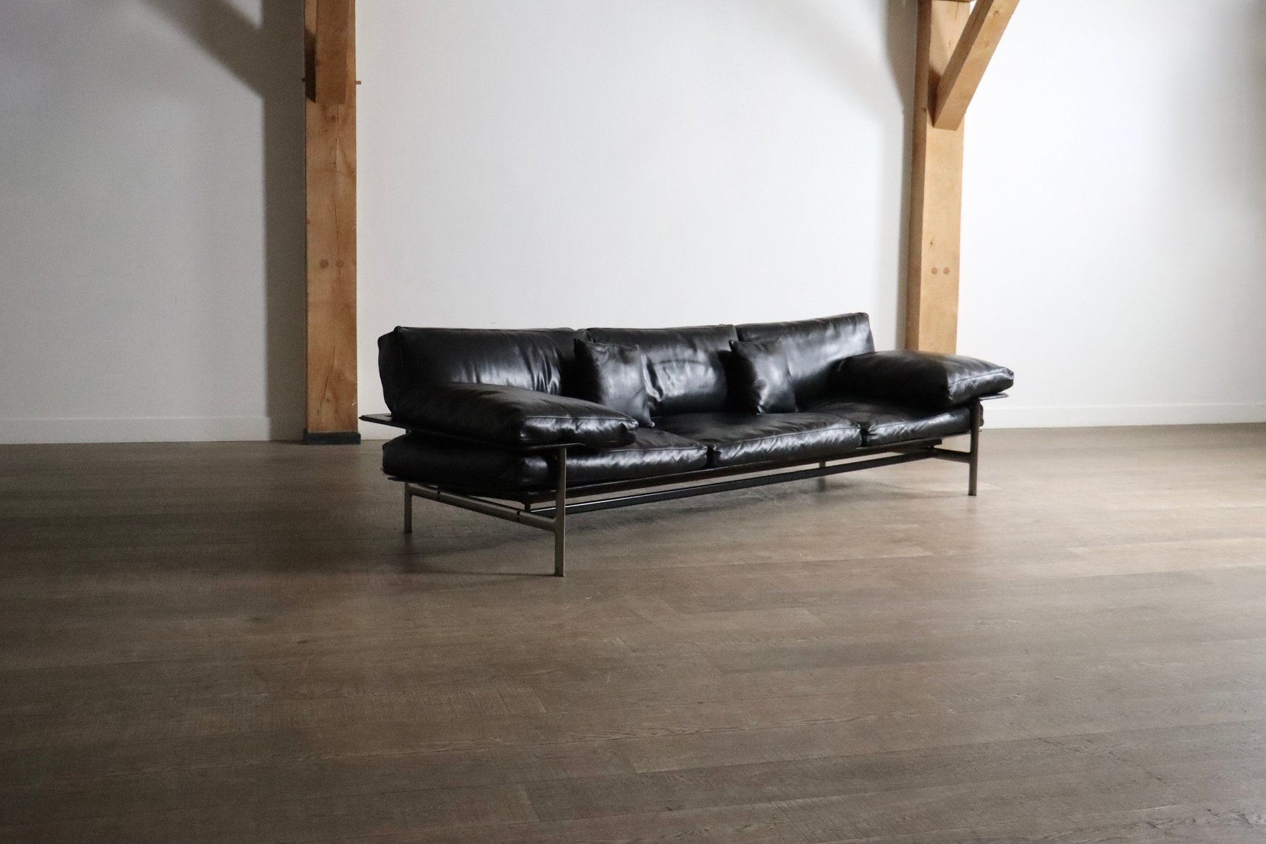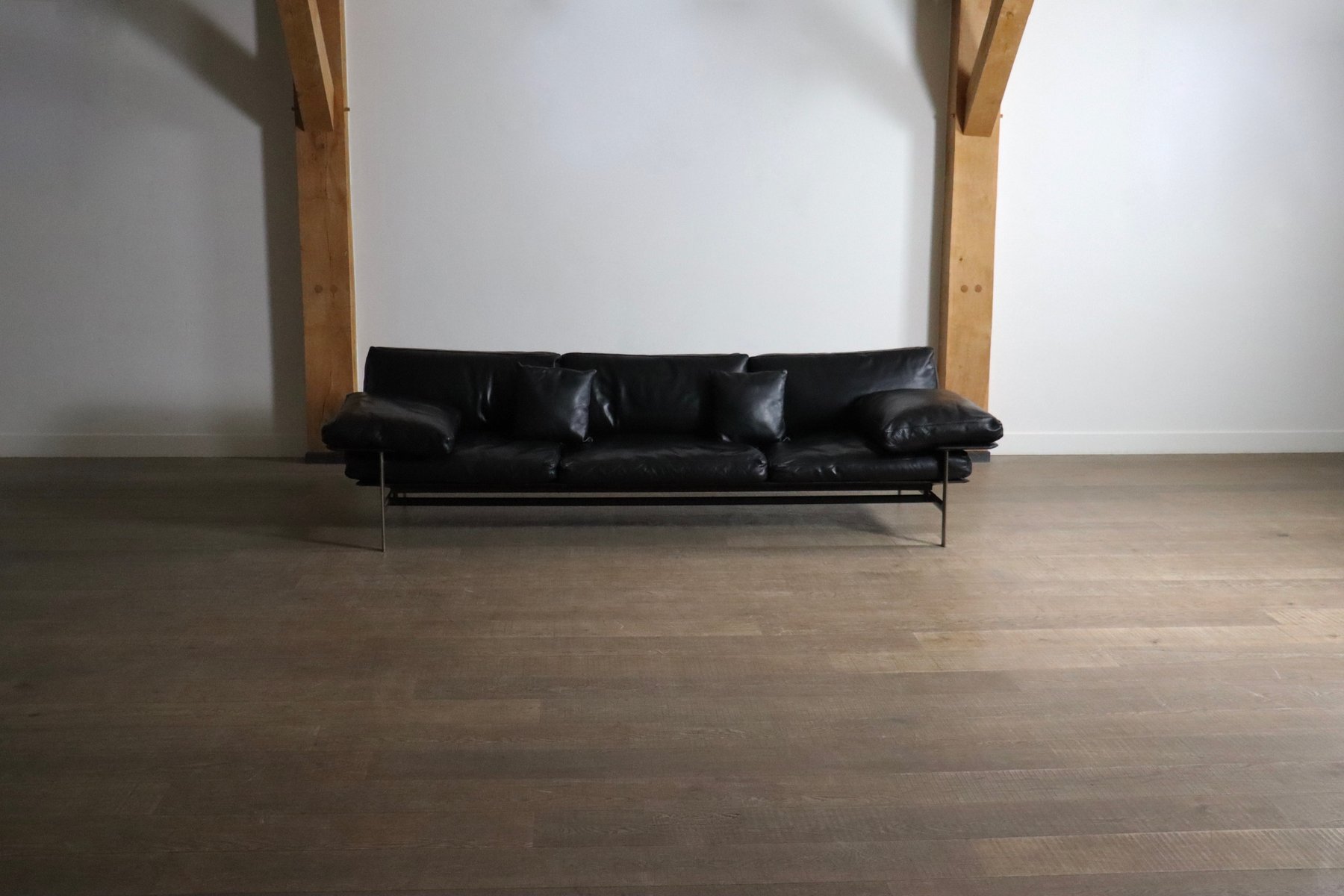 Sofá de tres plazas Diesis de cuero negro de Antonio Citterio para B&B Italia, años 70