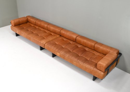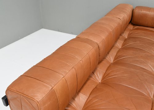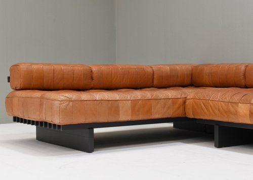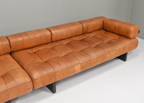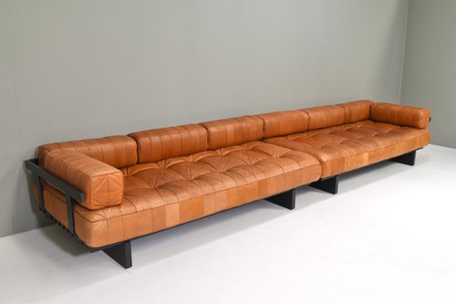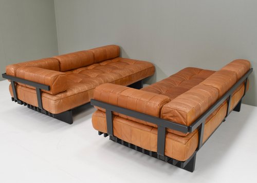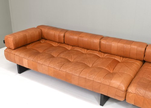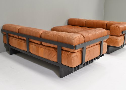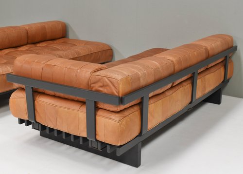 About the DS80: The sofas are made of patches of leather in differents variations of cognac tan leather. The base is made of dark grey lacquered wood. Elevate your living space with the epitome of luxury and comfort – the De Sede DS-80 sofa is crafted with meticulous attention to detail by renowned Swiss artisans, this masterpiece seamlessly blends innovative design with timeless elegance. Indulge in unparalleled comfort as you sink into the plush cushions, meticulously upholstered in the finest leather, sourced for its supple texture and enduring quality. The sleek, contemporary silhouette of the DS-80 Sofa effortlessly complements any interior aesthetic, whether modern or classic, adding a touch of sophistication to your home. Designed for both relaxation and style, the DS-80 Sofas boasts modular versatility, allowing you to customize configurations to suit your unique space and lifestyle. Whether lounging with loved ones or entertaining guests, this sofa promises a luxurious seating experience that transcends expectations. Experience the artistry of De Sede and elevate your living space with the DS-80 Sofas – where innovation, craftsmanship, and luxury converge to redefine the standard of comfort and style.