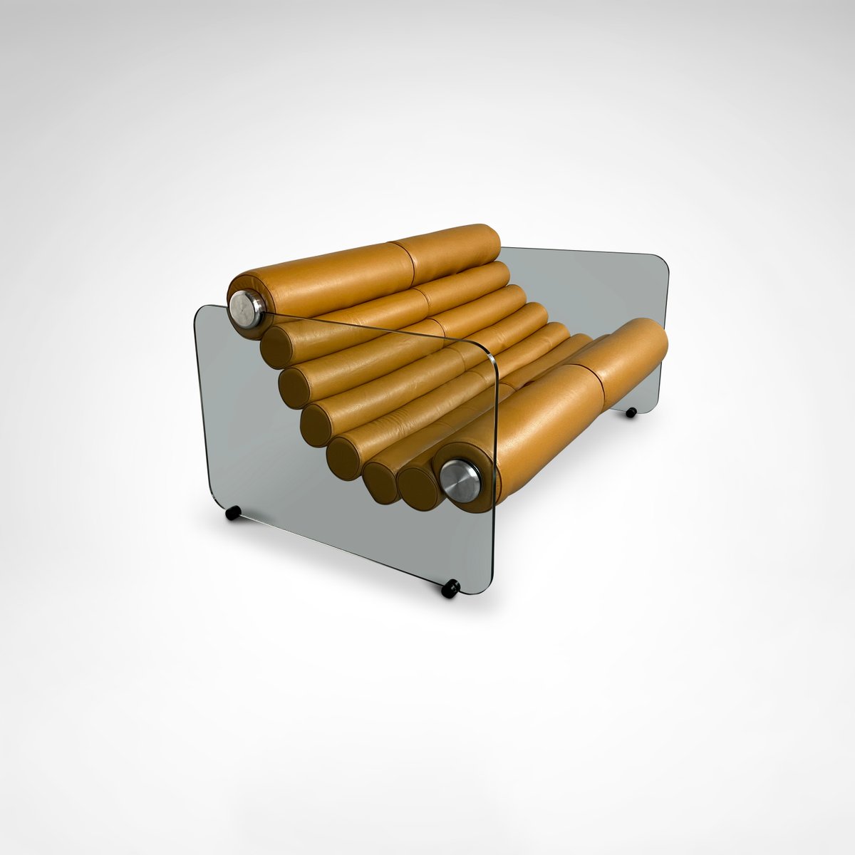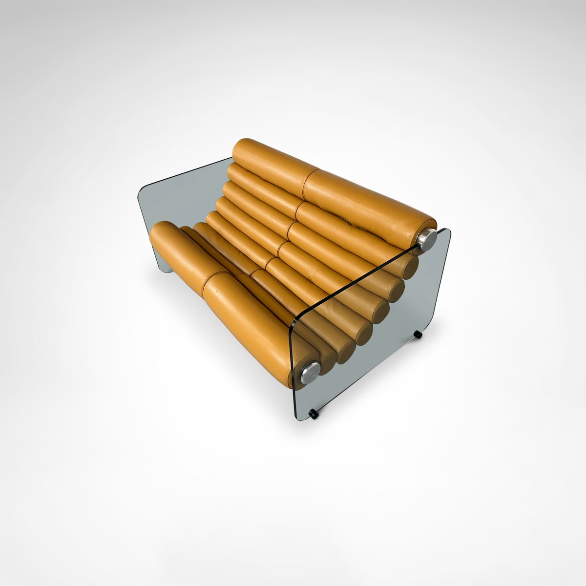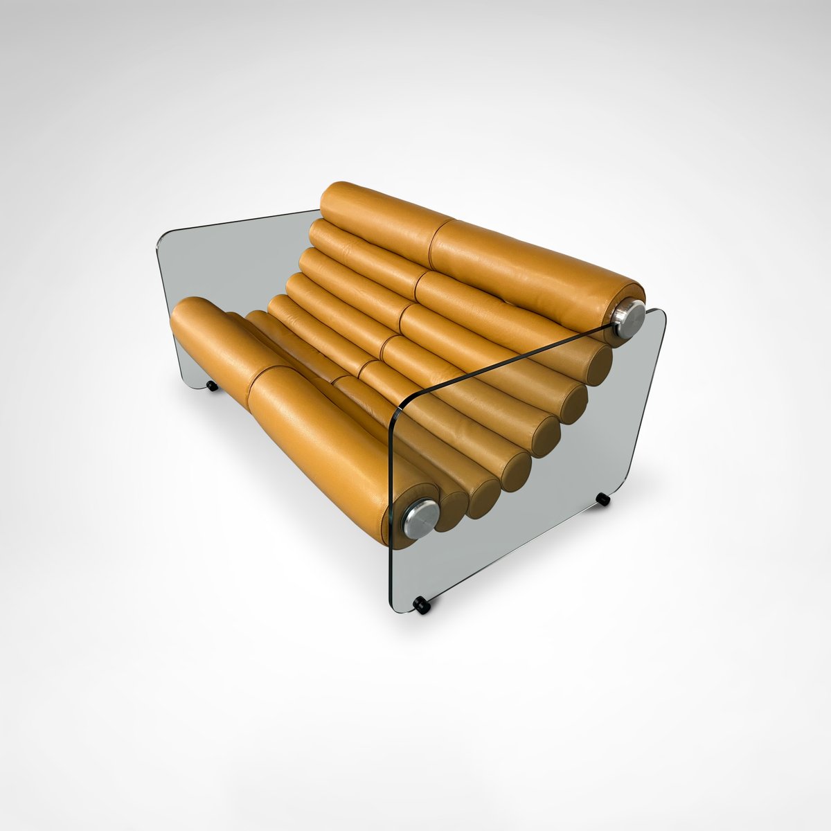 Sofá hialino de cuero y vidrio de Fabio Lenci para Comfortline, Italia, años 60