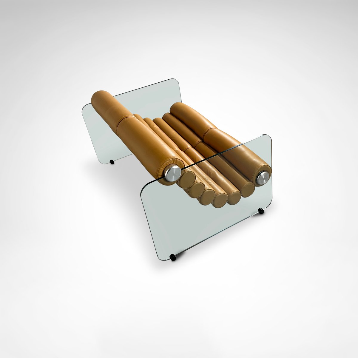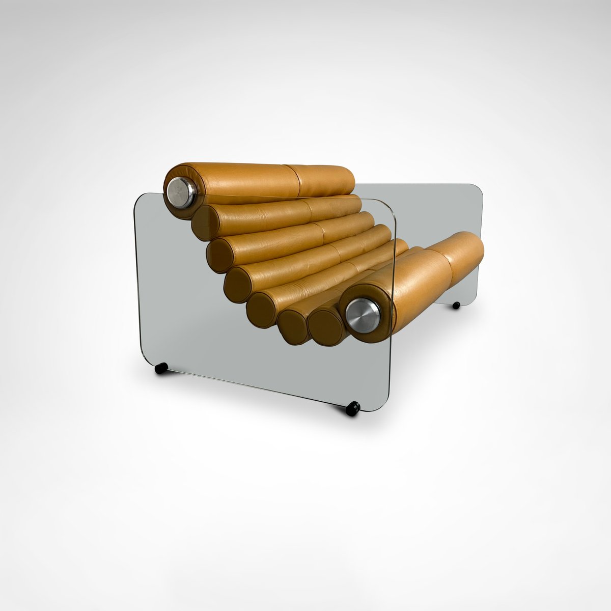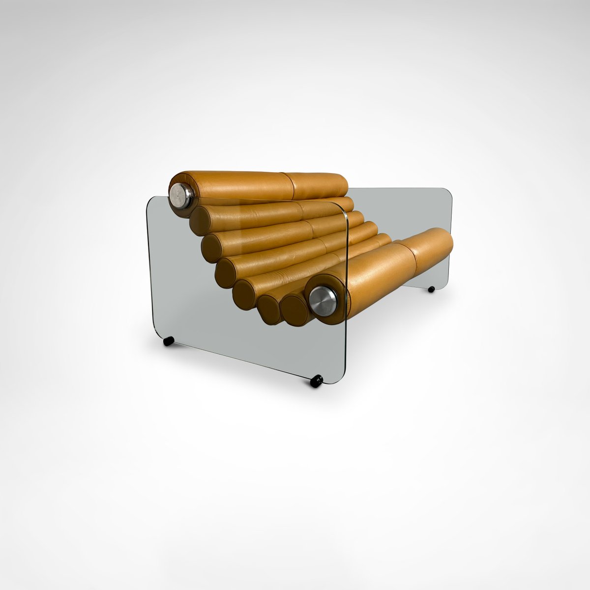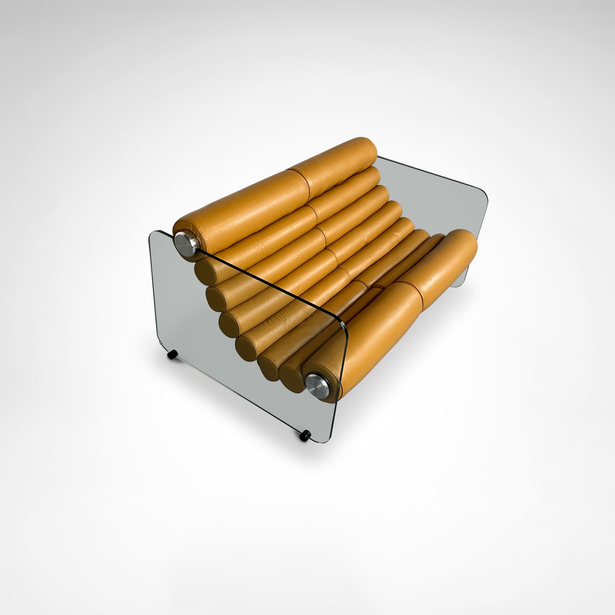 Sofá hialino de cuero y vidrio de Fabio Lenci para Comfortline, Italia, años 60