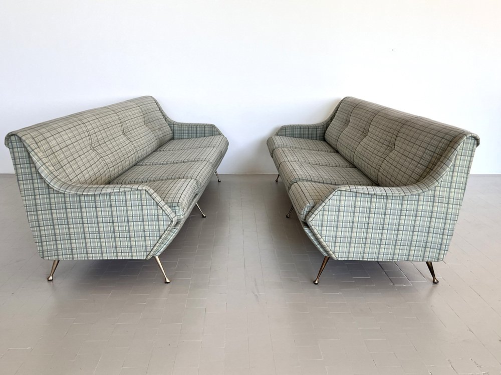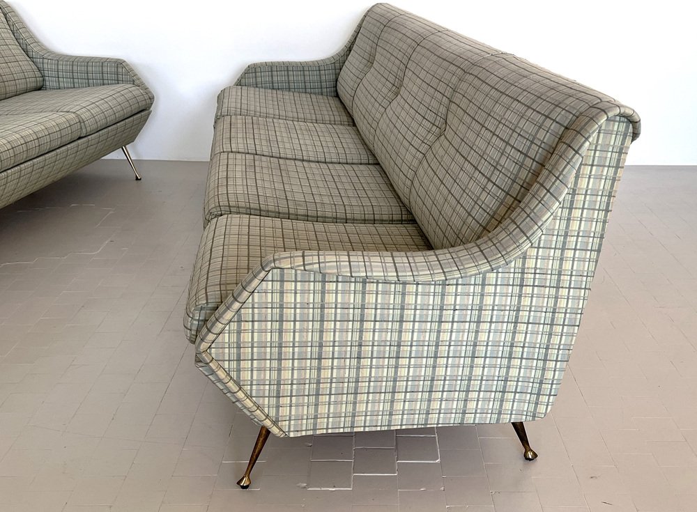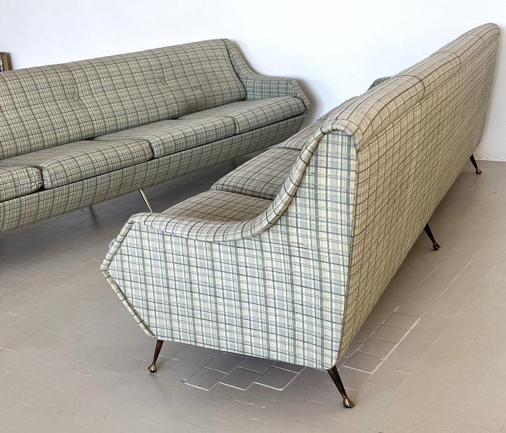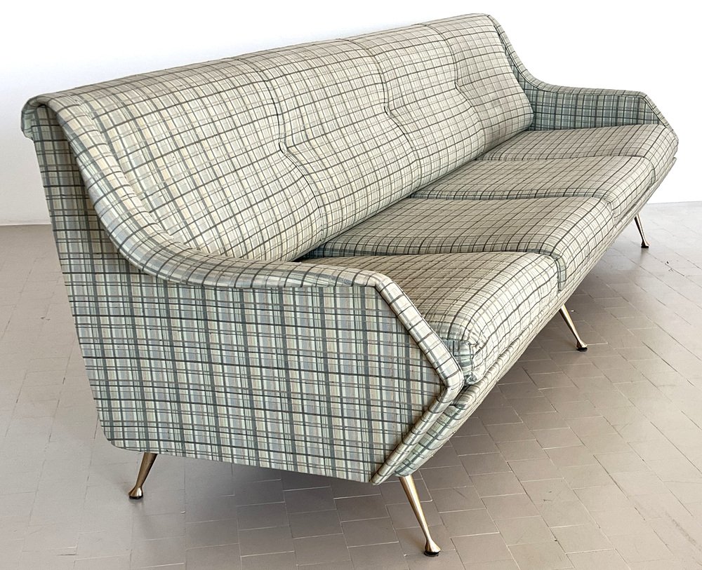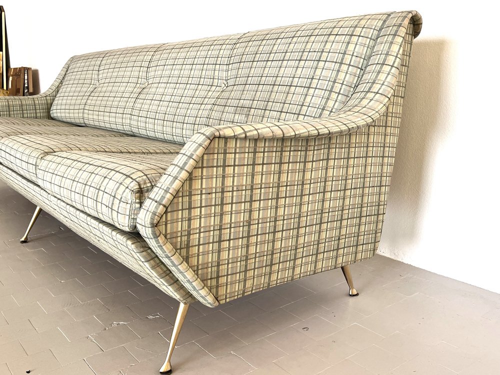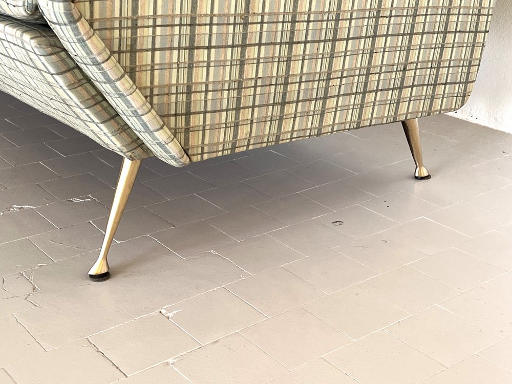 Sofá italiano grande con patas de latón, años 50