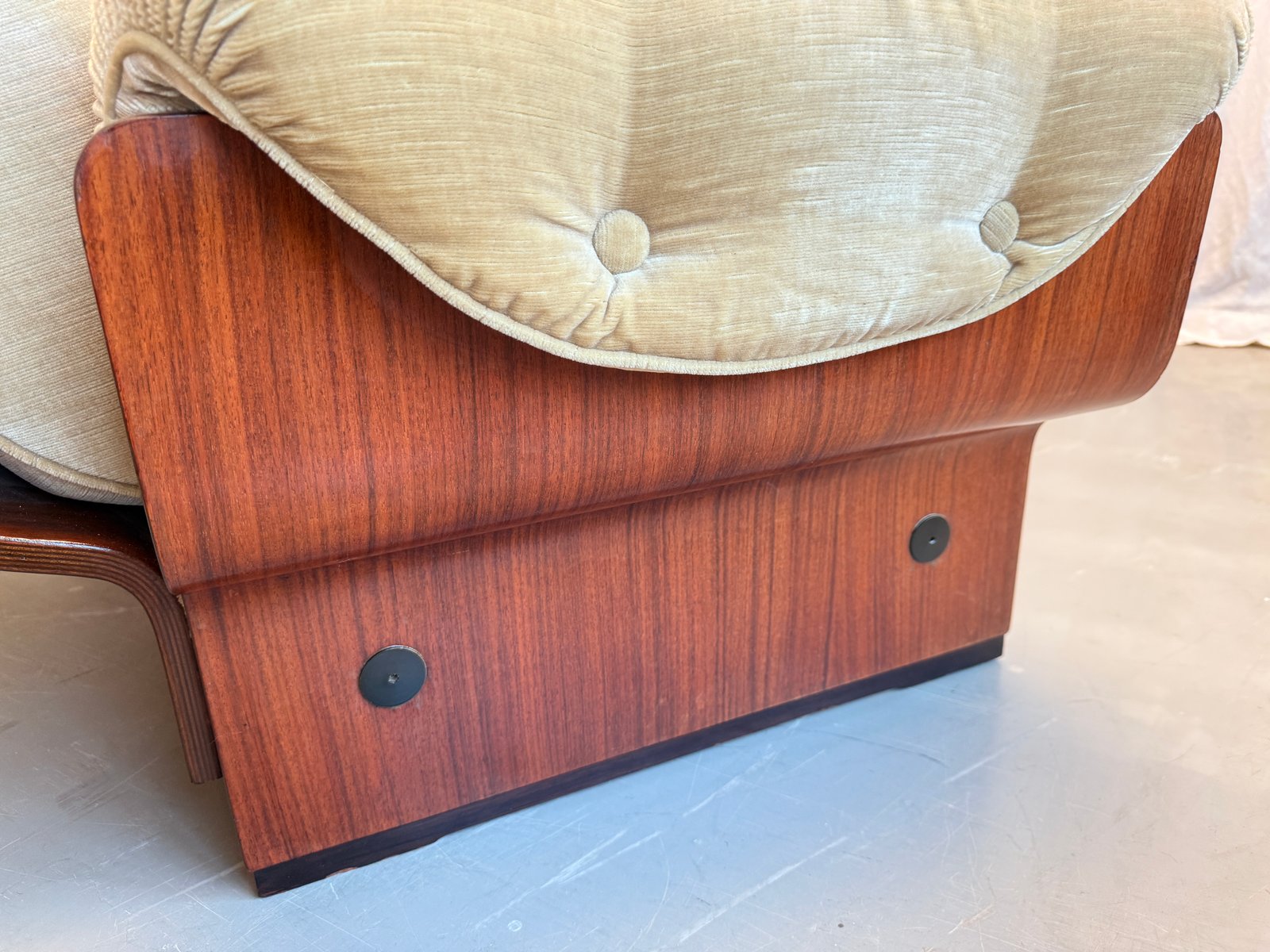 Tecno’s first factory-produced collection of sofas, chairs, and tables received an enthusiastic reception at the 10th Triennale di Milano in 1954. The simple, adjustable D70 Sofa Bed (1954) received honorable mention, and Osvaldo promptly patented the design. Tecno’s next big hit was the P40 Lounge (1956), an adjustable, reclining chair with built-in footrest. Both of these Tecno products have become beloved symbols of the golden age of Italian modernist design.
