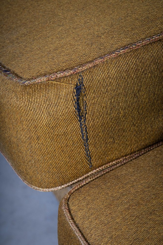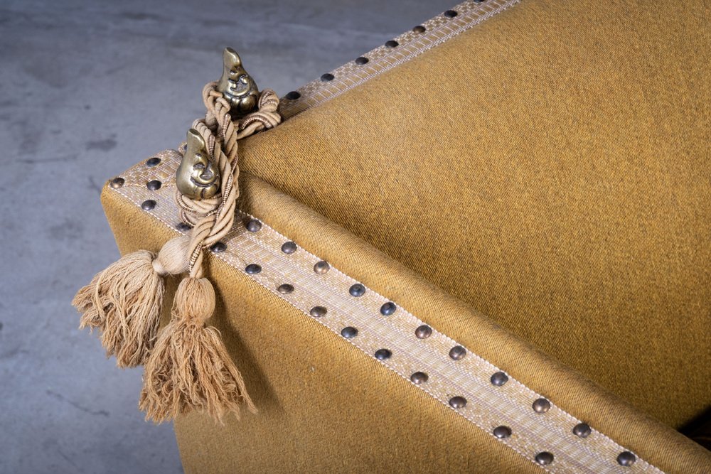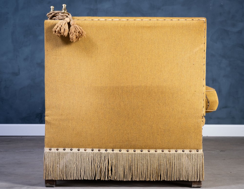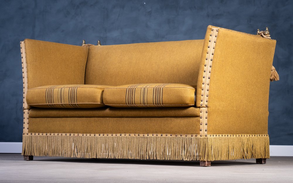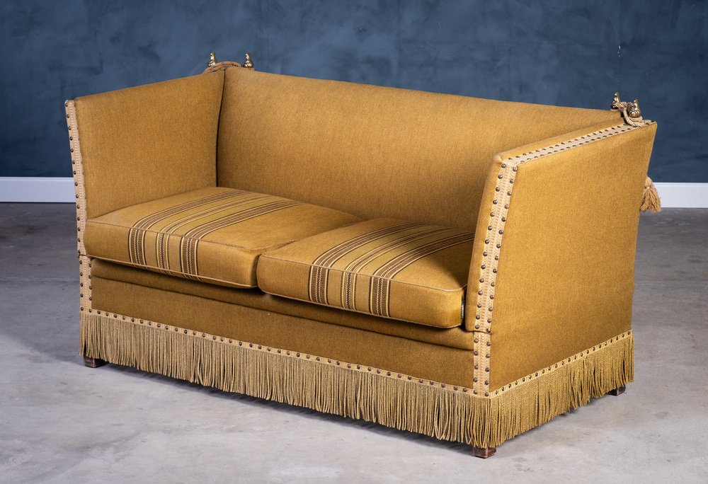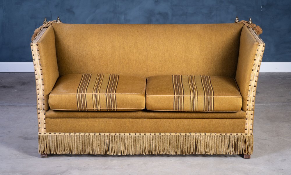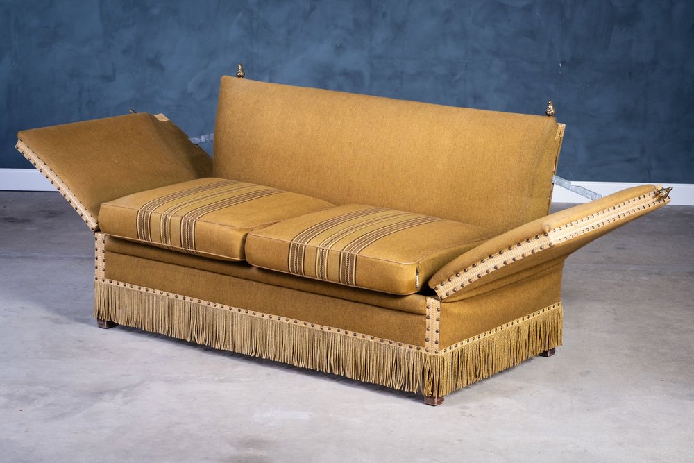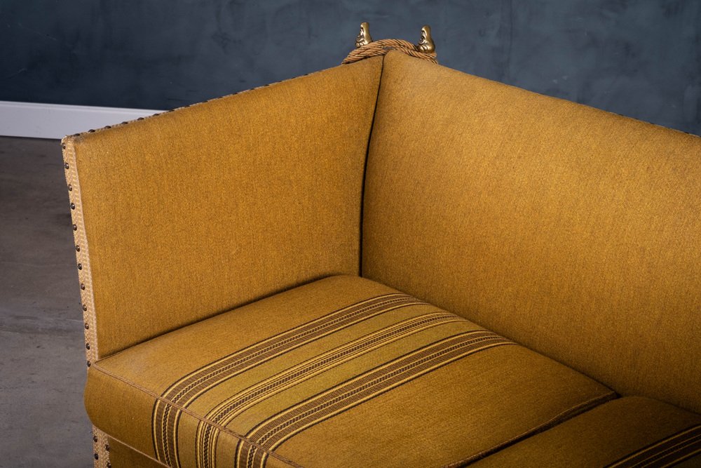 Sofá Knole vintage de terciopelo verde y amarillo, años 50