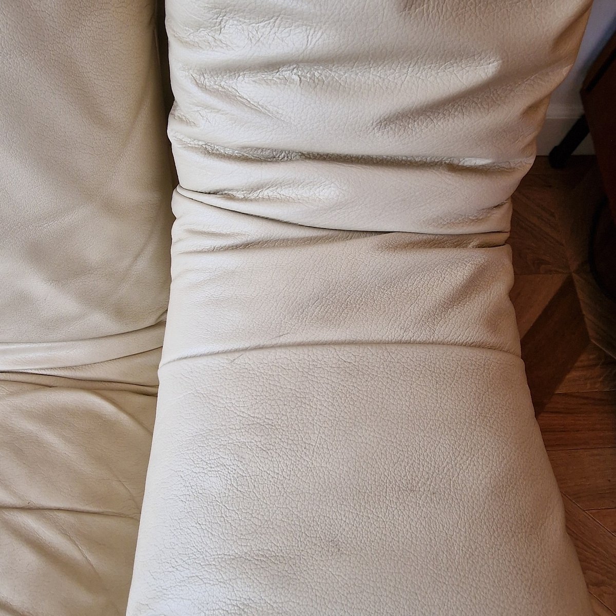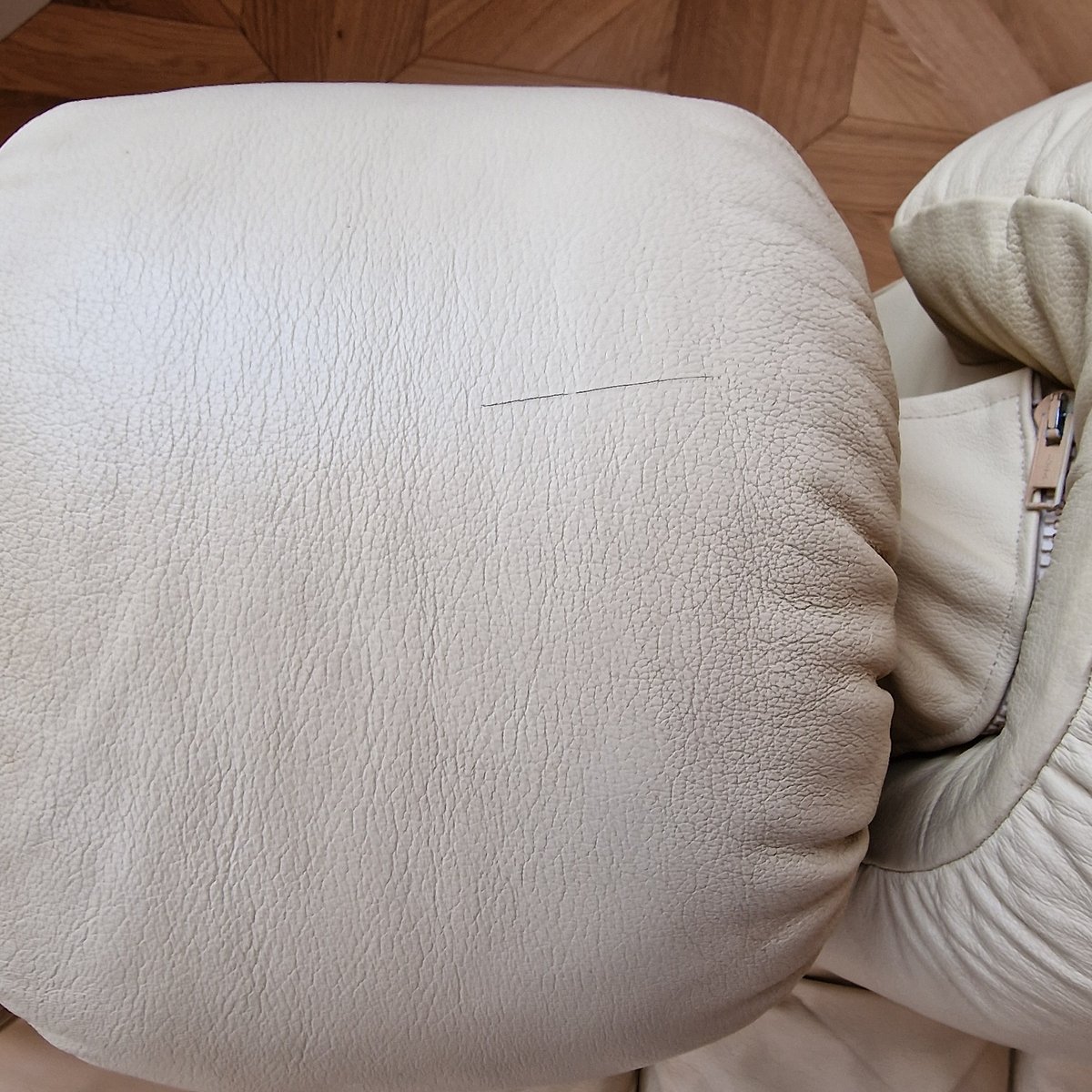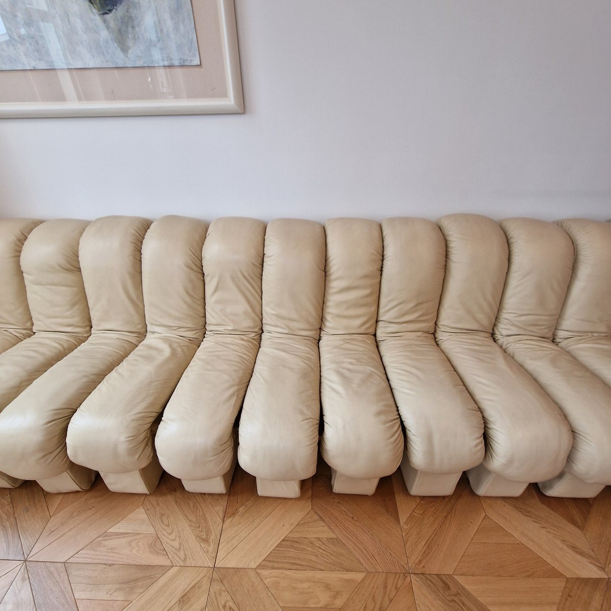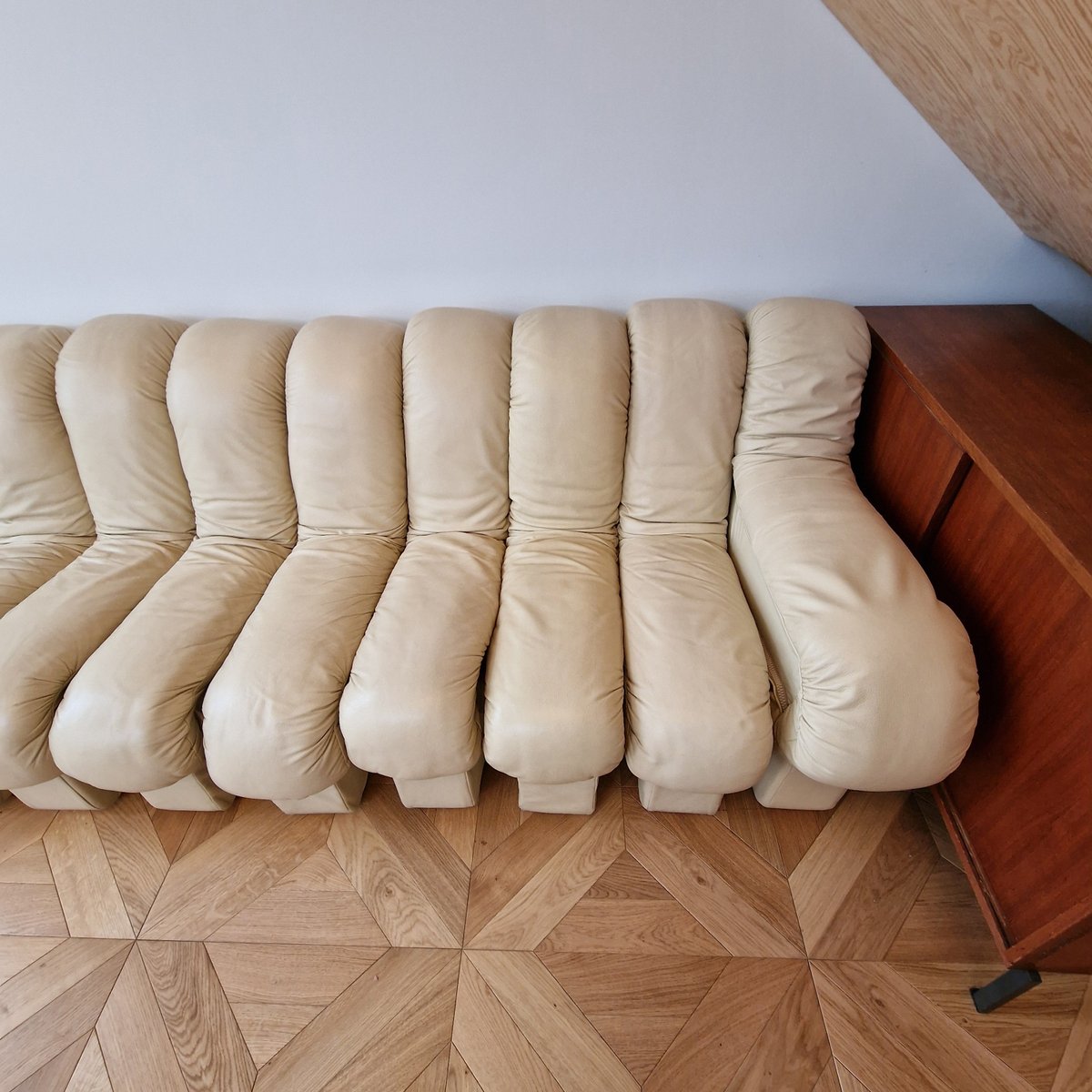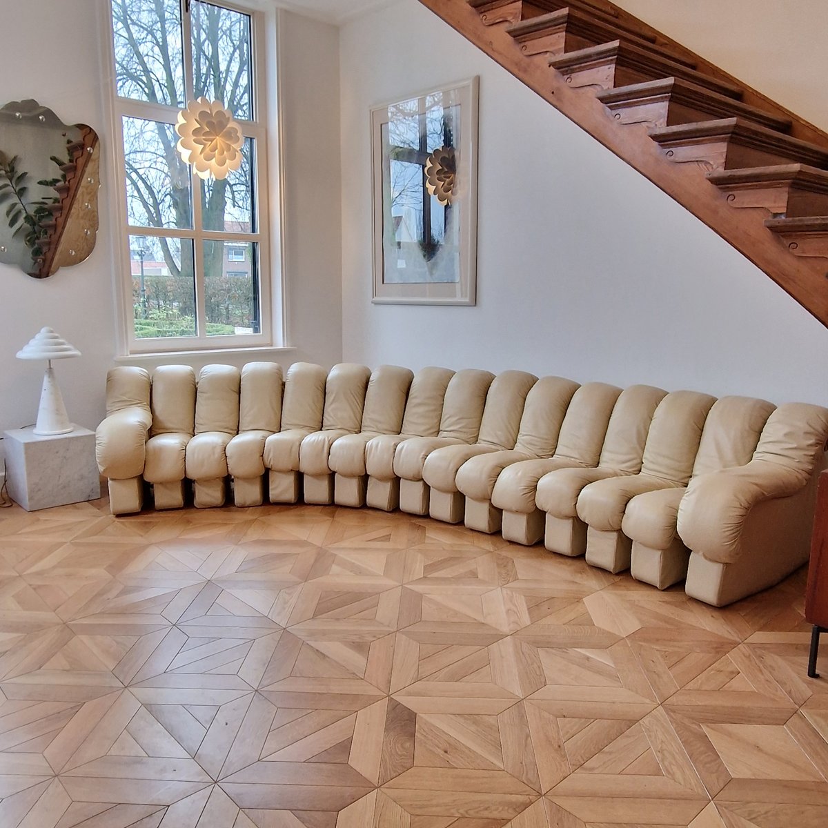 This stunning sofa consists of 16 full leather modular parts, color cream or ivory.