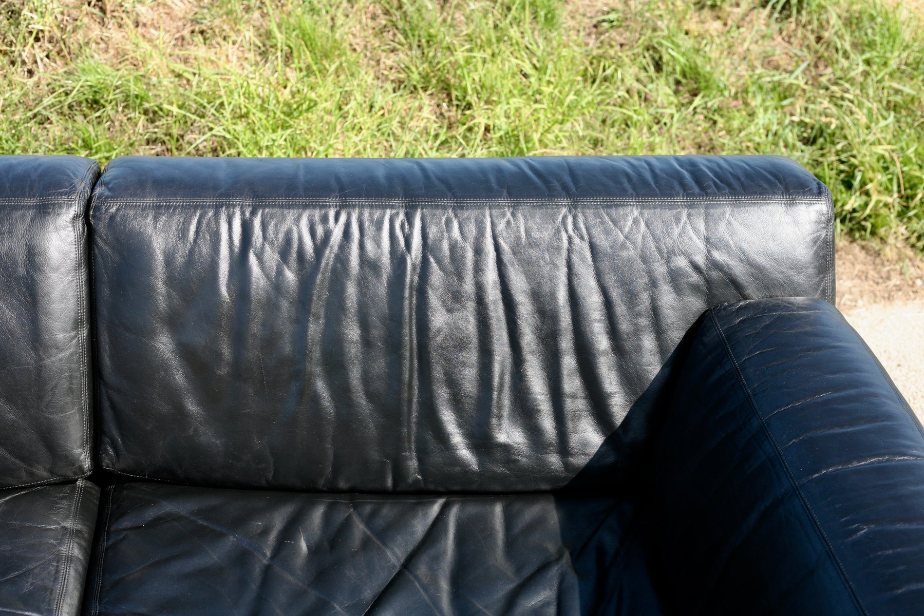 De Sede DS-76 sofa, black leather, modular, Switzerland, 1970s.
