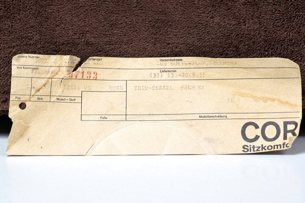 Sofa Trio Designer: Karl Odermatt und Franz Hero, Teamform AG Year: um 1970 Manufacturer: COR, Rheda-Wiedenbrück Country: Germany Measurements: H 35 cm/62 cm W 96 cm/380 cm D 96 cm/190 cm Material: Base wood, foam, upholstery fabric teddy in brown Condition: good original condition Special Remarks: few signs of wear. We offer this rare, modular sofa from the German quality manufacturer COR from a smoke-free and pet-free household. Freshly cleaned, the 50-year-old piece shows its best side again. The manufacturer's original label, COR TRIO from 09/1973, is wedged in from below under a signed foot. See photos.