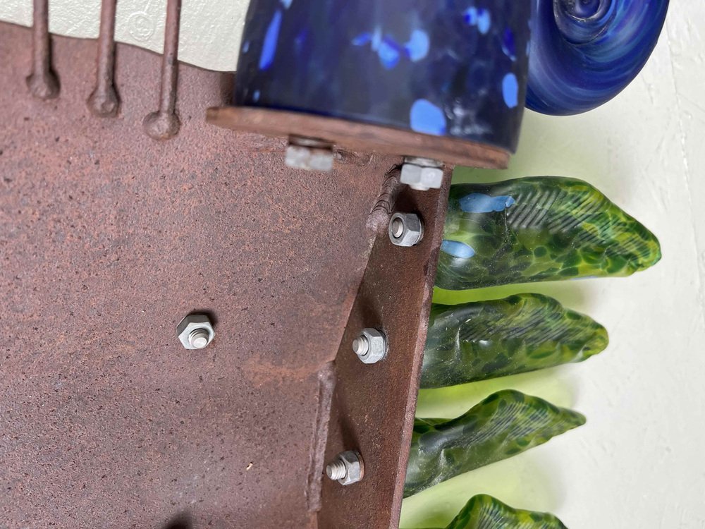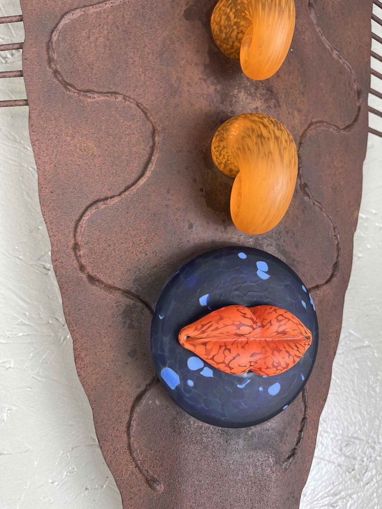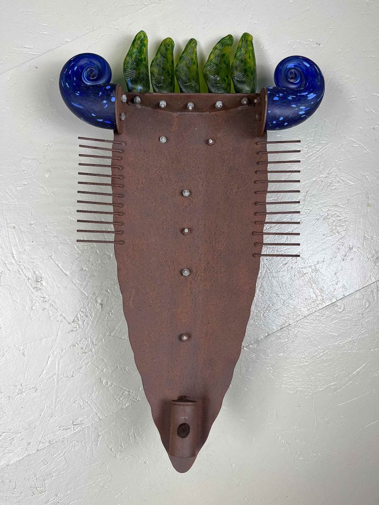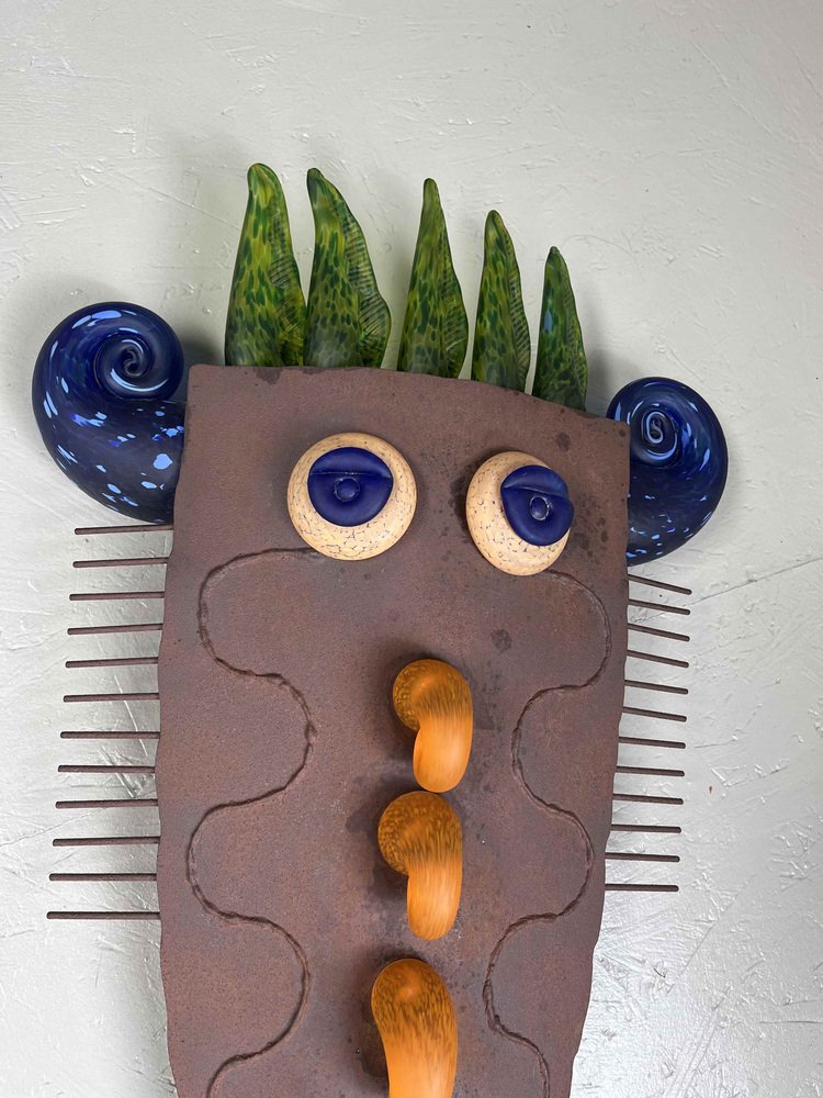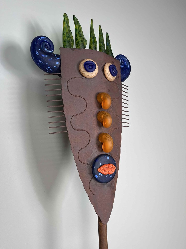 This versatile artwork can be used both indoors and outdoors. The mask can be mounted on the stand or hung directly on a wall. The stand is equipped with eyelets for secure mounting on a stable surface or pedestal.