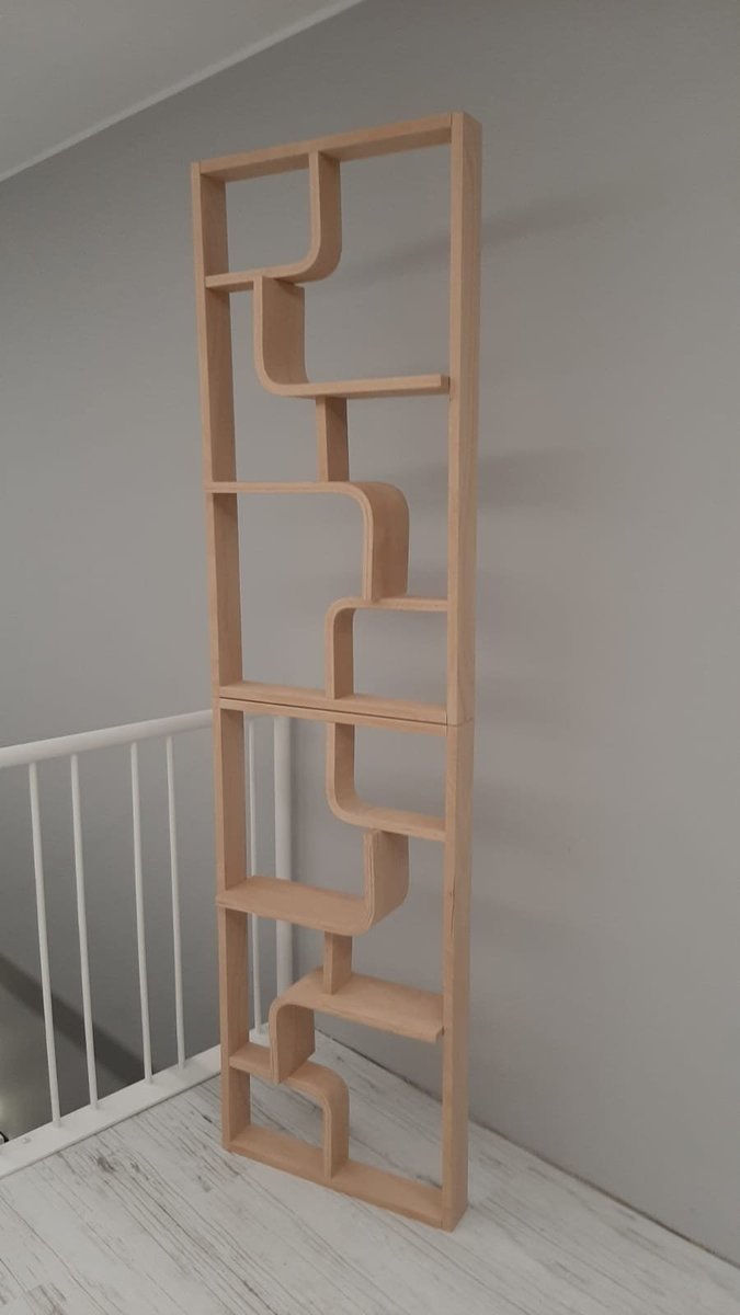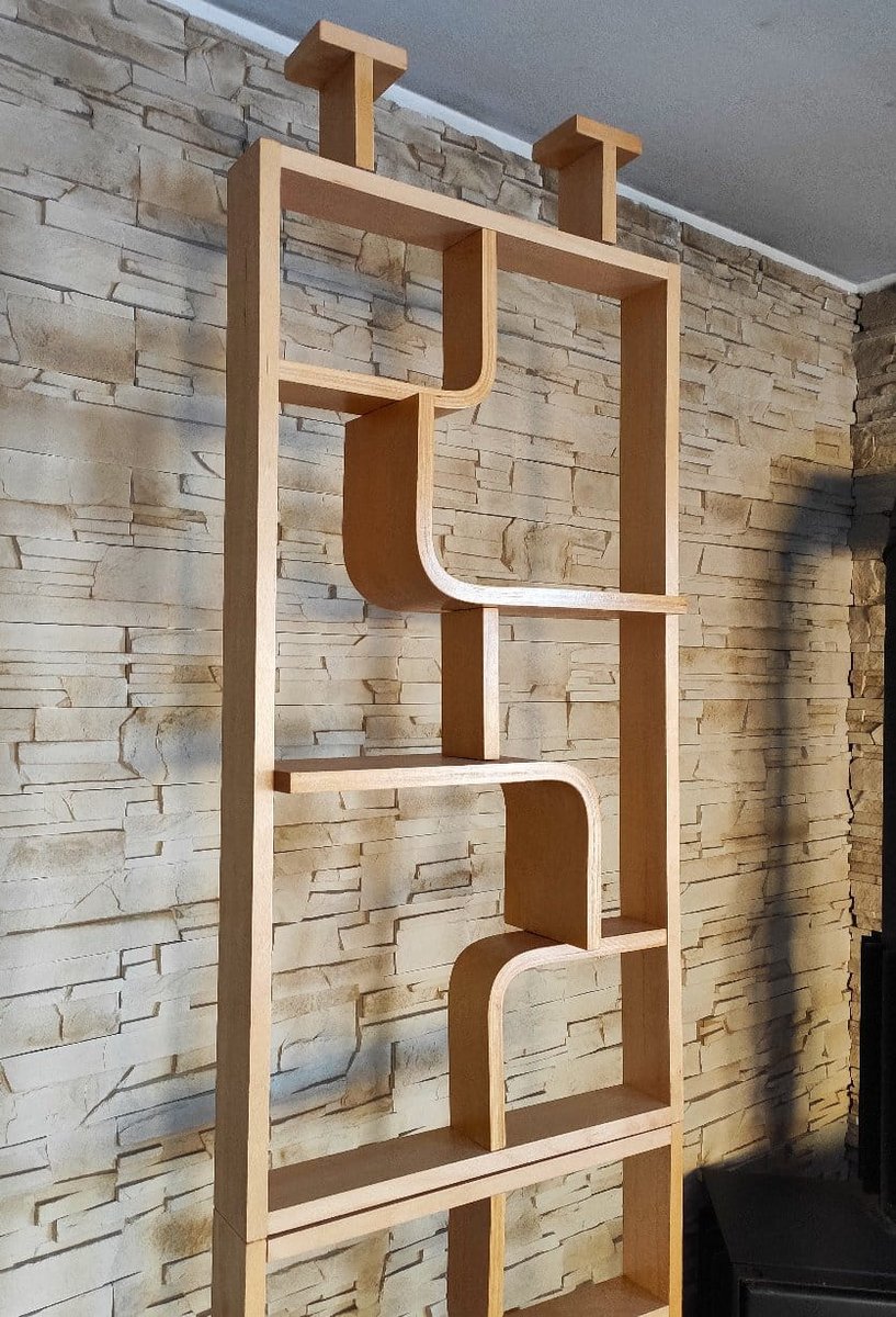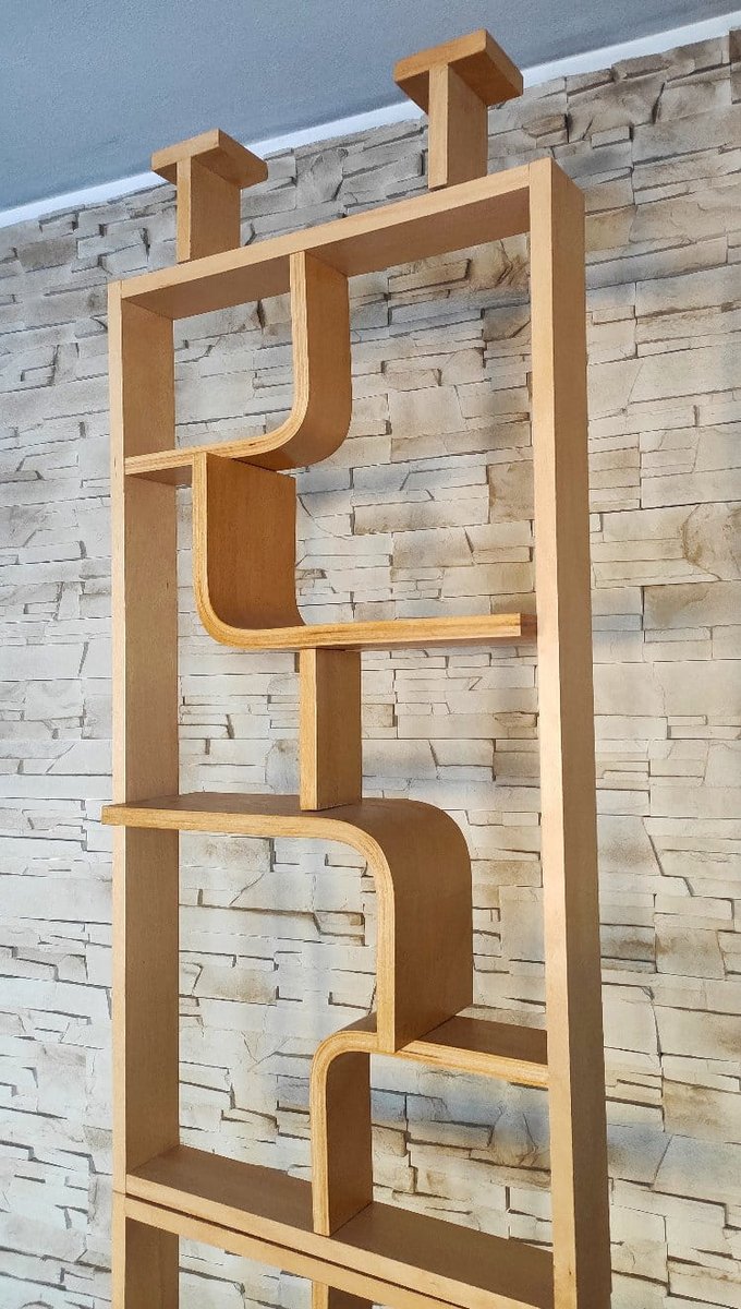 Bent plywood wall, bookcase, flowerbed, Volak by Holesov, 1960s CzechoslovakiaTake care of your interior! Give it character, a natural, extremely beautiful line of bent plywood wall. A shelf, a partition or a flowerbed, such a solution is guaranteed by a unique construction designed by Ludvík Volák, in the 1960s, for the Czechoslovak furniture factory Dřevopodnik Holešov.The ideal option to refresh the house, can charm everyone with its charm. An intriguing combination of bent plywood closed in a rectangular frame will emphasize the character of each interior.The wall after a very professional renovation, preserving the original elements, is painted. Original, catalogue product.Dimensions: height: 259cm total, feet 20cm and 13cm connector: 21cmwidth: 55.5cm, depth: 8/15.5cmrectangular elements 102x55.5cm.For transport unfolded.