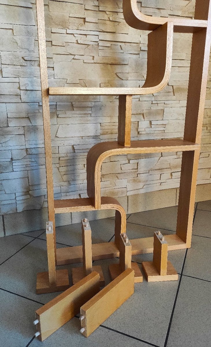 Pared de contrachapado curvado, librería, parterre, Volak de Holesov, años 60 Checoslovaquia¡Cuida tu interior! Dele carácter, una línea natural y extremadamente bella de pared de contrachapado curvado. Una estantería, un tabique o un parterre, tal solución está garantizada por una construcción única diseñada por Ludvík Volák, en la década de 1960, para la fábrica de muebles checoslovaca Dřevopodnik Holešov.La opción ideal para refrescar la casa, puede encantar a todos con su encanto. Una combinación intrigante de madera contrachapada doblada cerrada en un marco rectangular hará hincapié en el carácter de cada interior.La pared después de una renovación muy profesional, conservando los elementos originales, está pintada. Producto original, de catálogo.Dimensiones: altura: 259cm total, pies 20cm y 13cm conector: 21cmanchura: 55,5cm, profundidad: 8/15,5cmelementos rectangulares 102x55,5cm.Para el transporte desplegado.