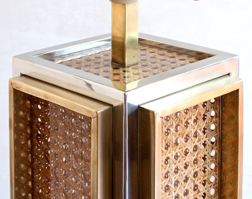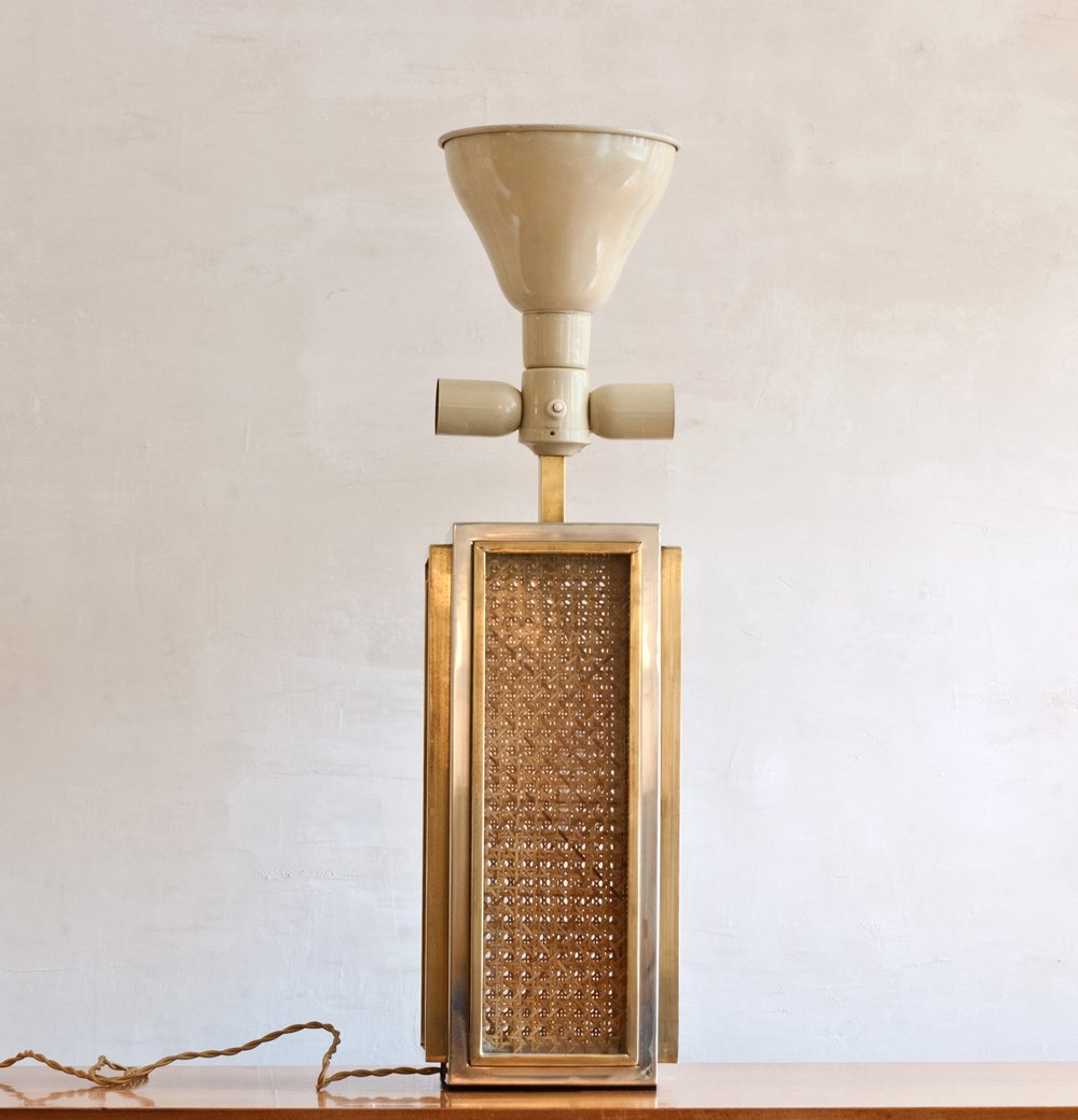 Lámpara de mesa con caña tejida, años 70