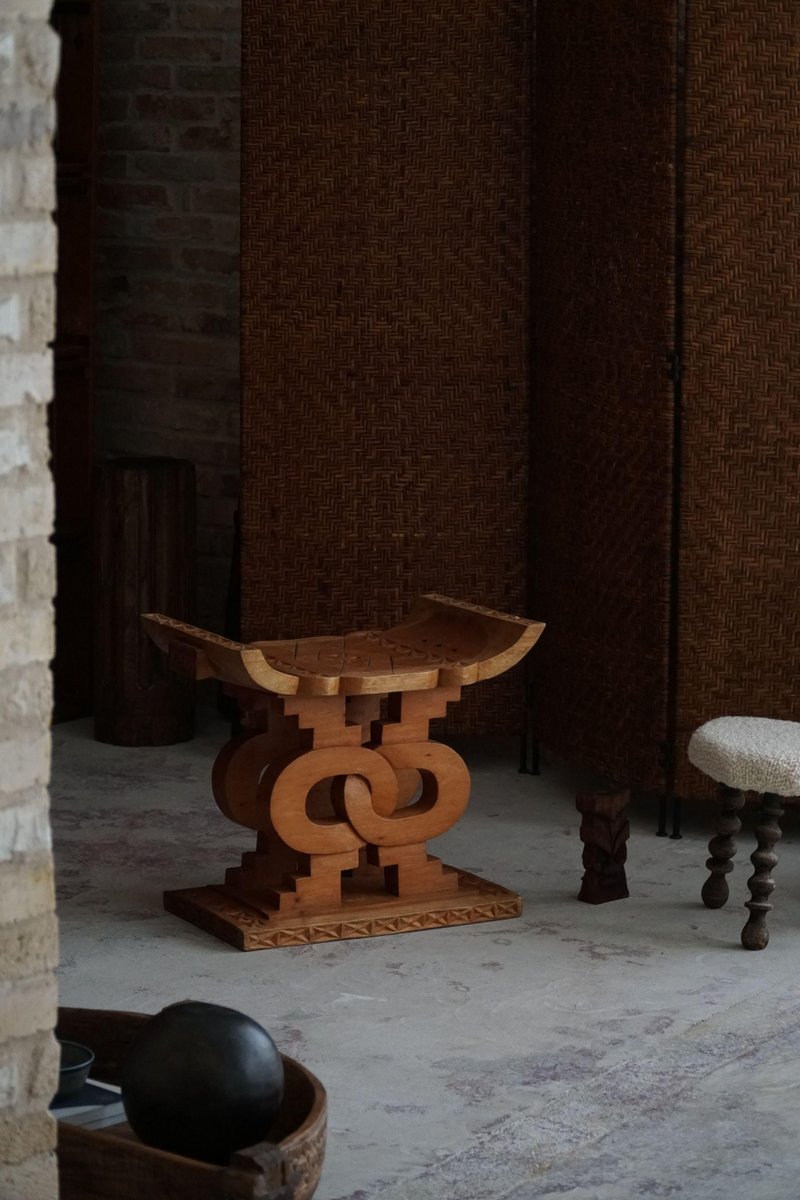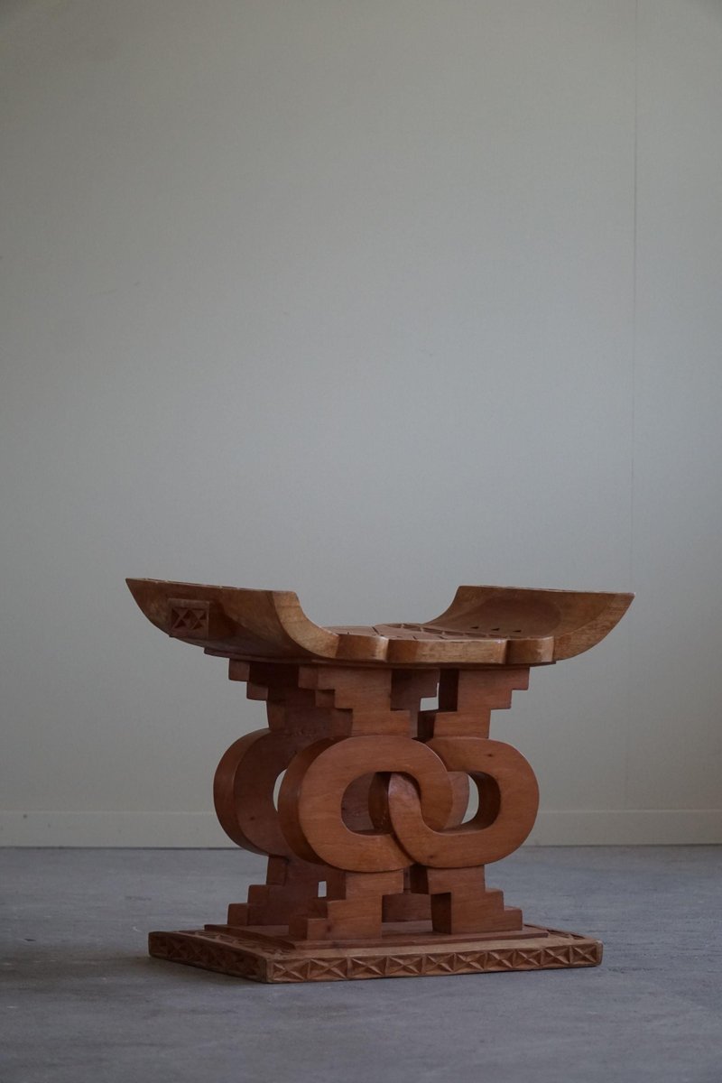 Taburete Ashanti Wabi Sabi de madera tallada a mano, siglo XX, África Occidental, años 70
