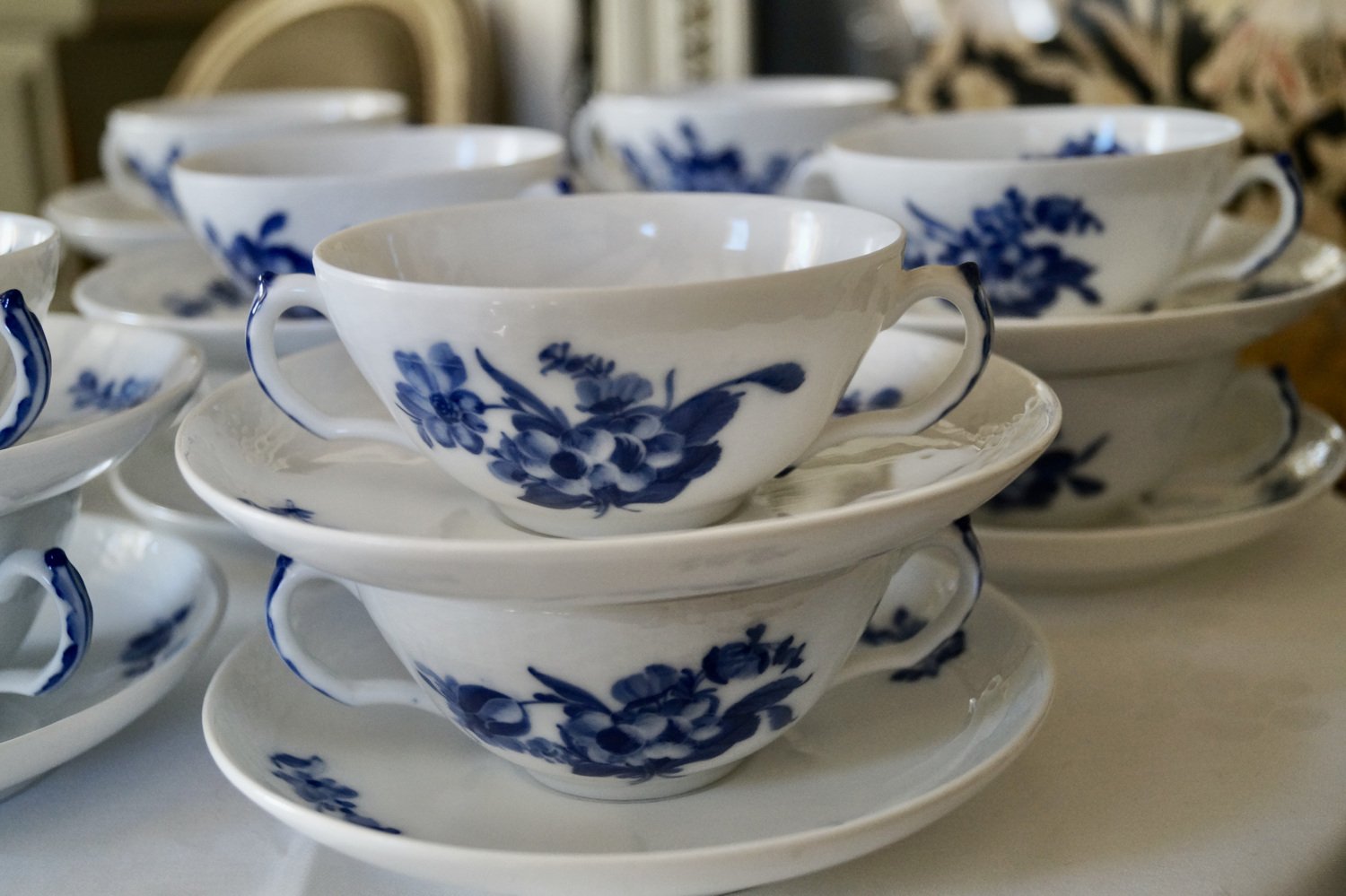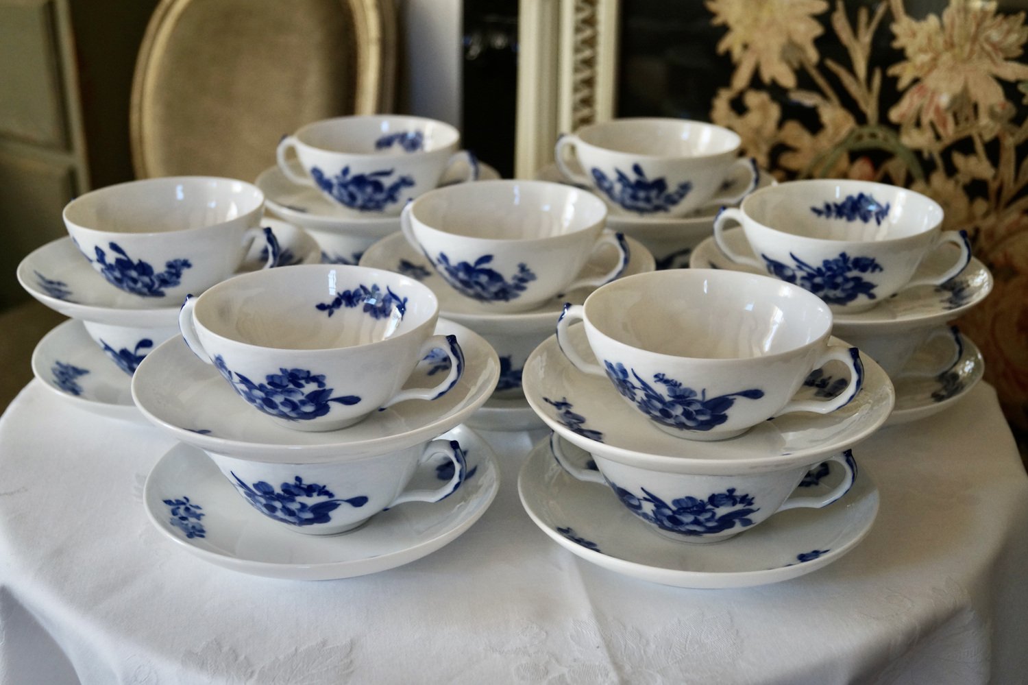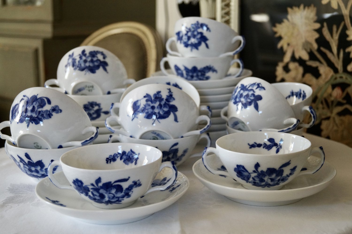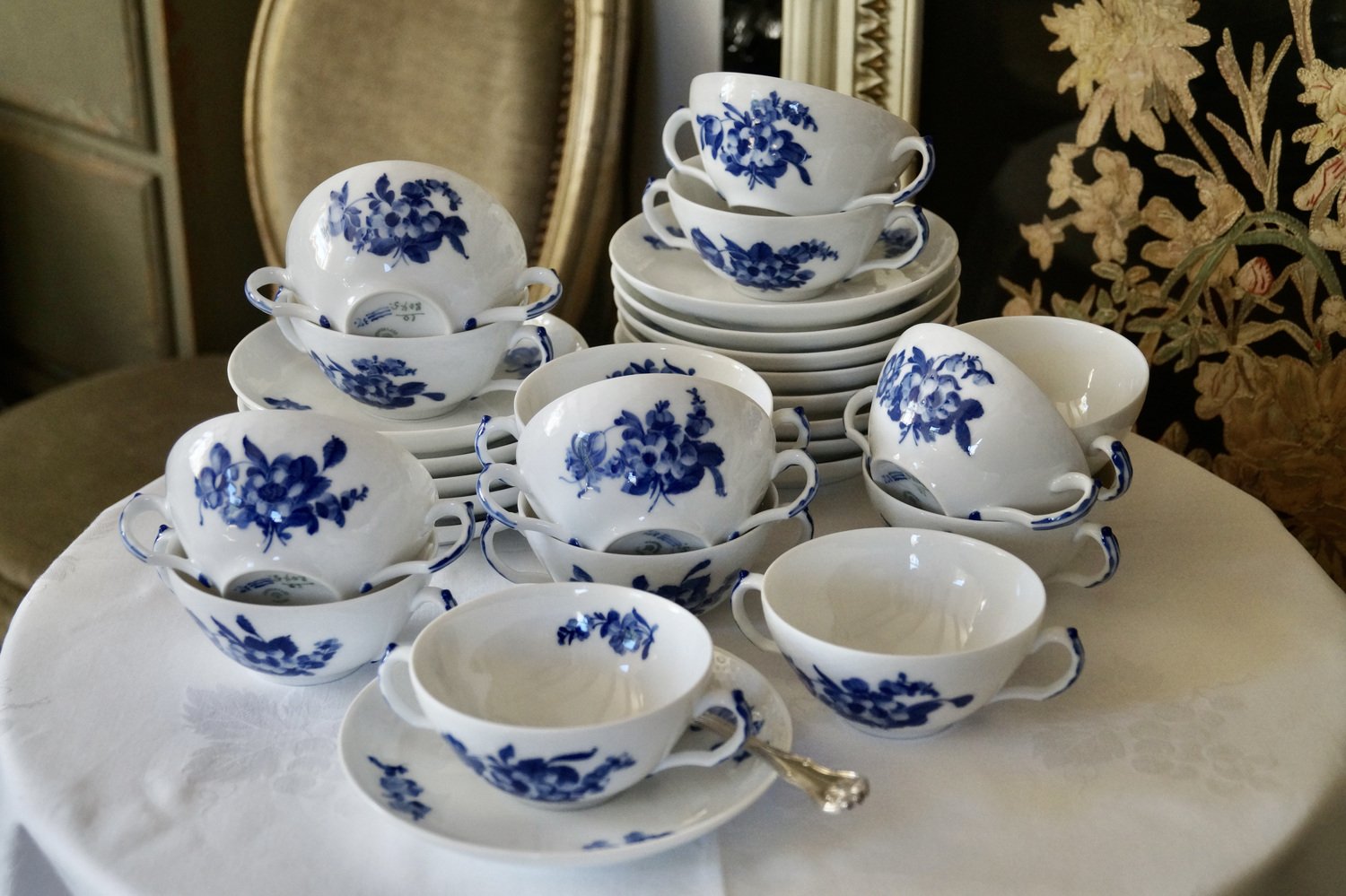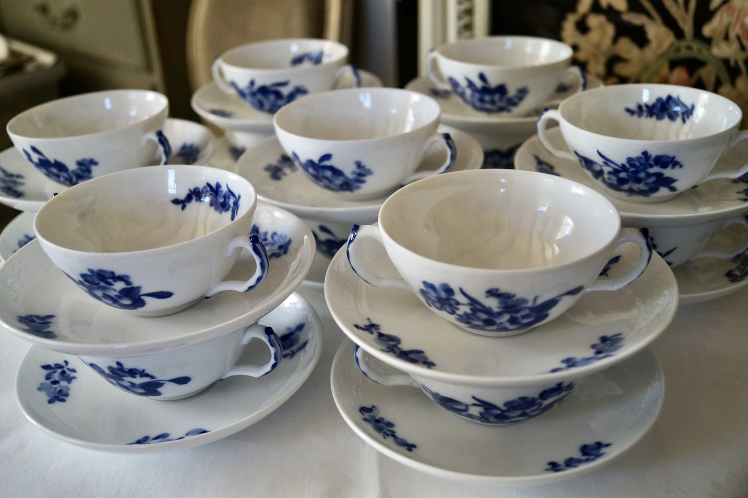 Servicio de té francés antiguo de porcelana, 1840. Juego de 16