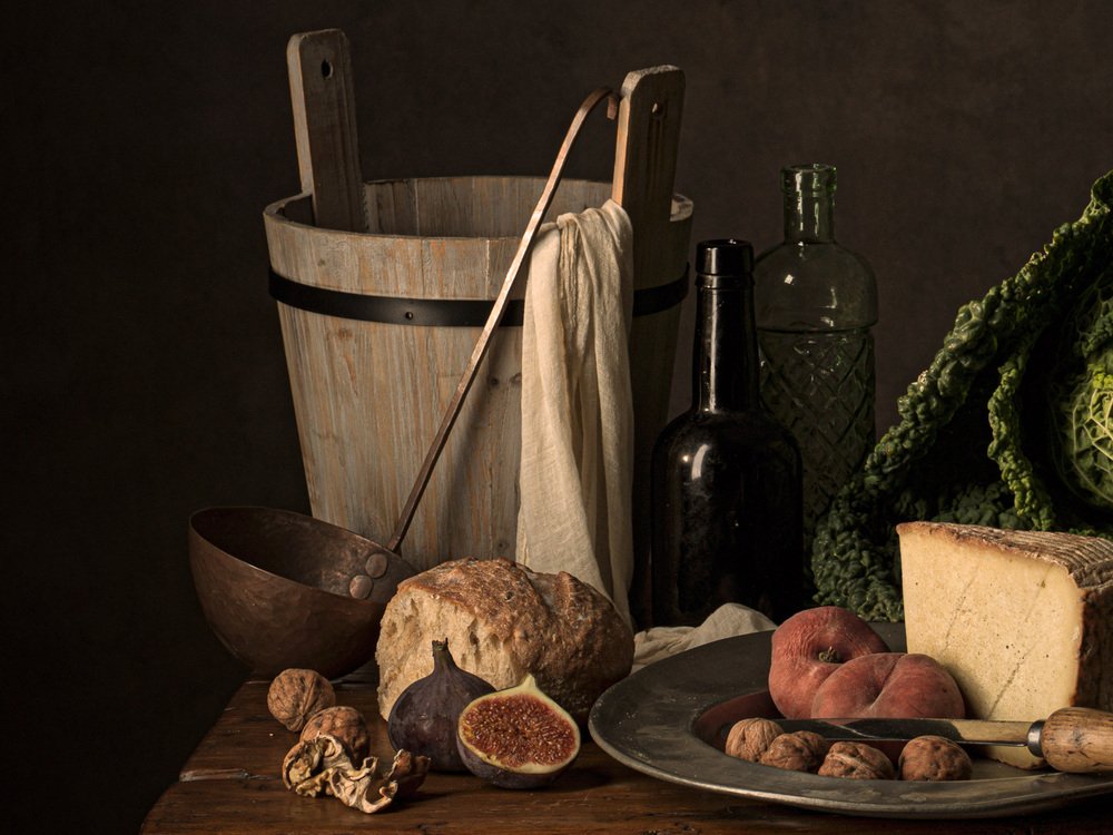 These paintings often featured food, flowers and household props such as bottles and glassware. They have an instantly recognisable style characterised by impeccable composition and use of directional light. Well known artists include Willem Claesz, Heda and Willem van Aelst.