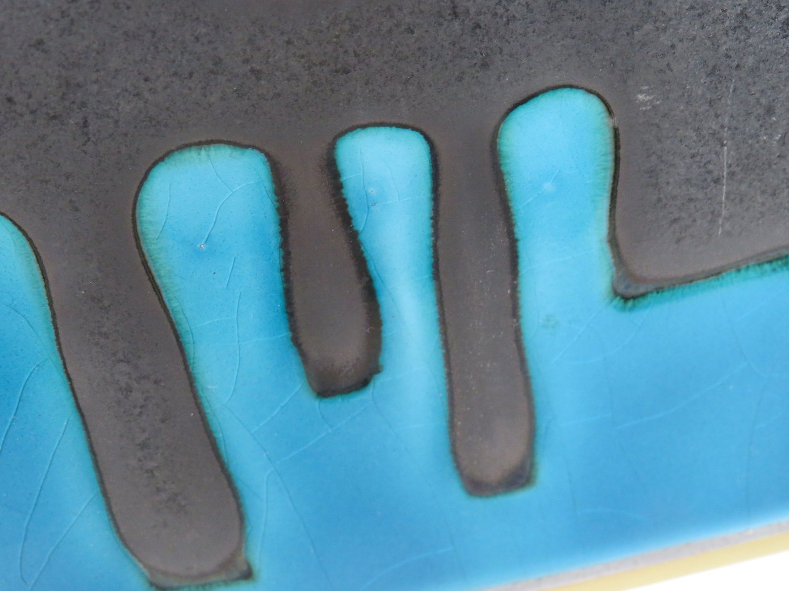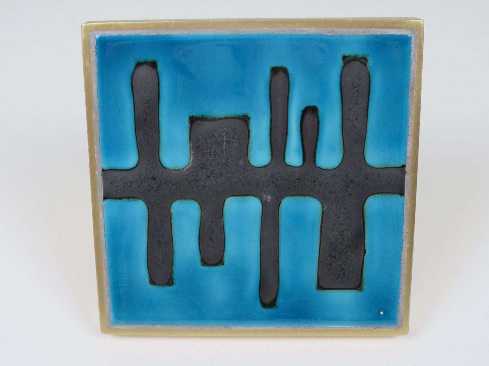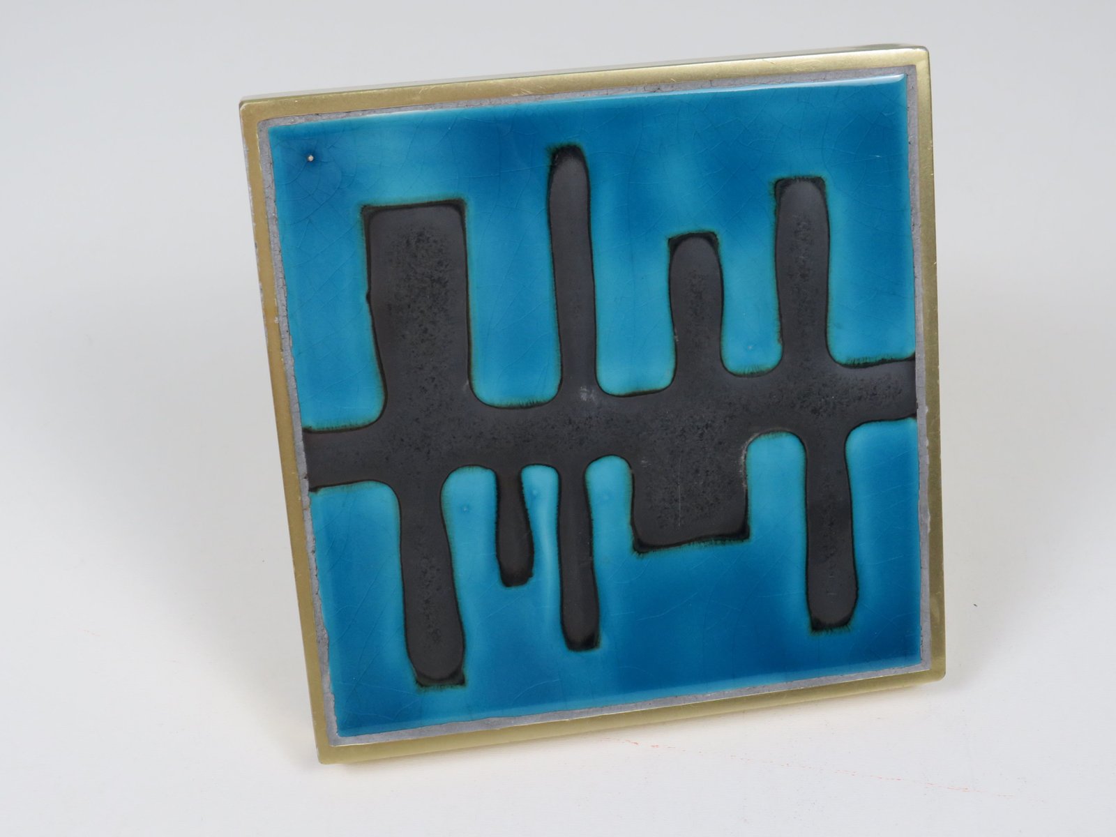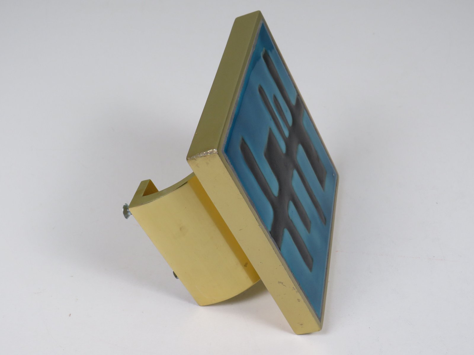 This architectural door handle, crafted by Sobinco Belgium in the 1960s, embodies the dialogue between art and function that defines Belgian modernism. The central ceramic inlay, attributed to Amphora, features a vivid turquoise glaze and bold abstract relief framed in brass.