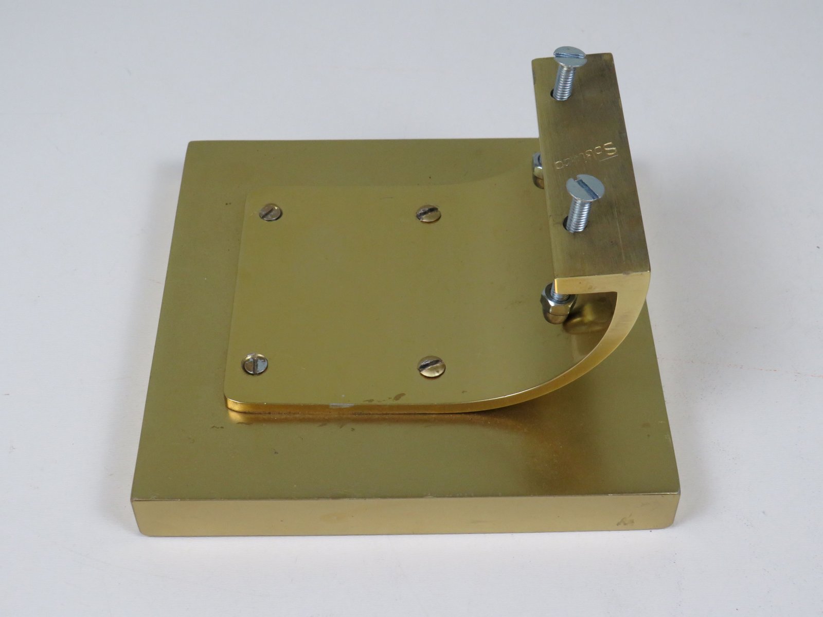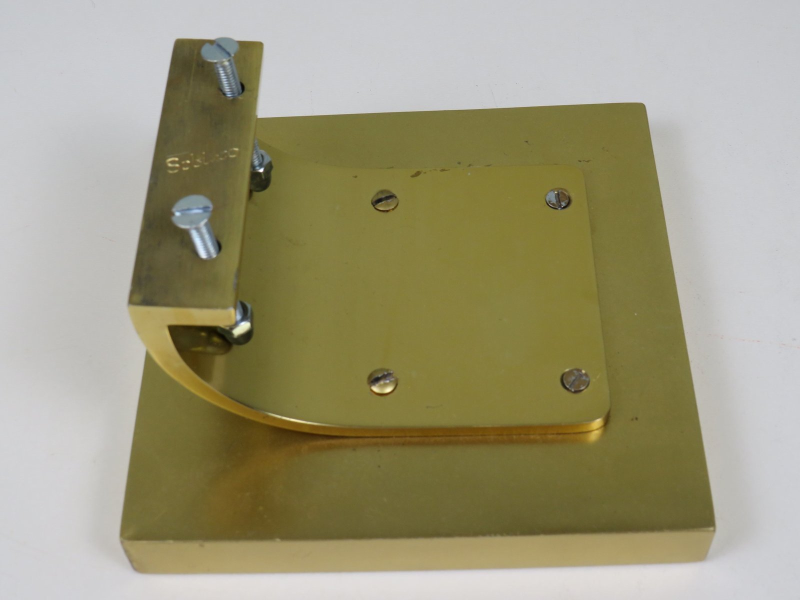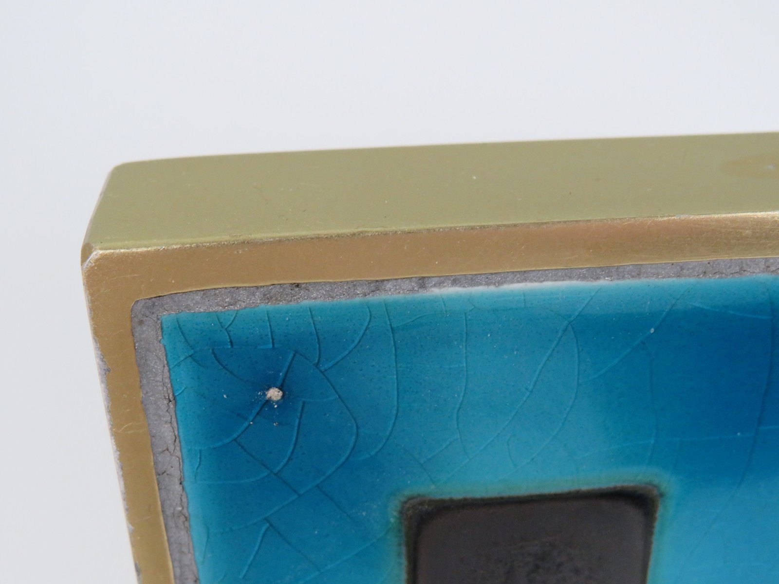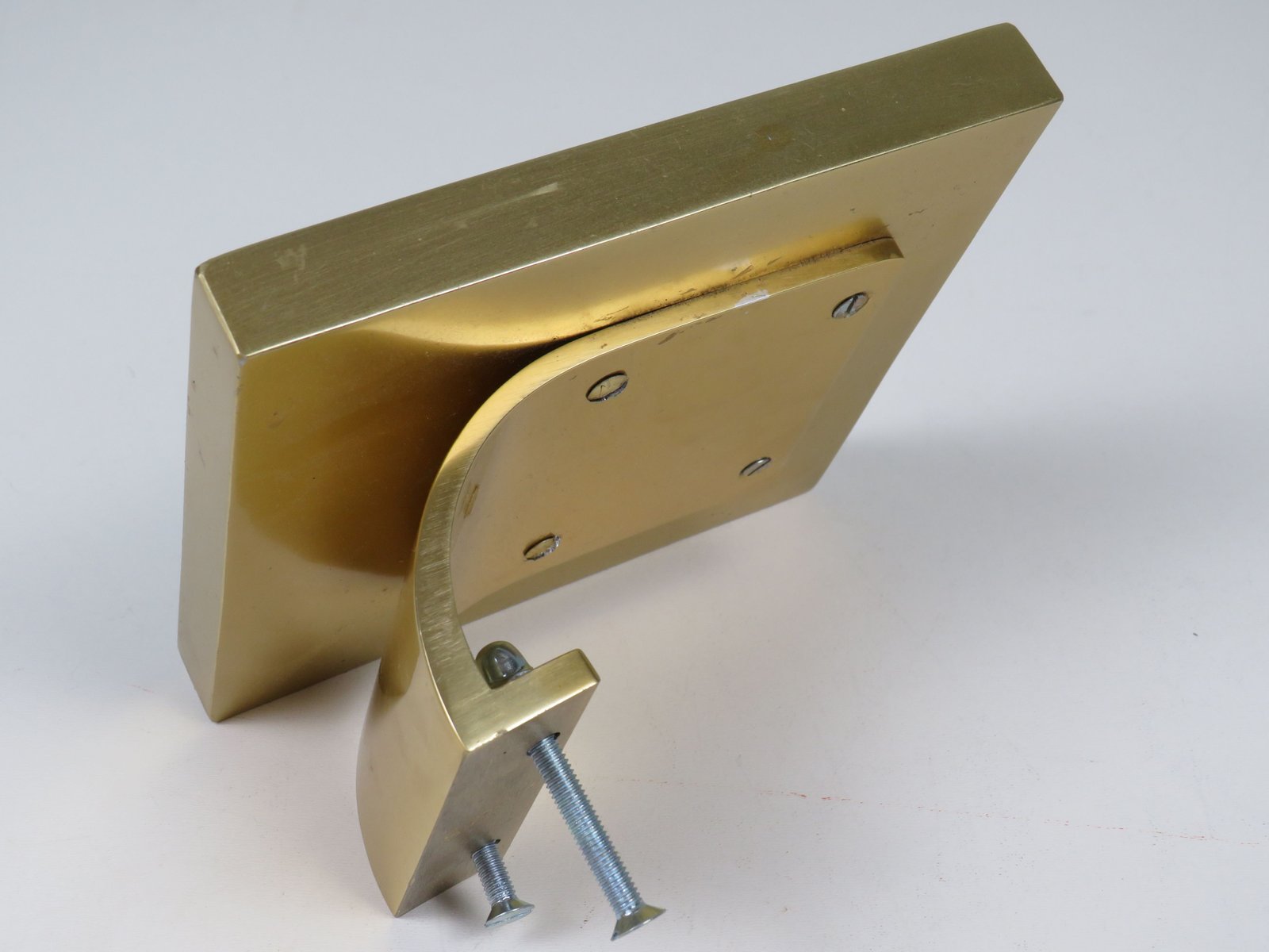 Esta manilla arquitectónica, fabricada por Sobinco Bélgica en la década de 1960, encarna el diálogo entre arte y funcionalidad que define el modernismo belga. La incrustación central de cerámica, atribuida a Amphora, presenta un vívido esmalte turquesa y un atrevido relieve abstracto enmarcado en latón.