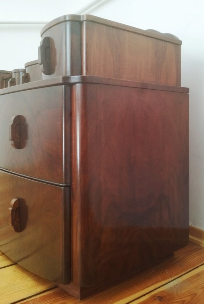 Halabala’s designs include chairs, tables, sideboards, drawers, flower stands, couches, lamps, and more, with an aesthetic that drew from Czech Cubism, Art Déco, and classic European mid-century modernism. During the 1930s, he developed the modular series H and E, as well as various types of wooden and tubular steel pieces inspired by Bauhaus designers Mart Stam (1899-1986) and Marcel Breuer (1902-1981). These cantilevered designs, which were produced in UP's Hodonín branch, are highly sought-after today on the vintage market.