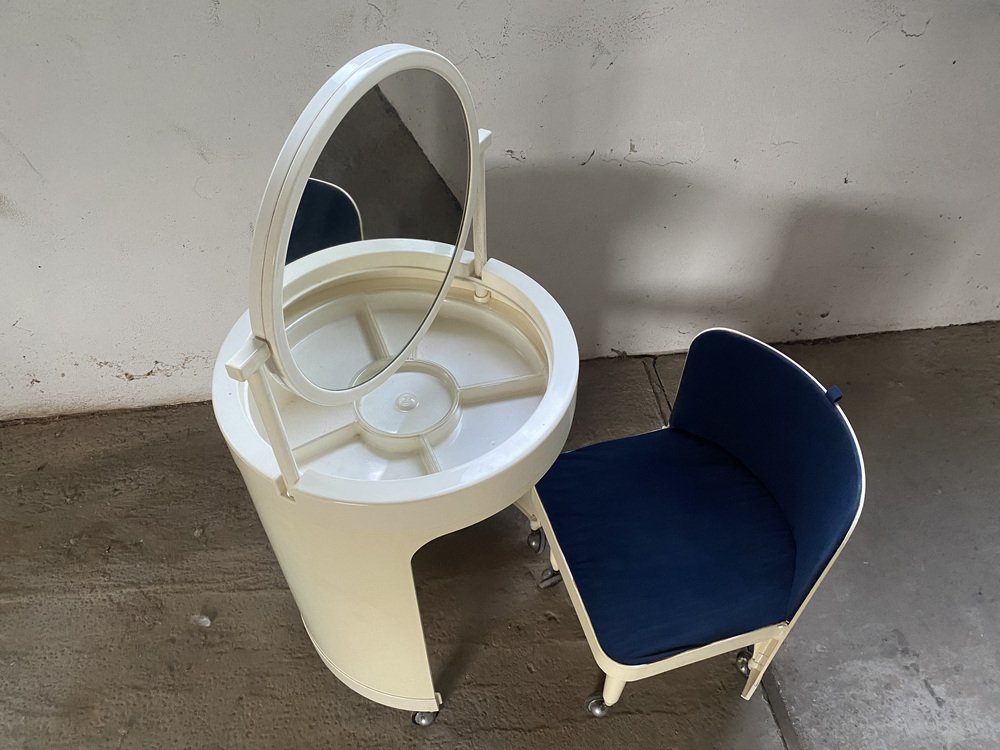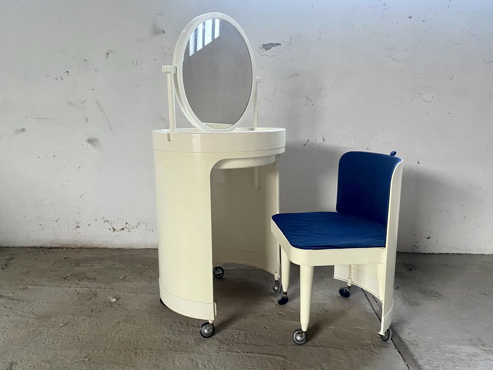 Tocador y silla italianos blancos de Studio Kastilia, años 70. Juego de 2