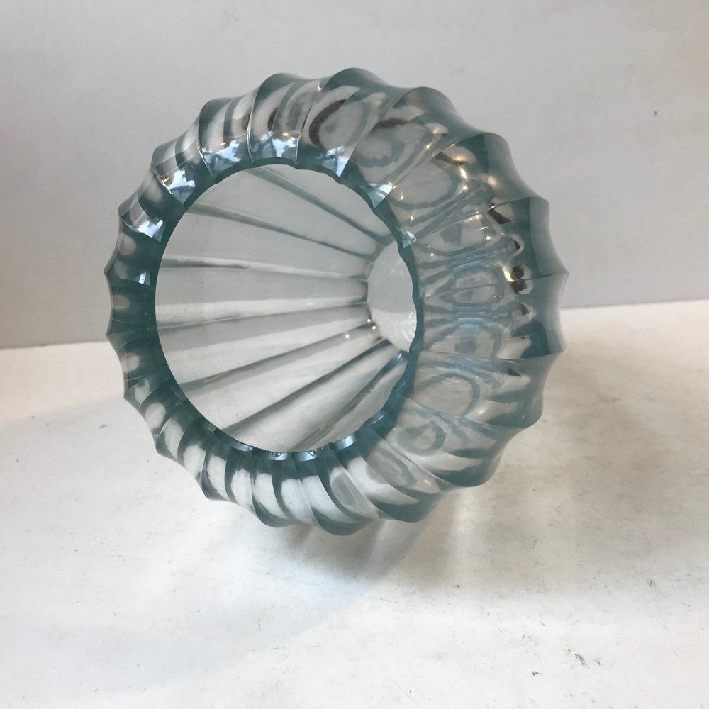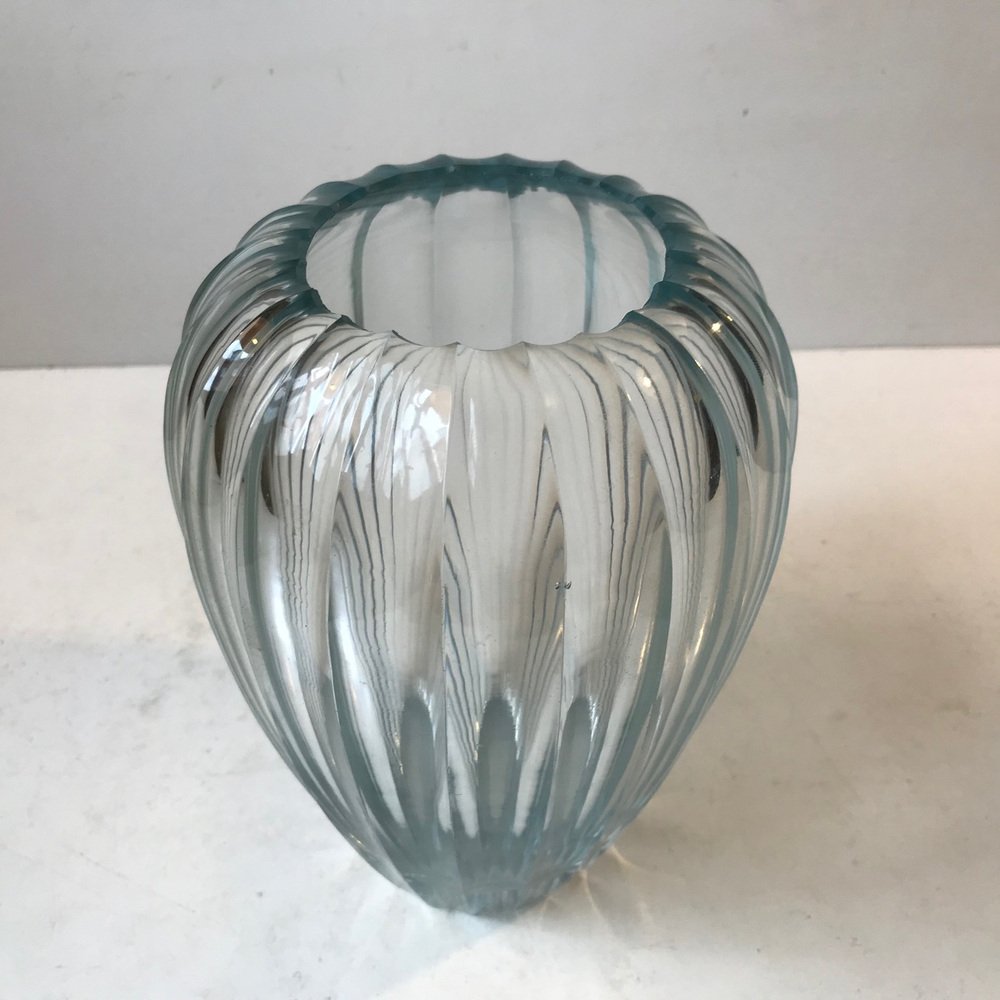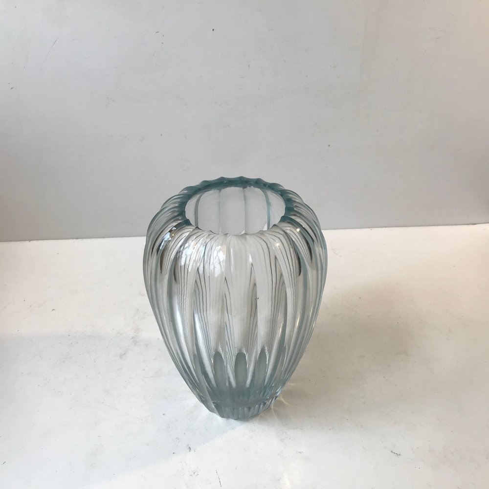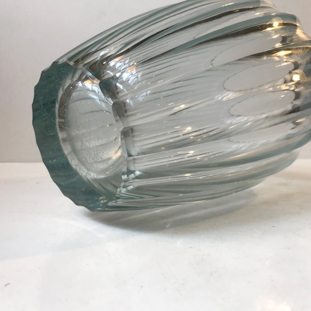 In 1928, designer-artist Vicke Lindstrand joined Orrefors and introduced a more sculptural, more modernist aesthetic. Following the success Orrefors and Lindstrand found at the 1930 Stockholm Exhibition, the company would become increasingly associated with simple and subtle forms through the postwar era. In 1946, Orrefors hired architect-designer Carl Fagerlund to expand its crystal lighting offering.