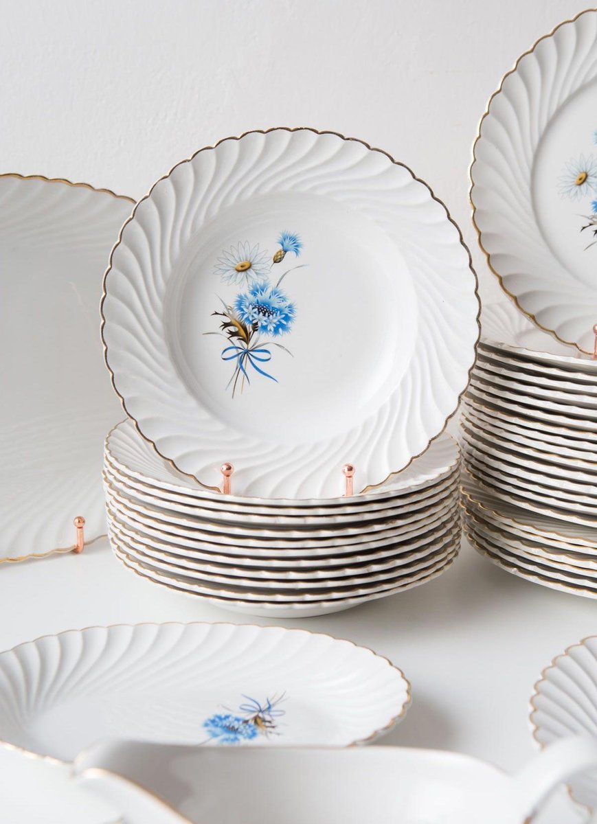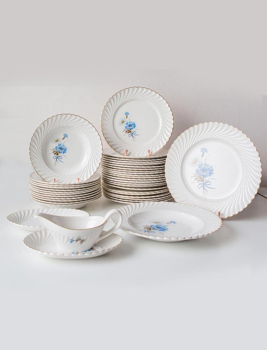 Vajilla francesa de cerámica de Luneville. Juego de 39